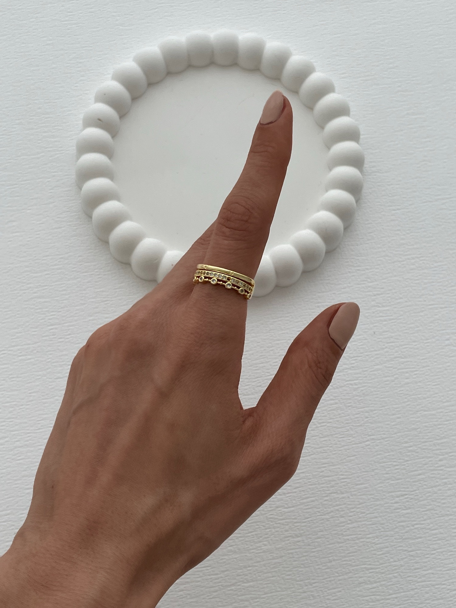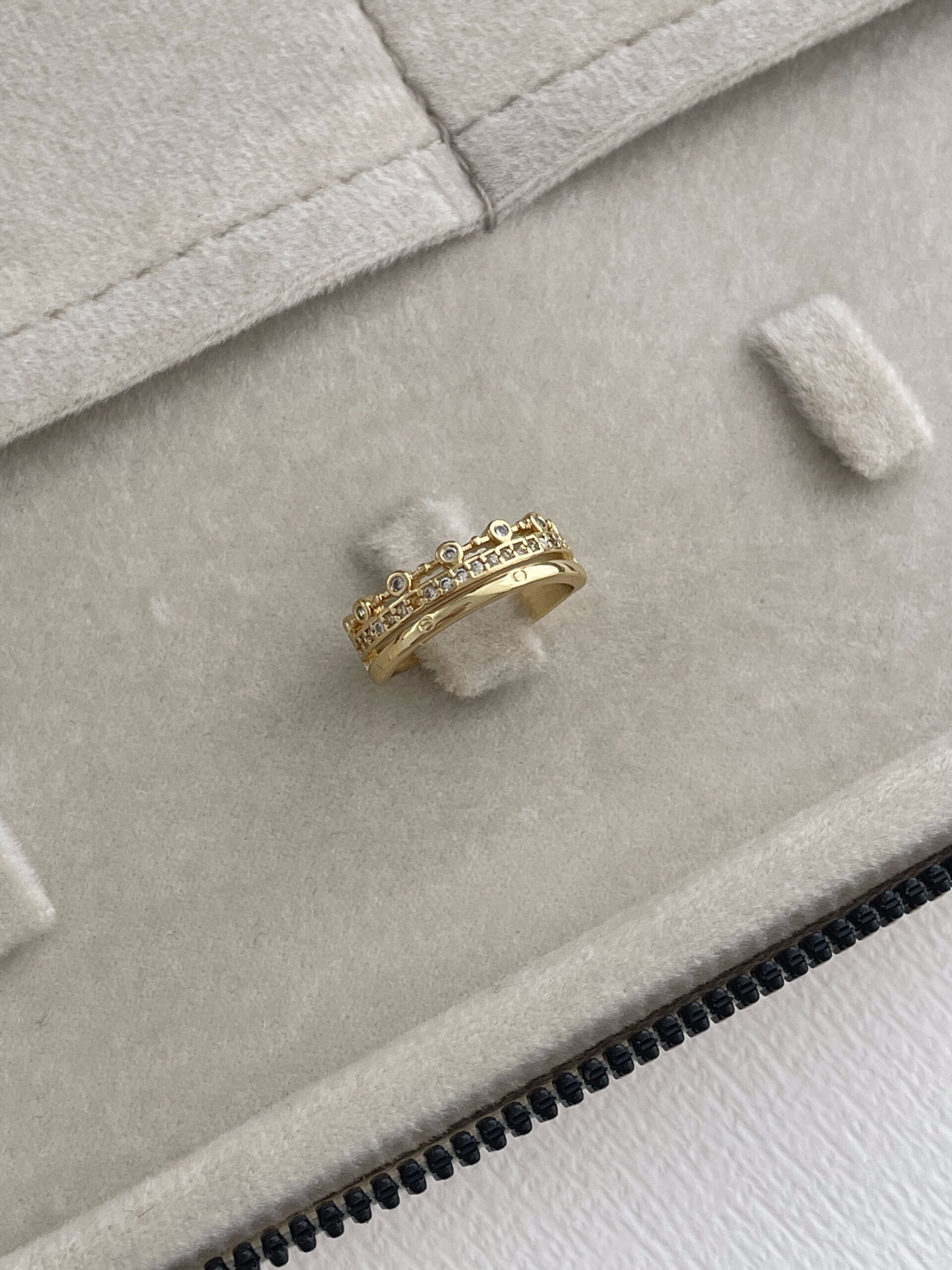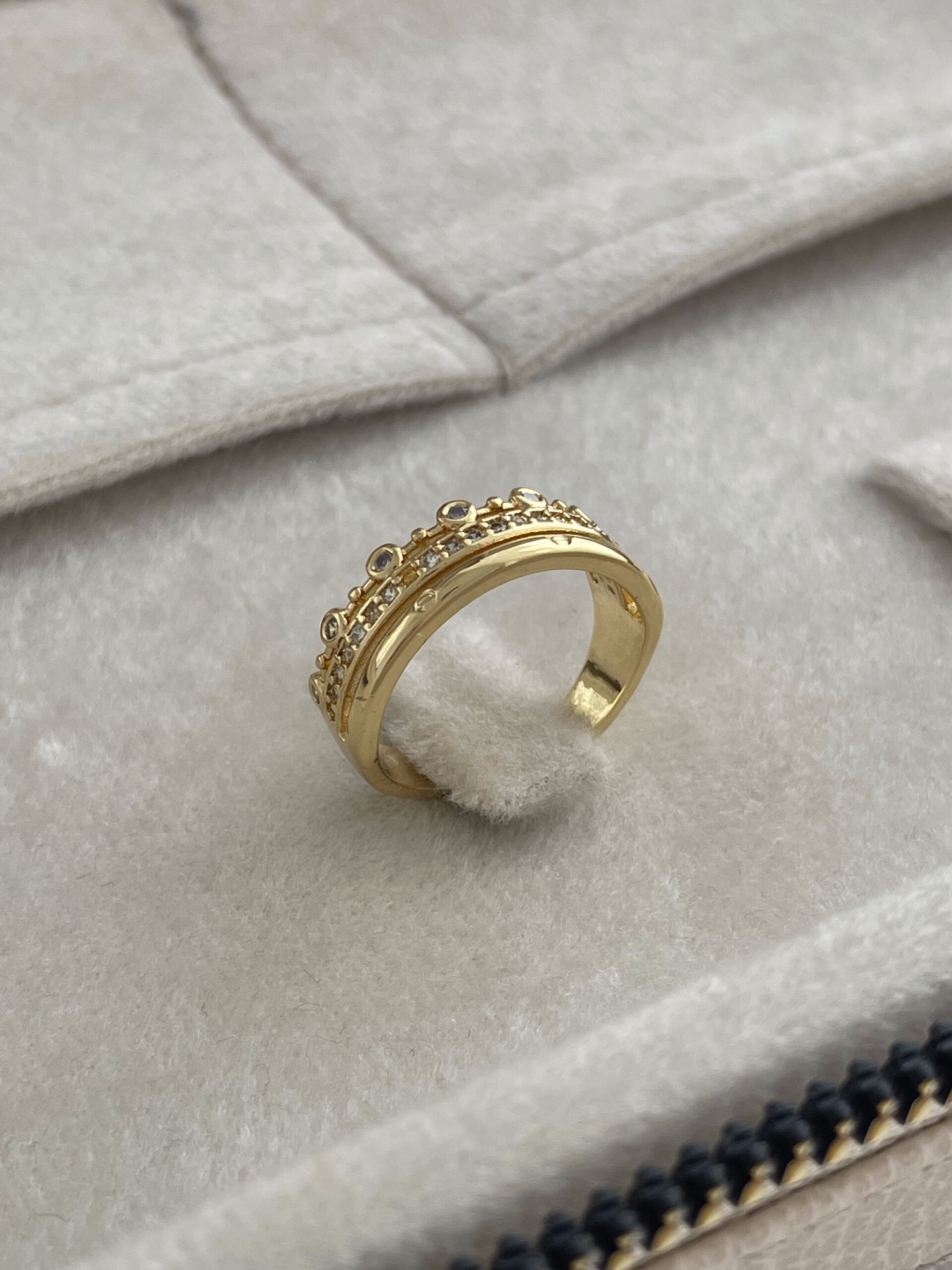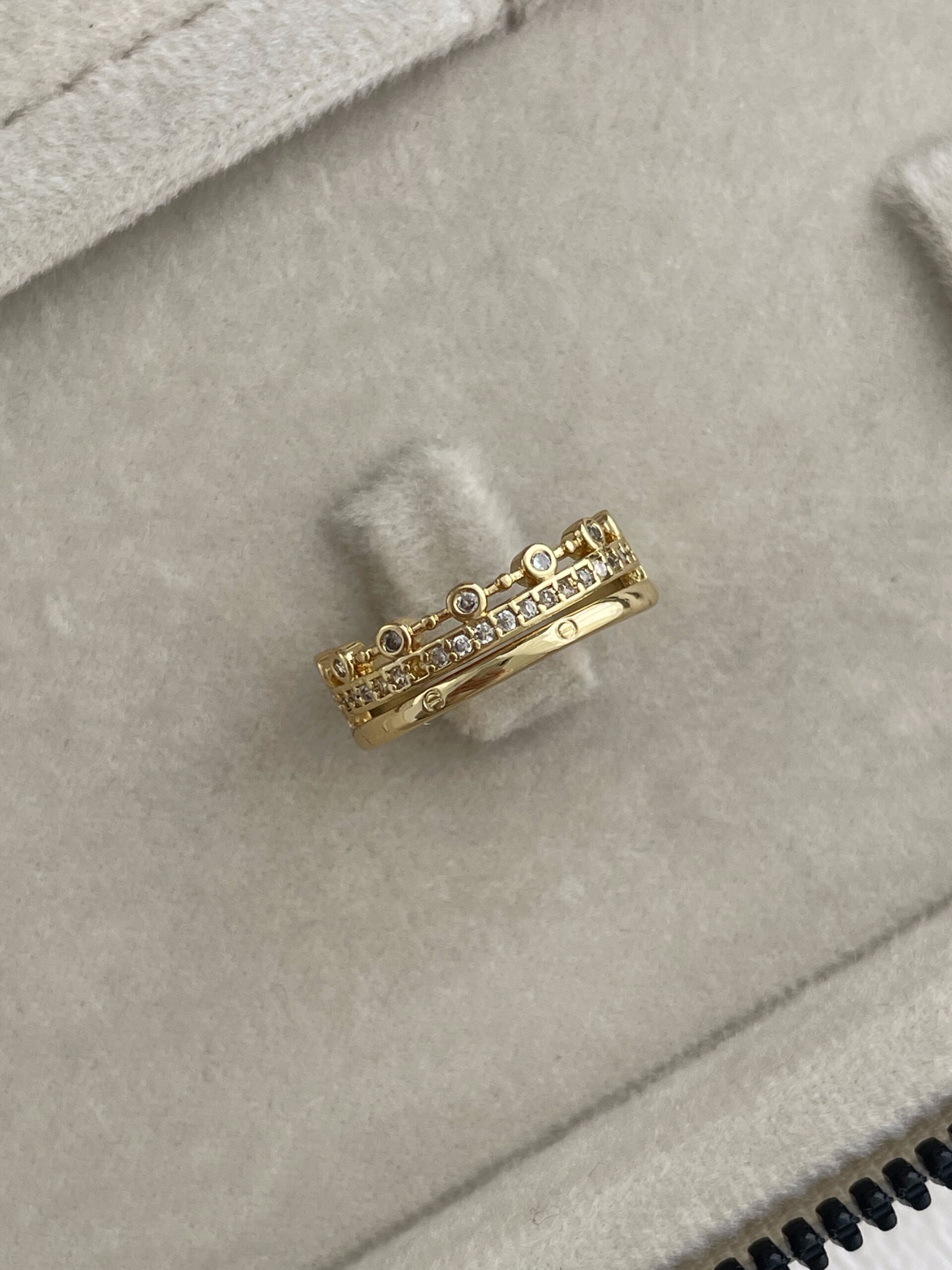 Özel Seri Zirkon Taşlı Üçlü Tasarım Ayarlanabilir Gold Yüzük