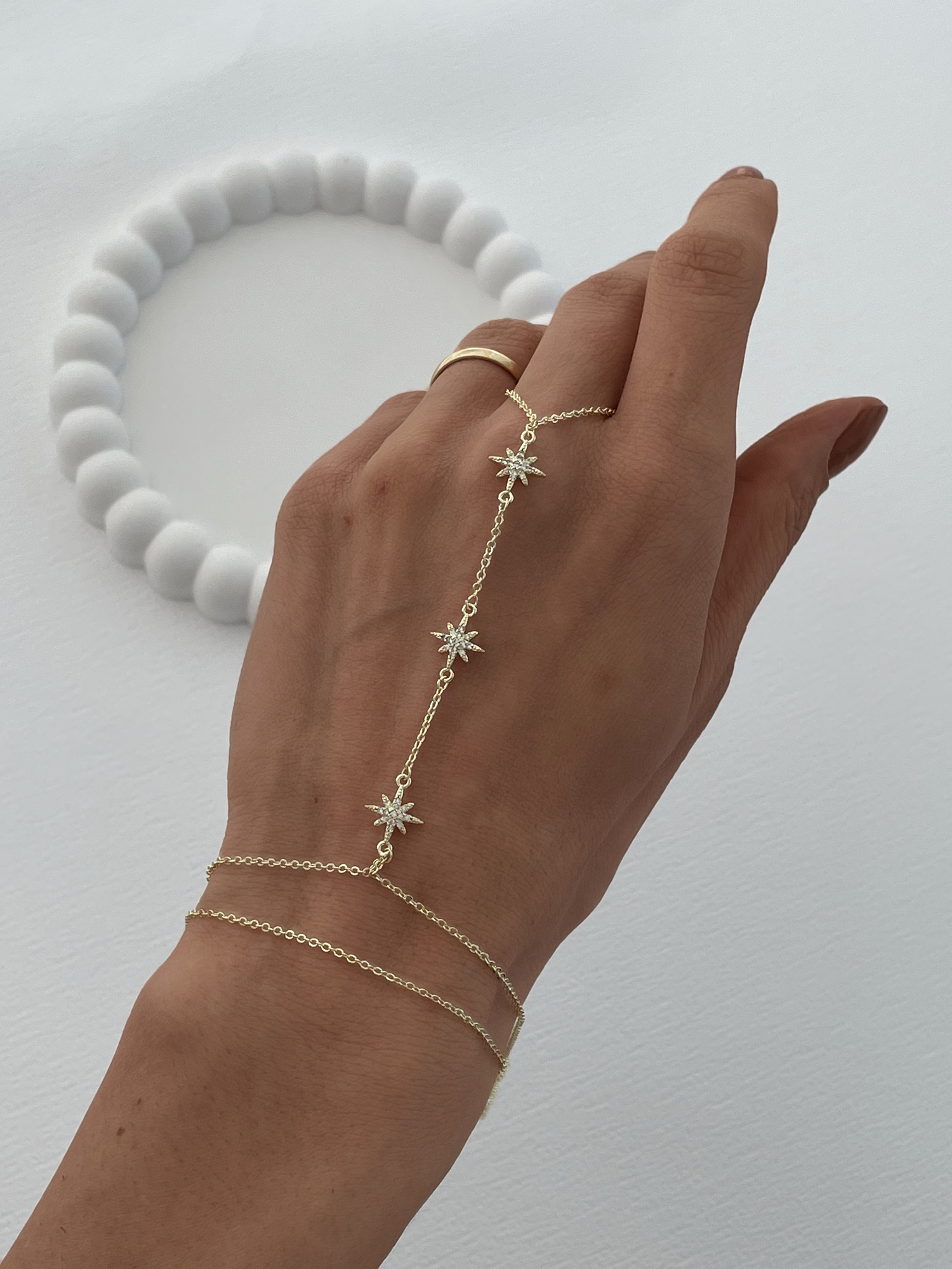 Özel Seri Zirkon Taşlı Üçlü Yıldız Tasarım Gold Şahmeran