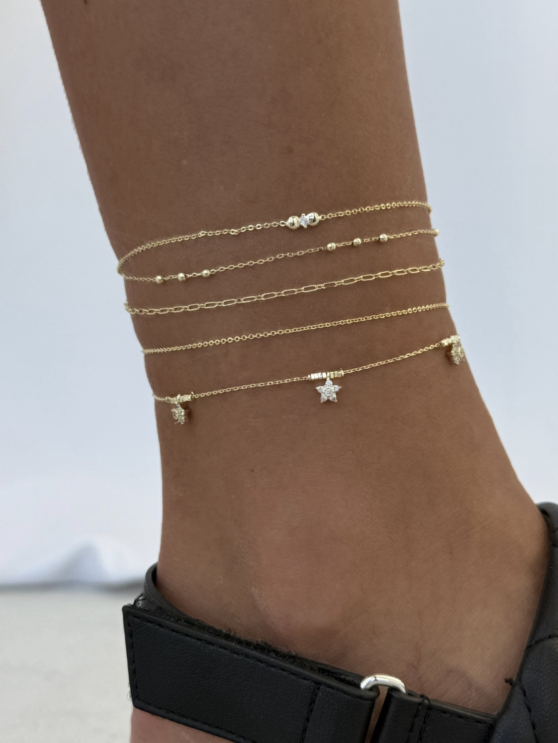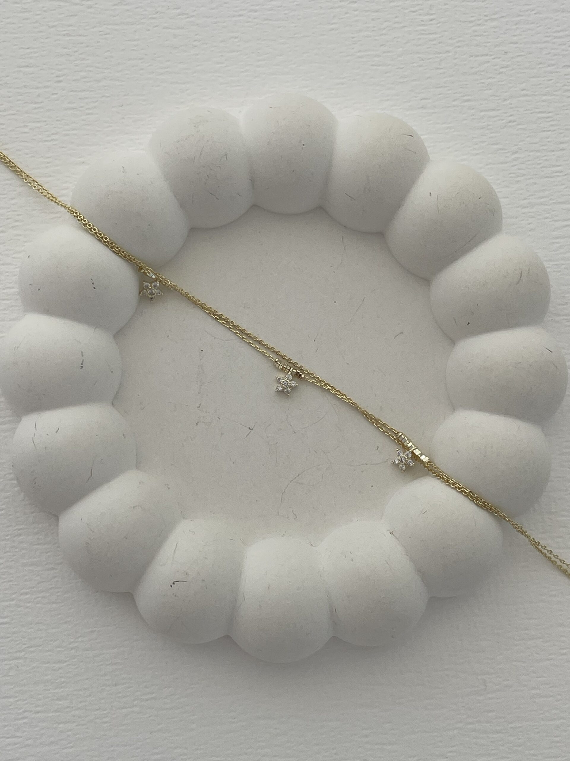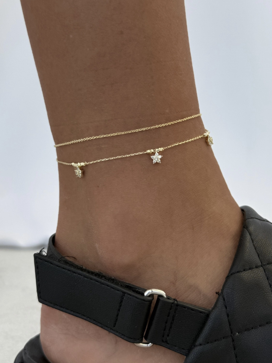 Özel Seri Zirkon Taşlı Üçlü Yıldız Tasarım İkili Zincir Gold Halhal