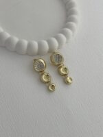 Özel Seri Zirkon Taşlı Üçlü Yuvarlak Tasarım Gold Küpe