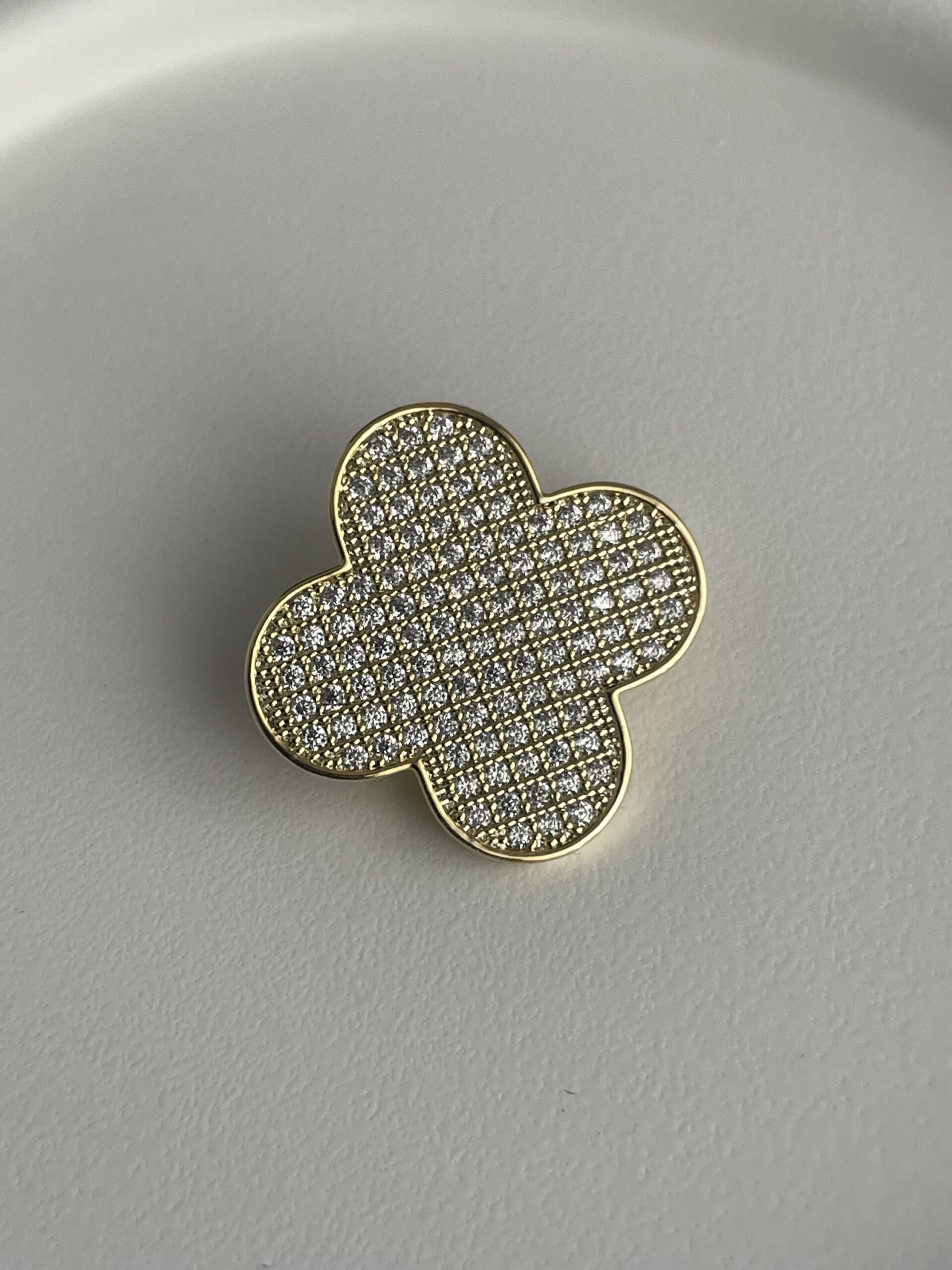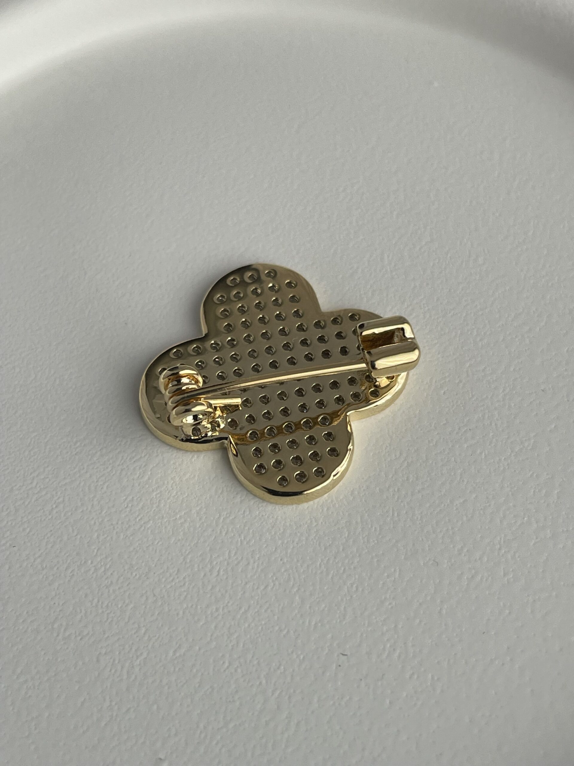 Özel Seri Zirkon Taşlı Yonca Tasarım Gold Broş