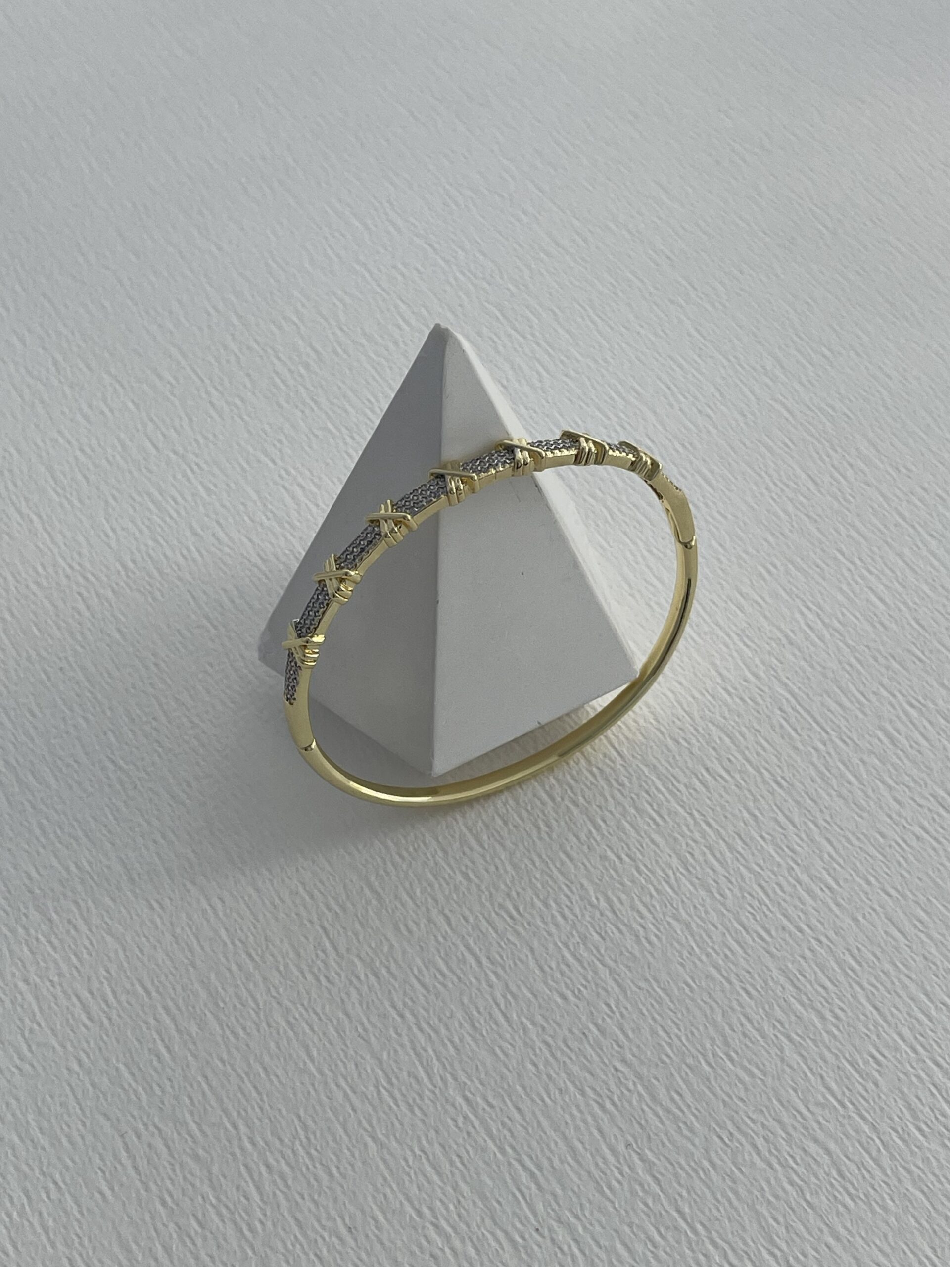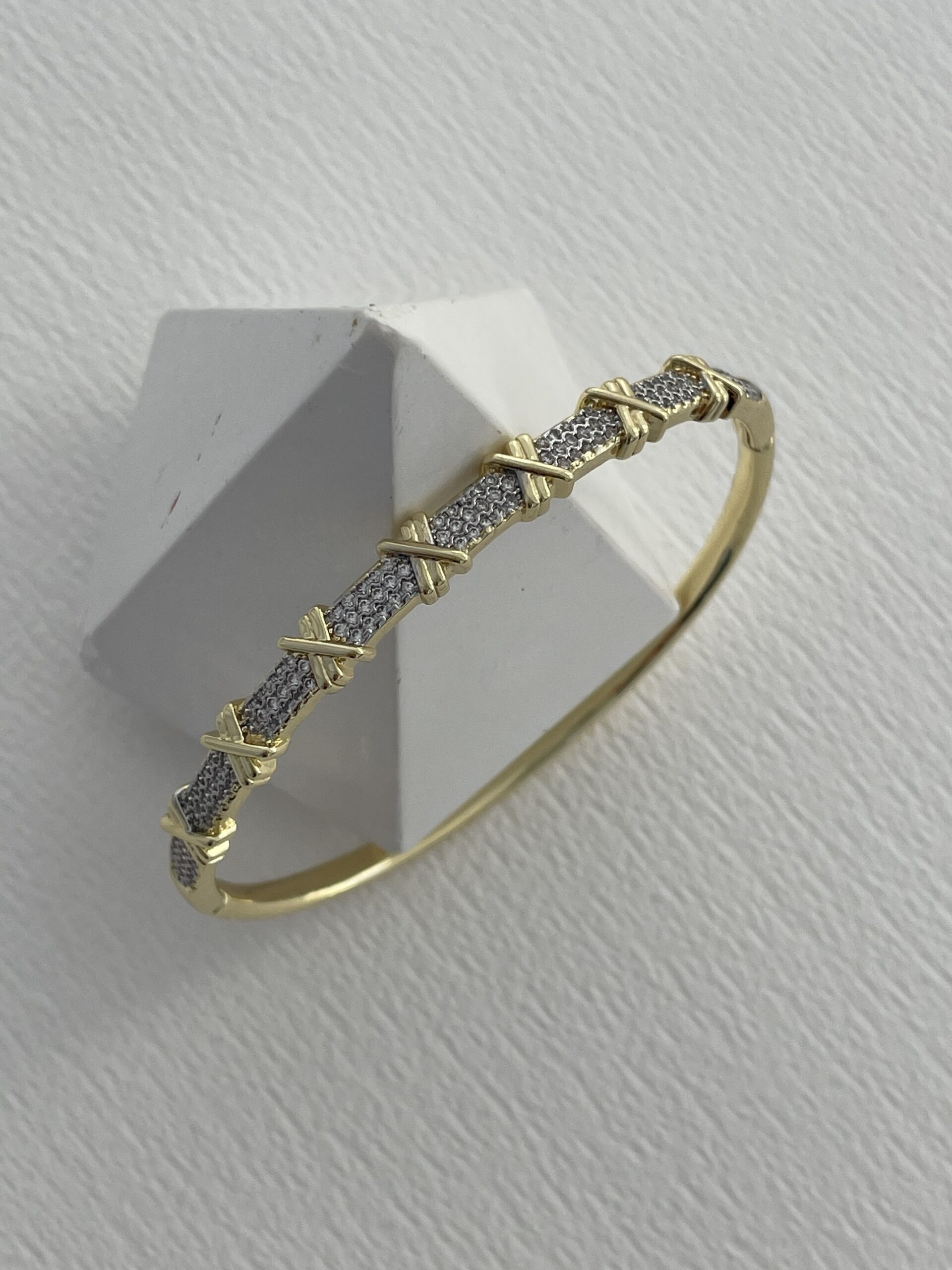 Özel Seri Zirkon Taşlı X Tasarım Gold Kelepçe Bileklik