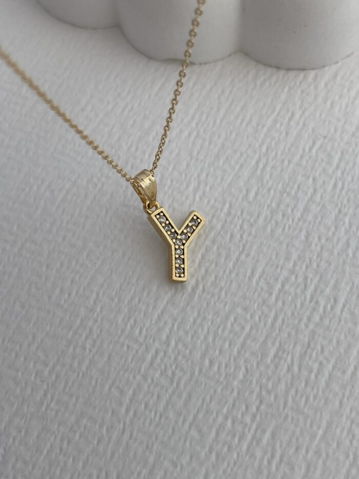 Özel Seri Zirkon Taşlı Y Harf Minimal Gold Kolye