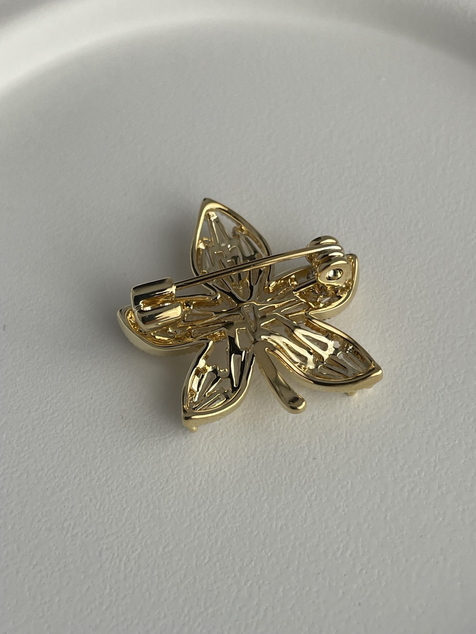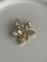 Özel Seri Zirkon Taşlı Yaprak Desen Gold Broş