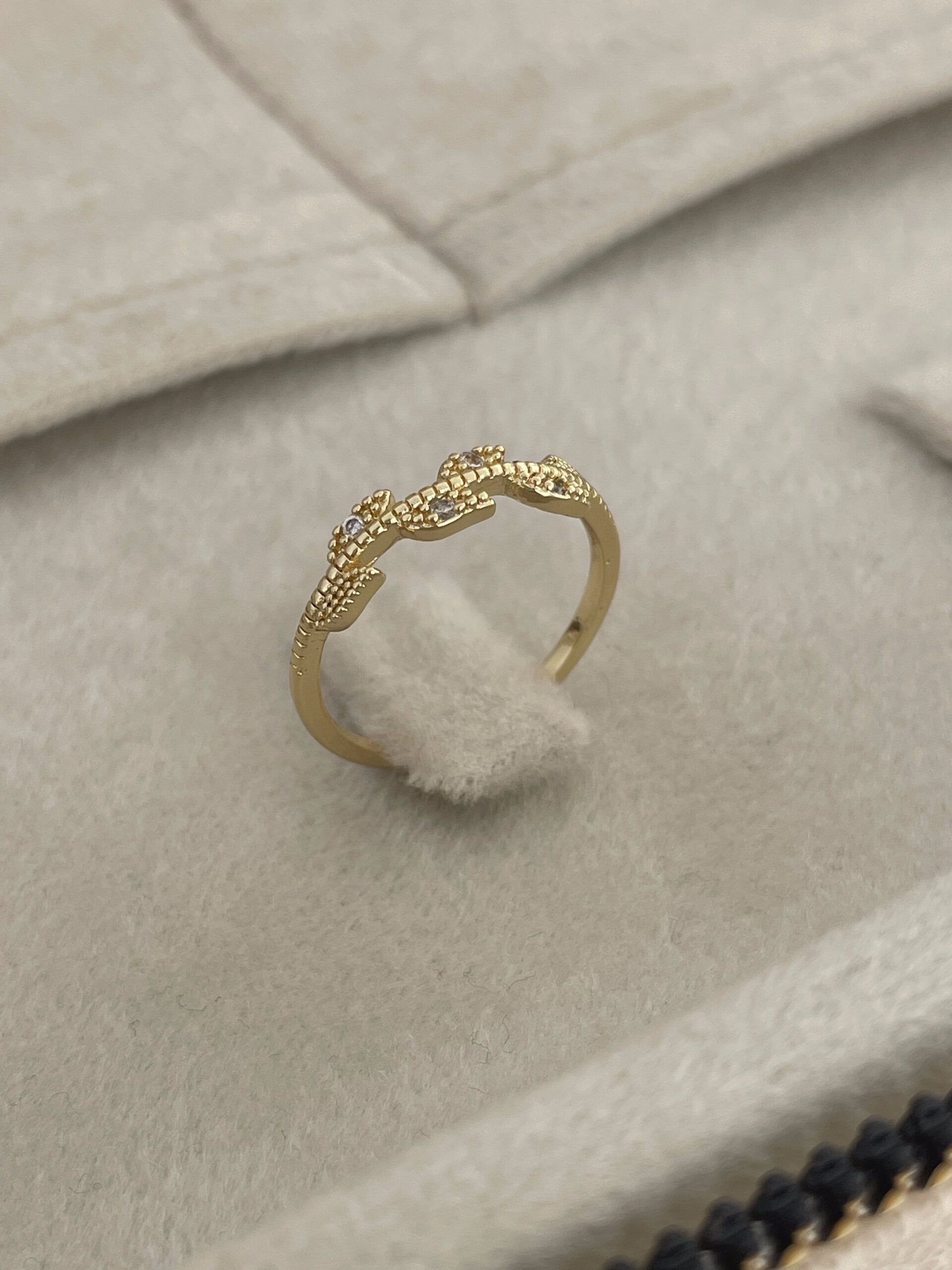 Özel Seri Zirkon Taşlı Yaprak Tasarım Ayarlanabilir Gold Yüzük