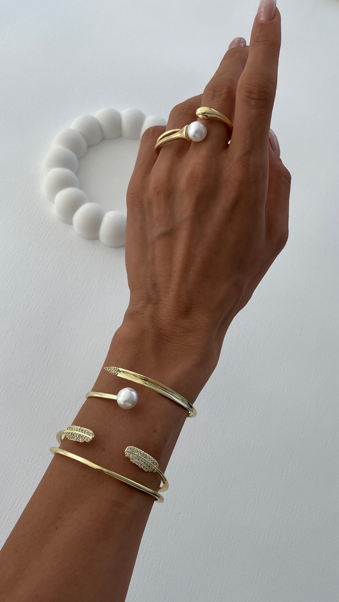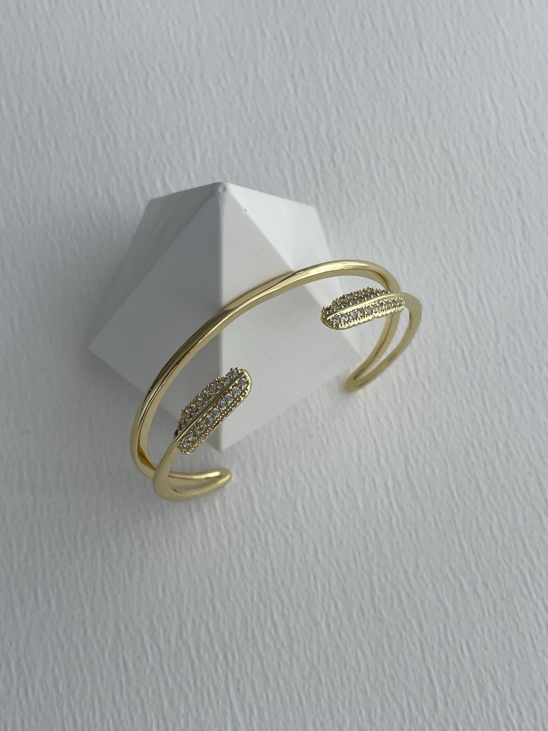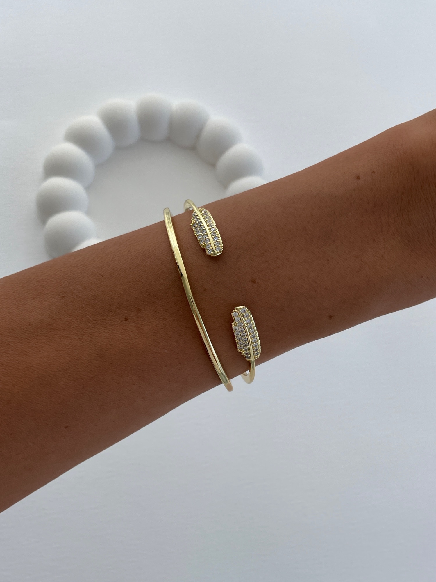 Özel Seri Zirkon Taşlı Yaprak Tasarım İkili Gold Ayarlanabilir Bileklik