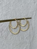 Özel Seri Zirkon Taşlı Yarım Ay İkili Gold Küpe
