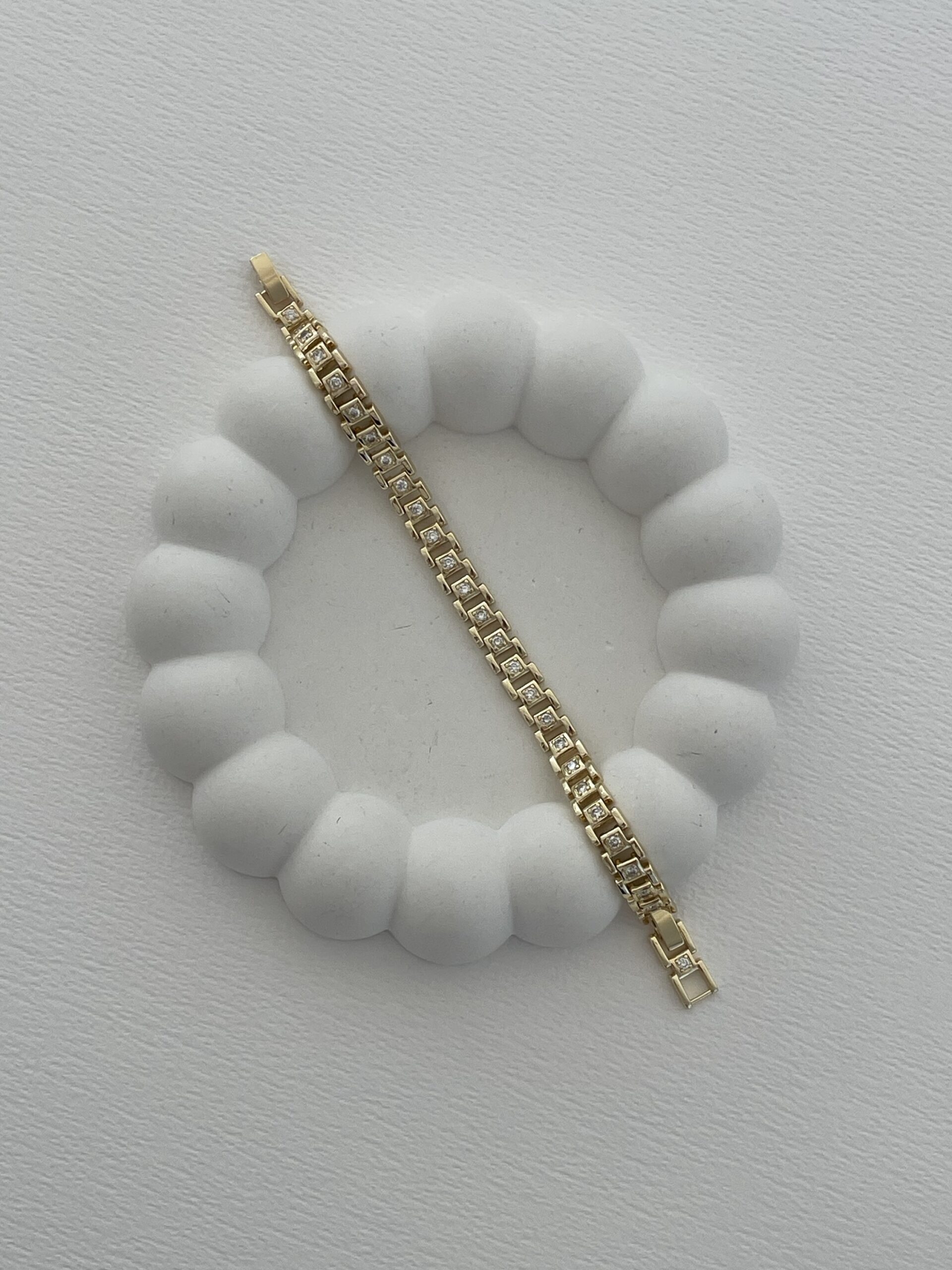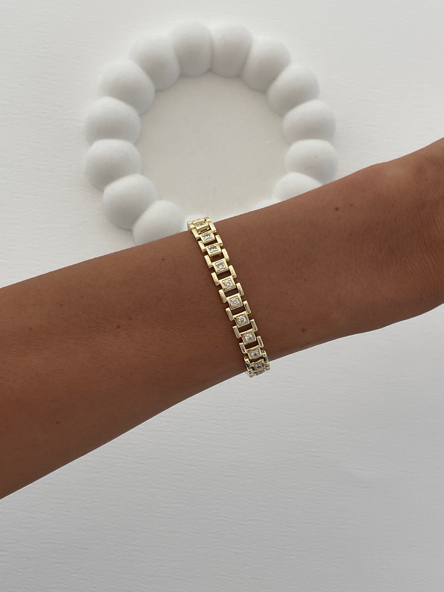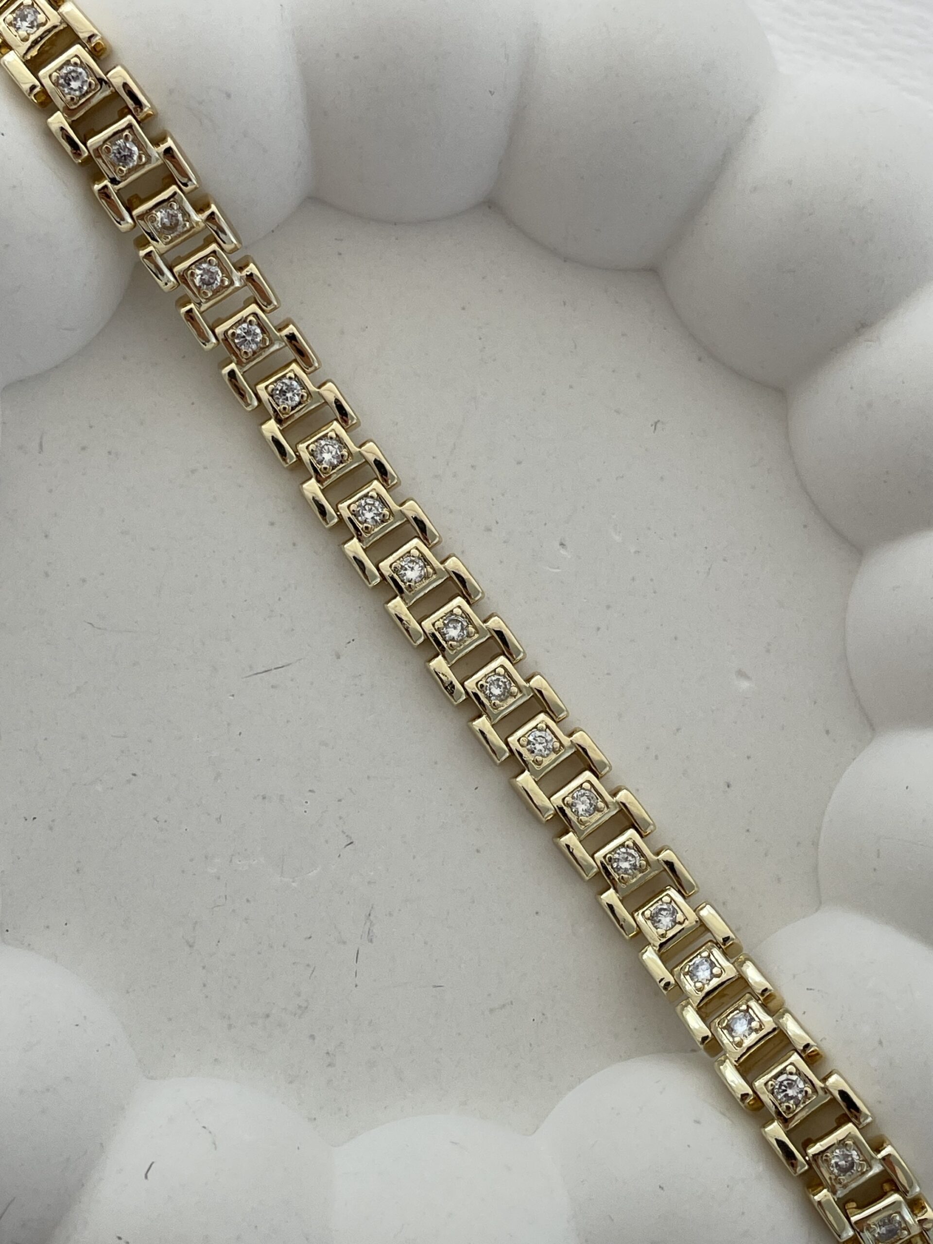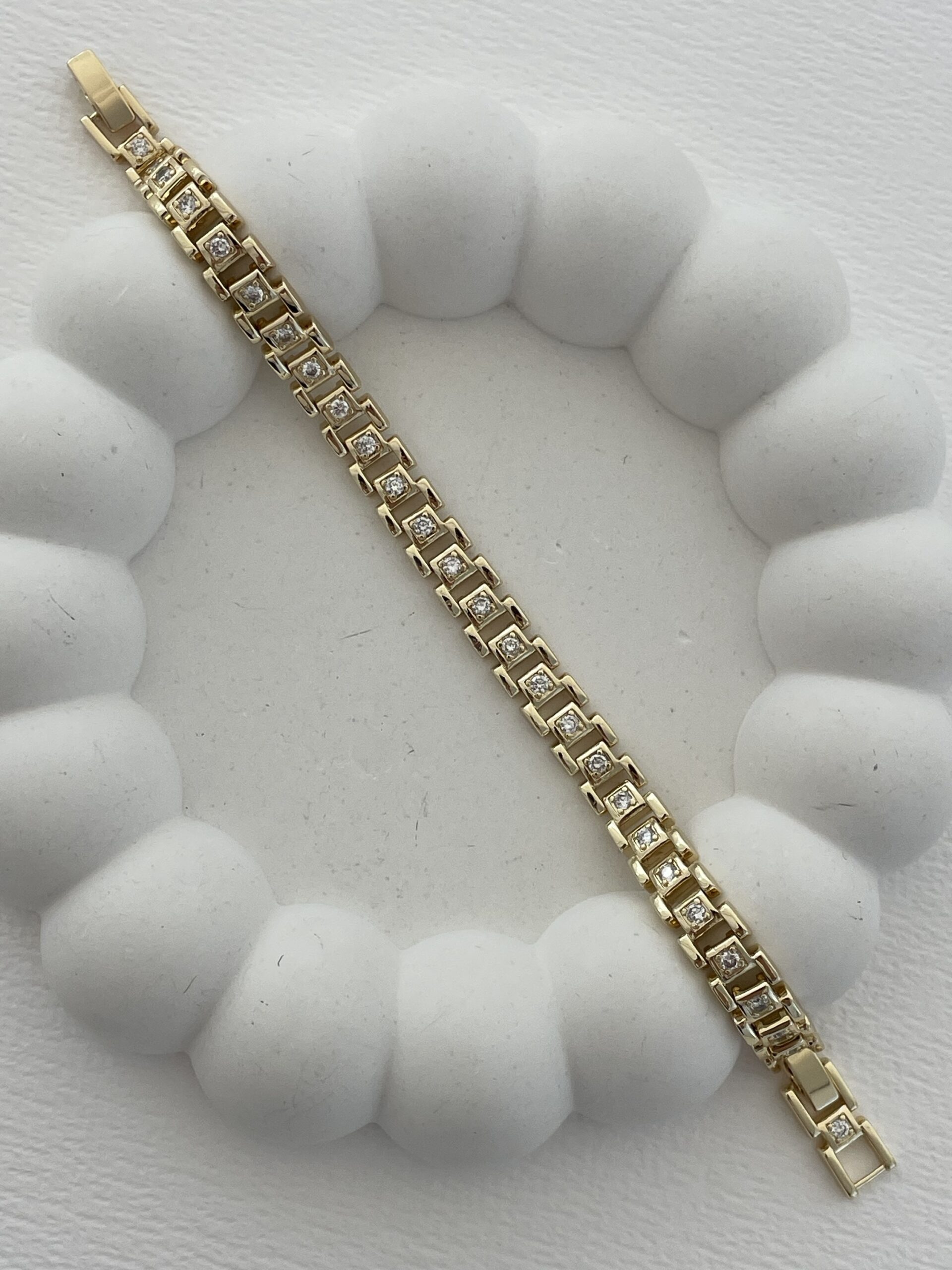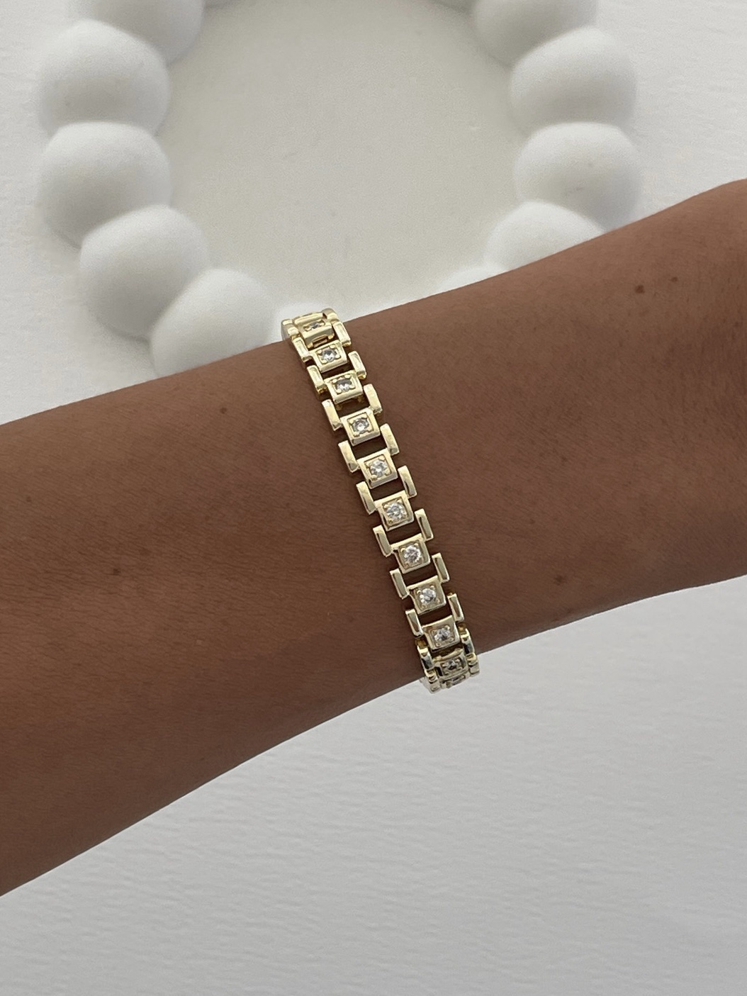 Özel Seri Zirkon Taşlı Yatay Dikdörtgen Tasarım Gold Bileklik