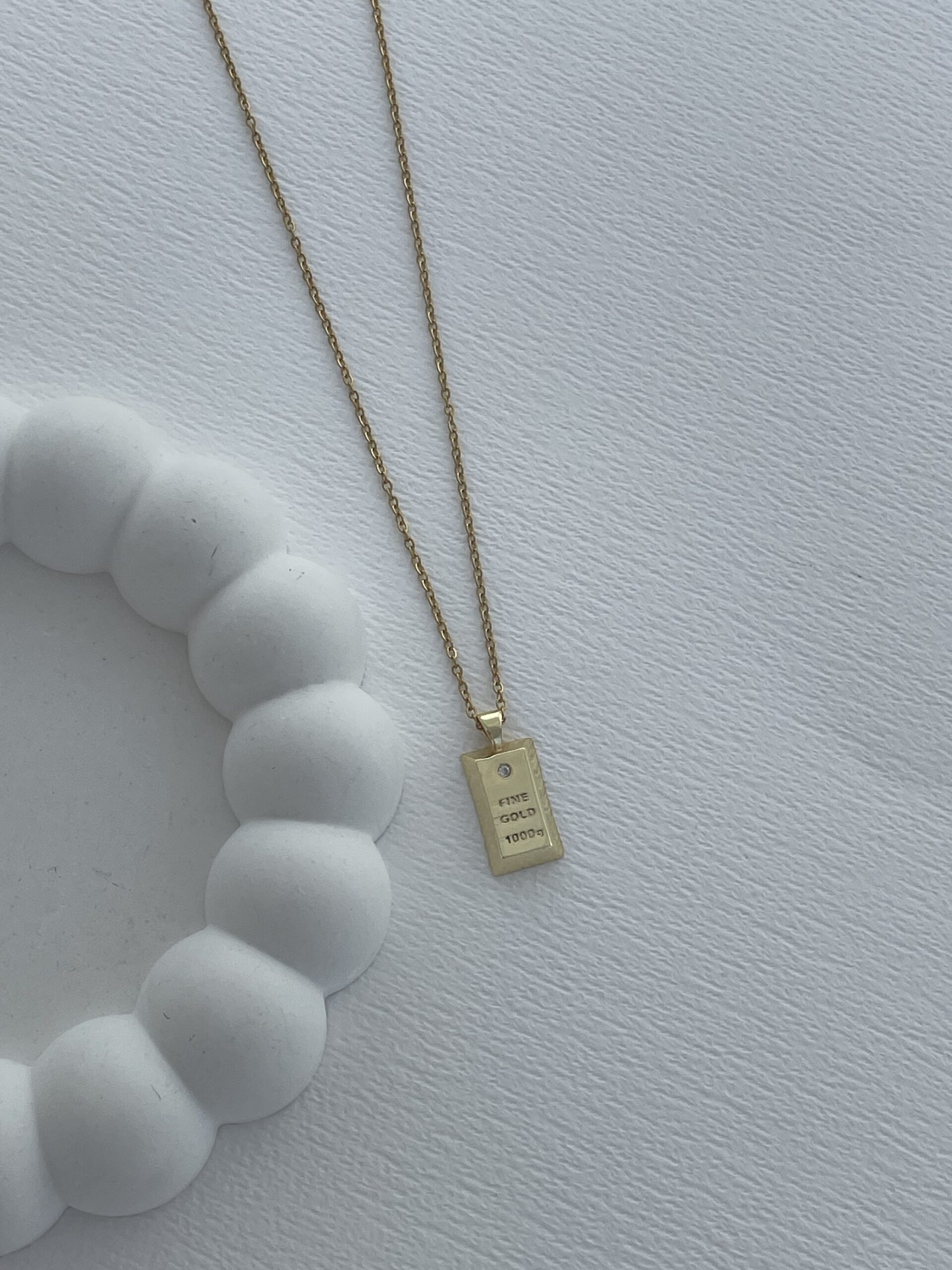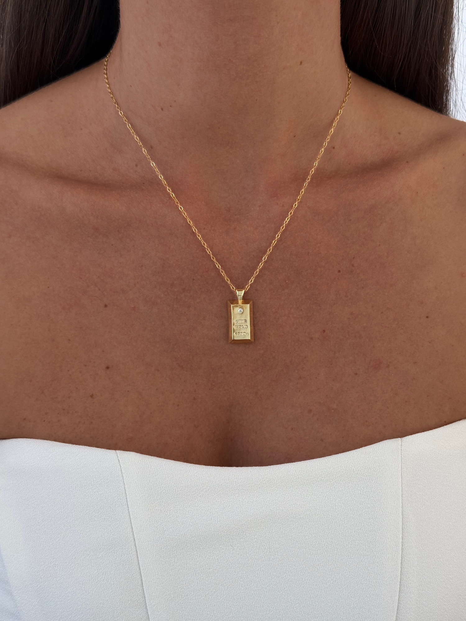 Özel Seri Zirkon Taşlı Yazılı Külçe Altın Tasarım Gold Kolye