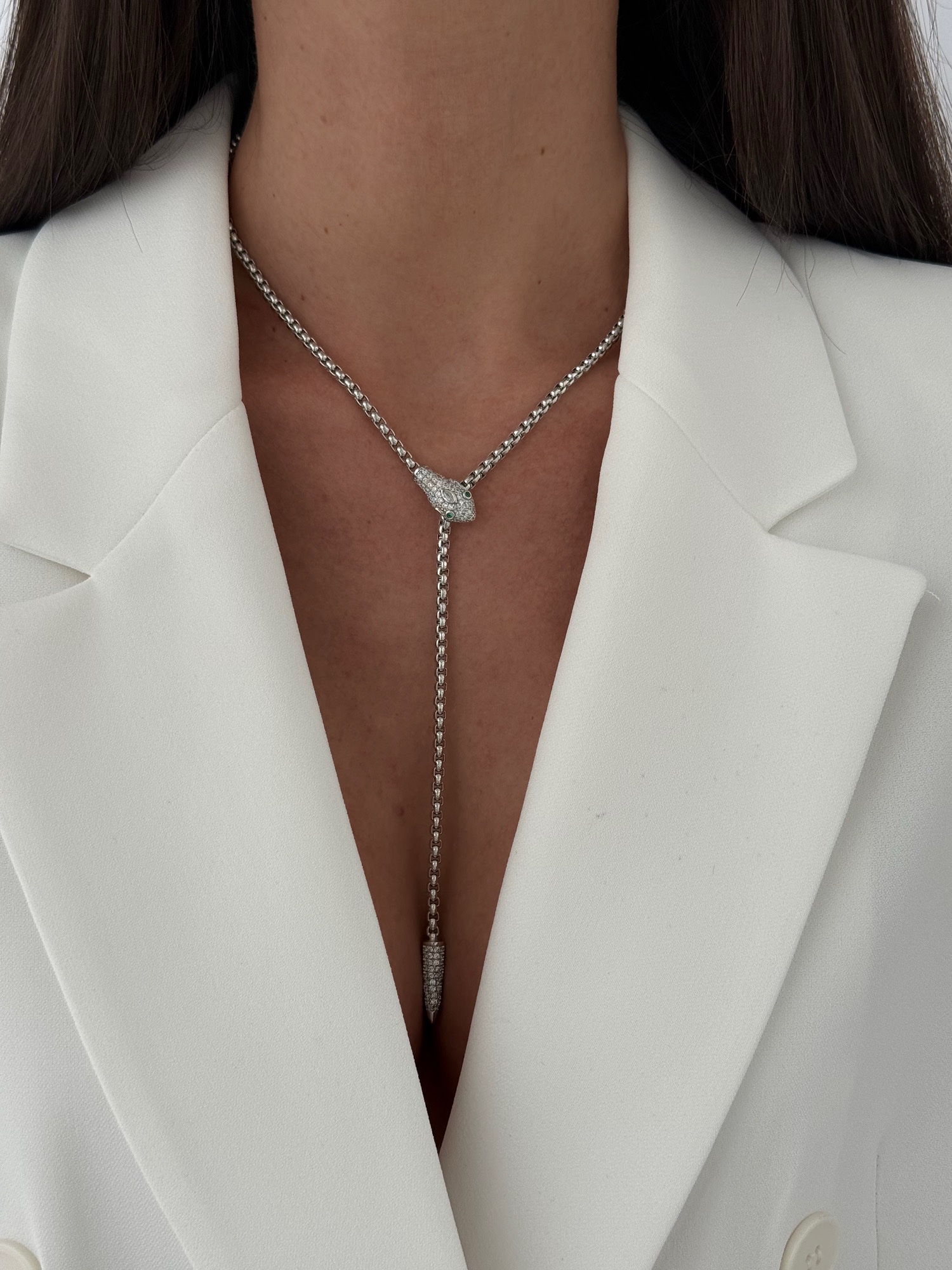 Özel Seri Zirkon Taşlı Yılan Tasarım Asansörlü Gümüş Kolye