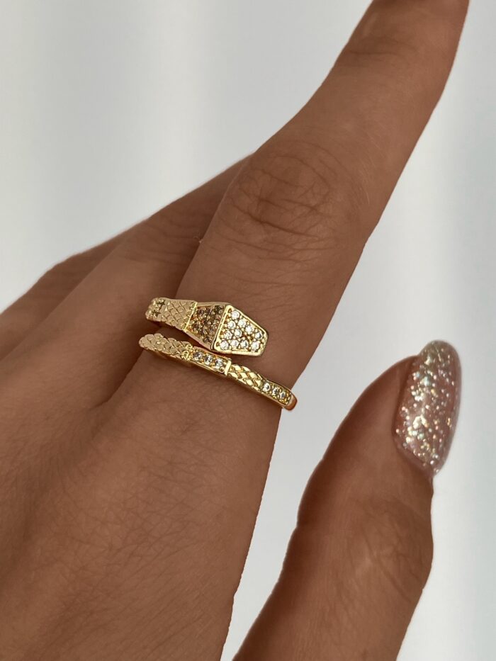 Özel Seri Zirkon Taşlı Yılan Tasarım Ayarlanabilir Gold Yüzük