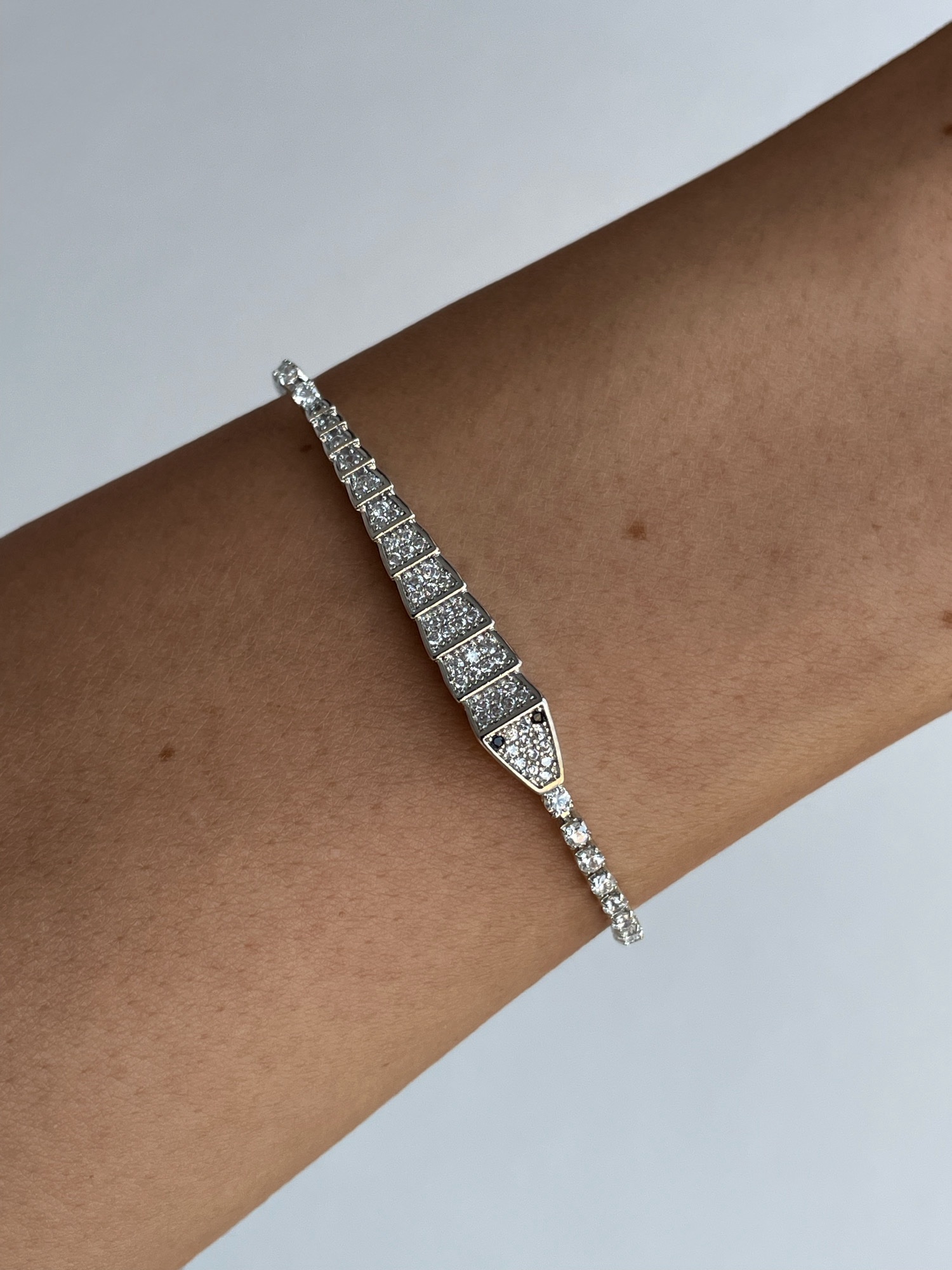 Özel Seri Zirkon Taşlı Yılan Tasarım Ayarlanabilir Gümüş Bileklik