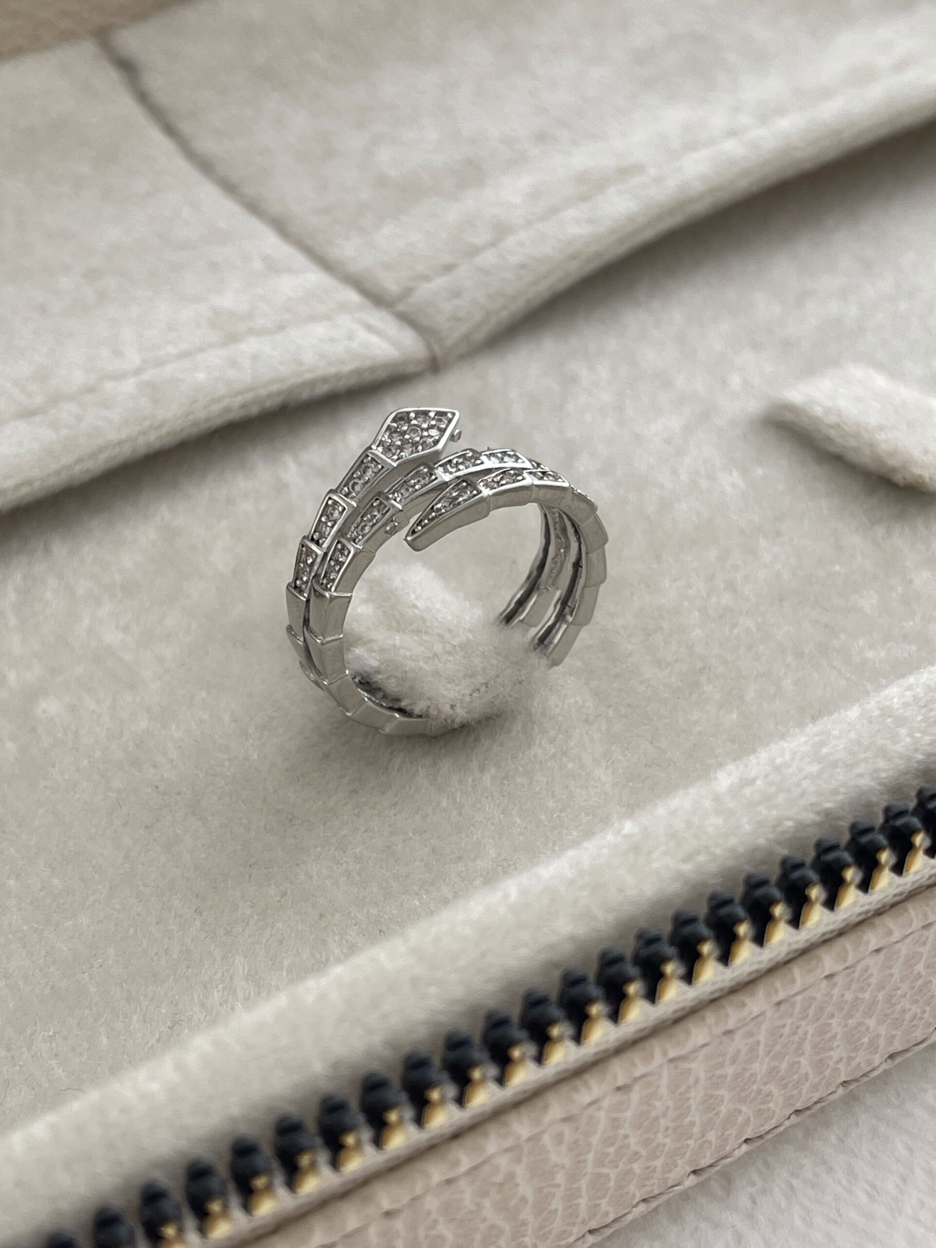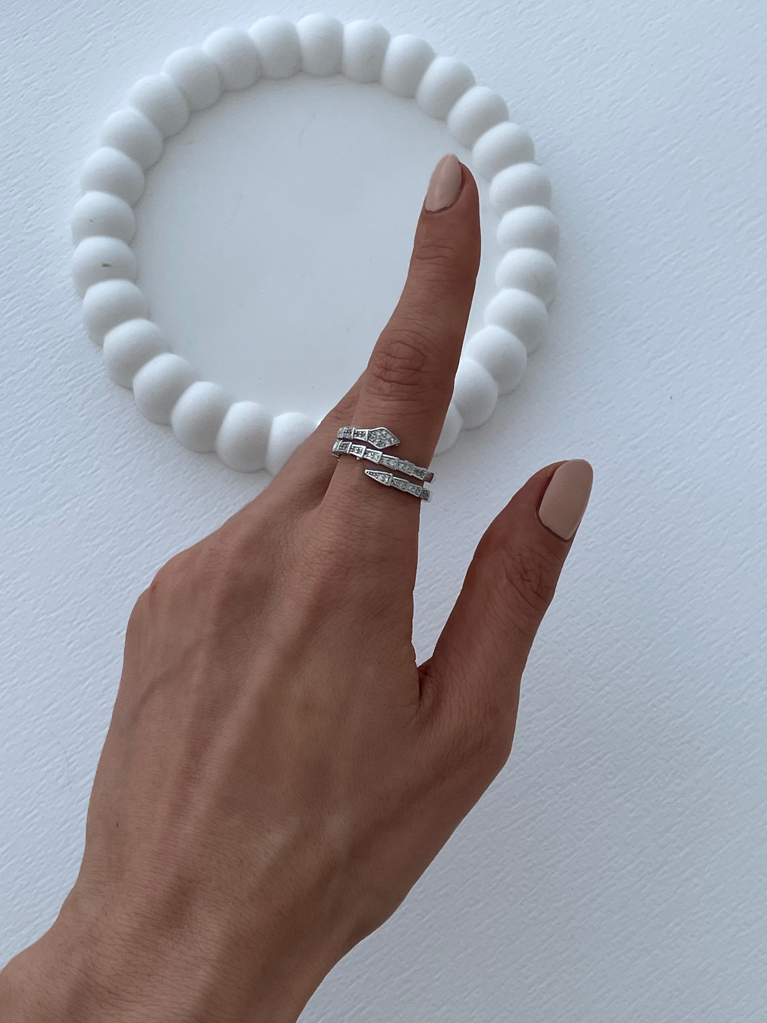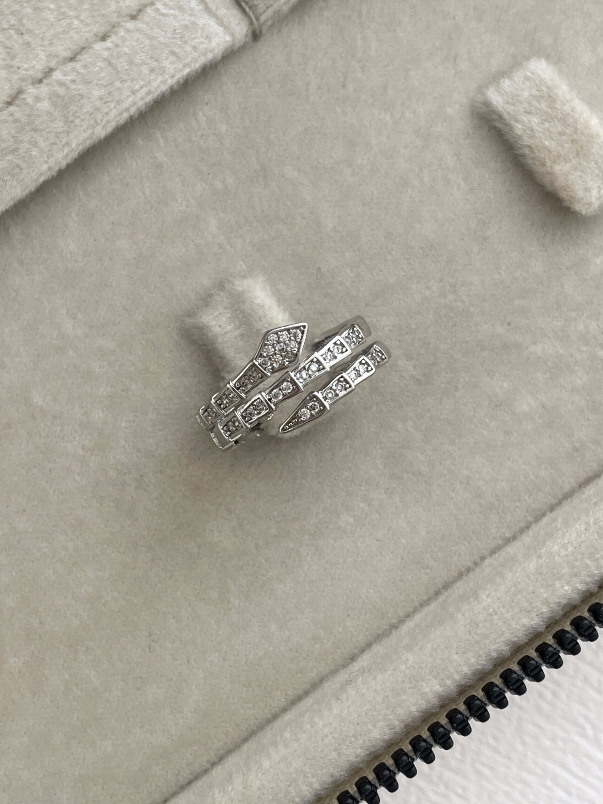 Özel Seri Zirkon Taşlı Yılan Tasarım Ayarlanabilir Gümüş Yüzük