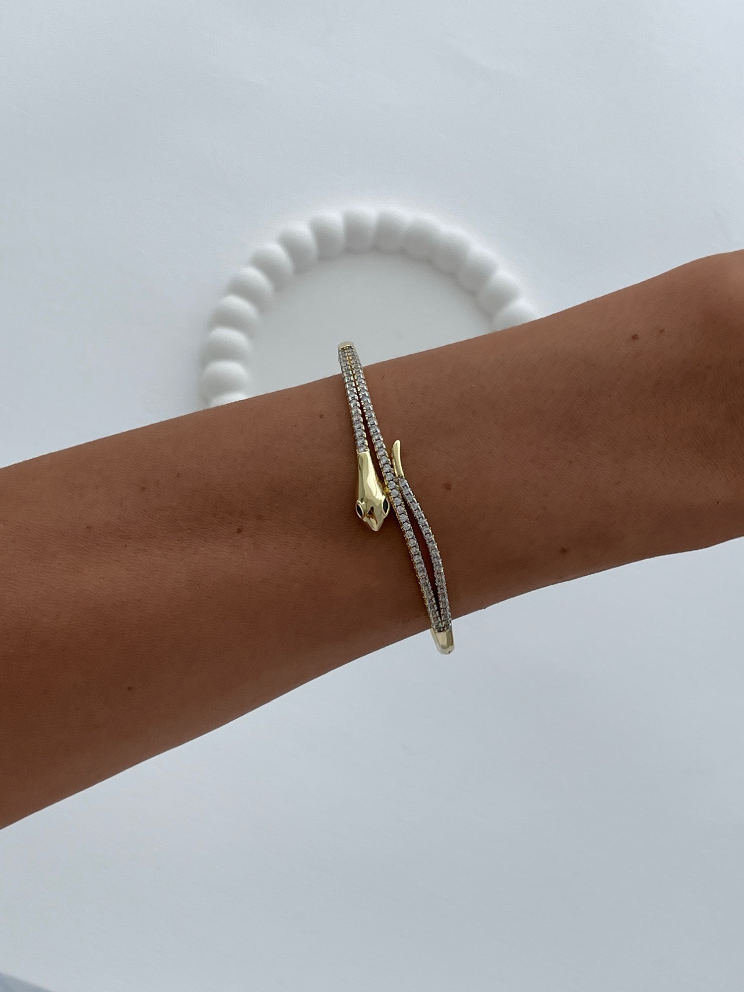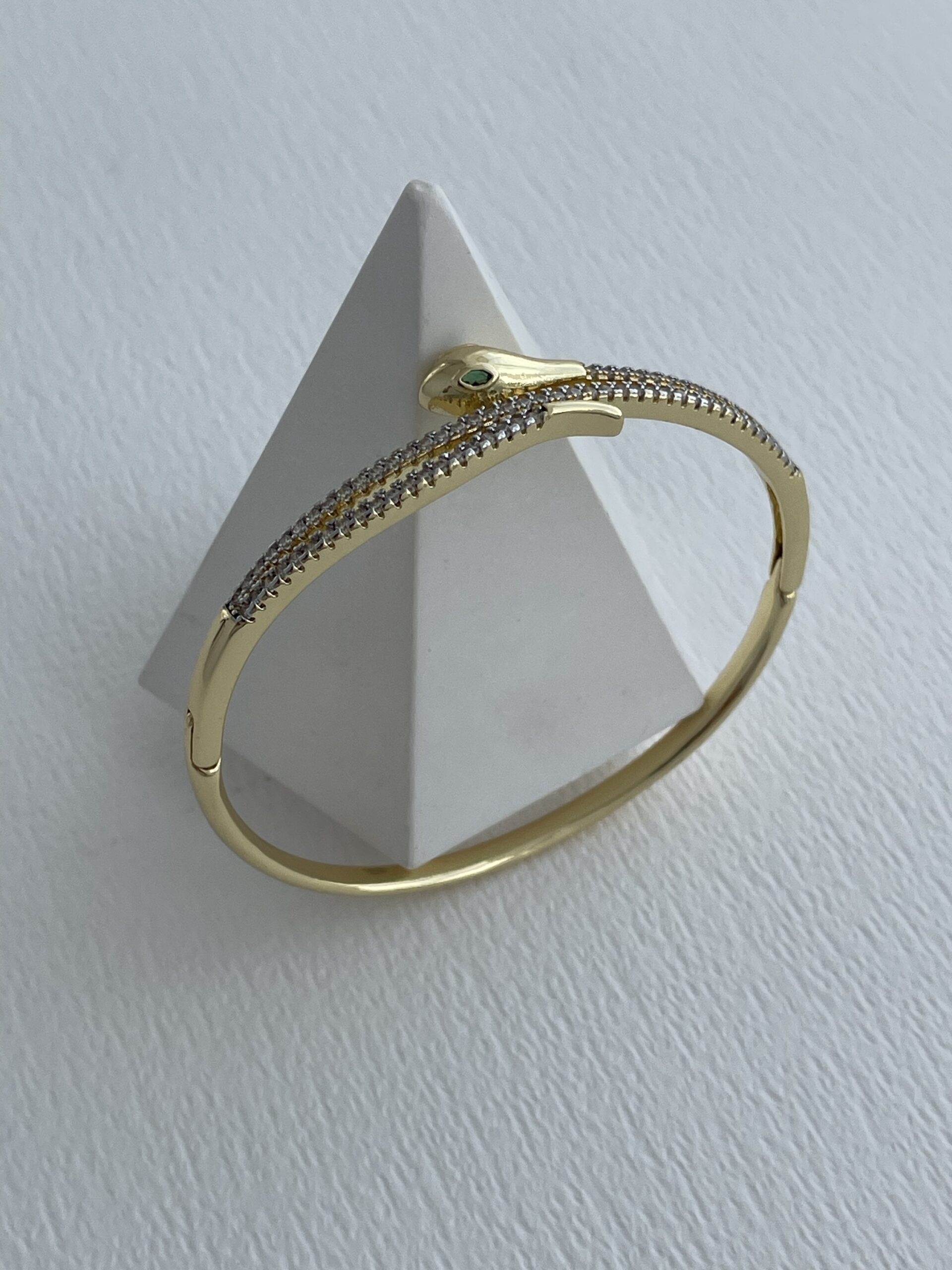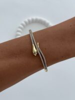 Özel Seri Zirkon Taşlı Yılan Tasarım Gold Kelepçe Bileklik