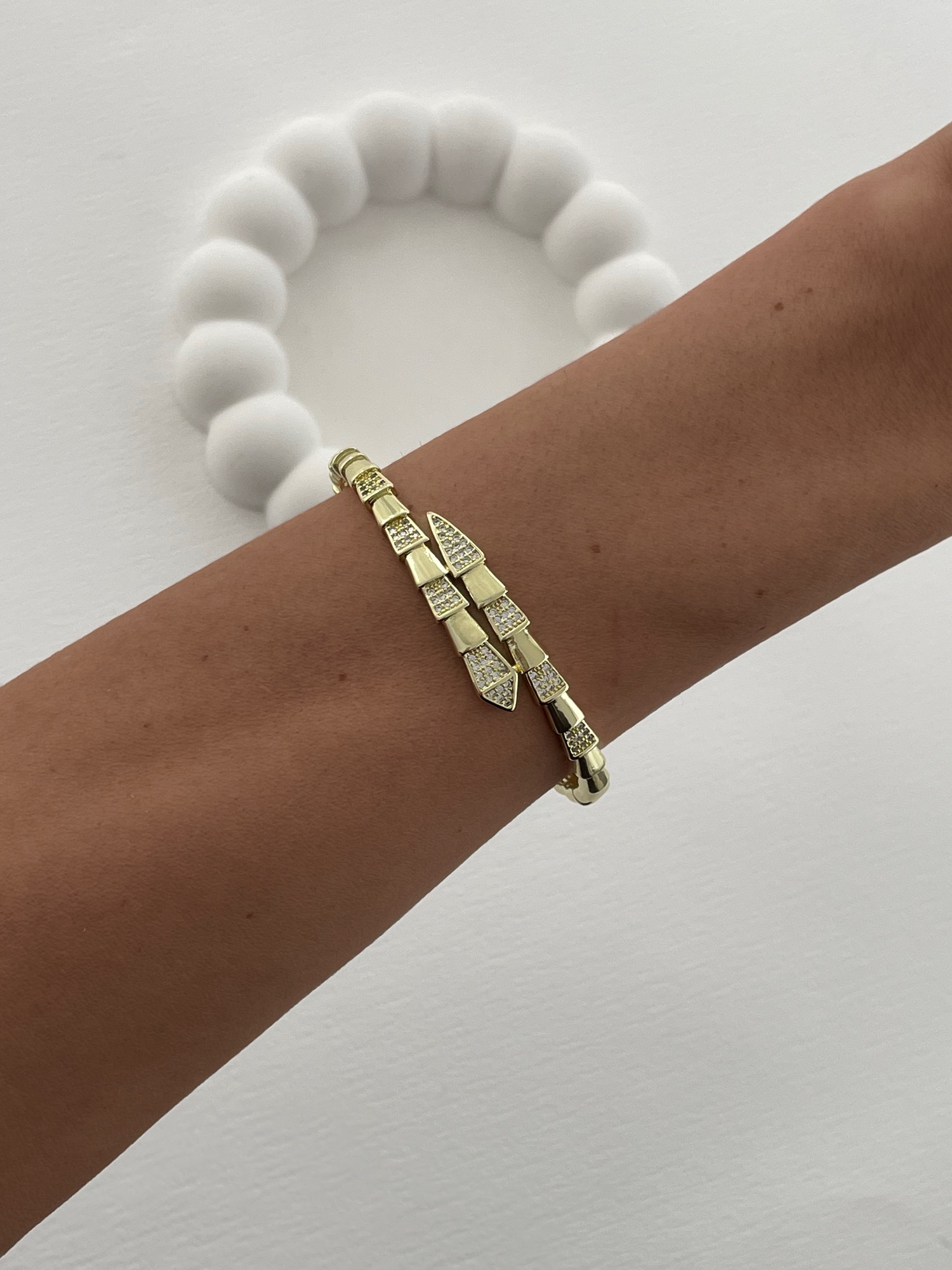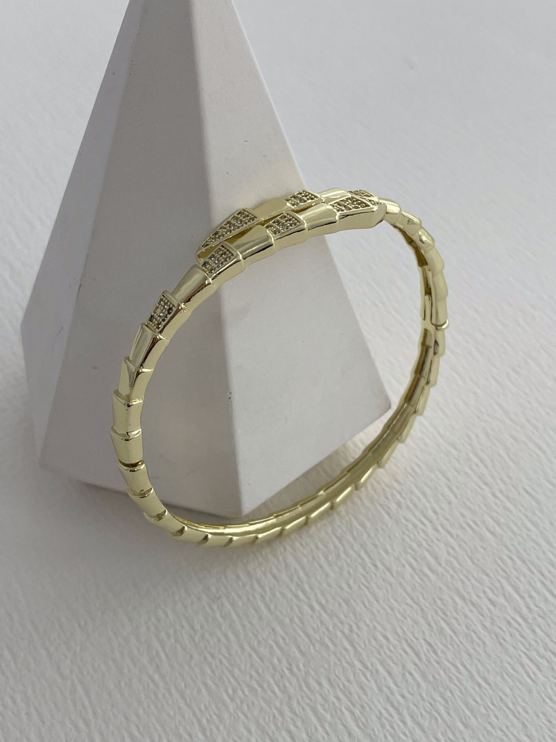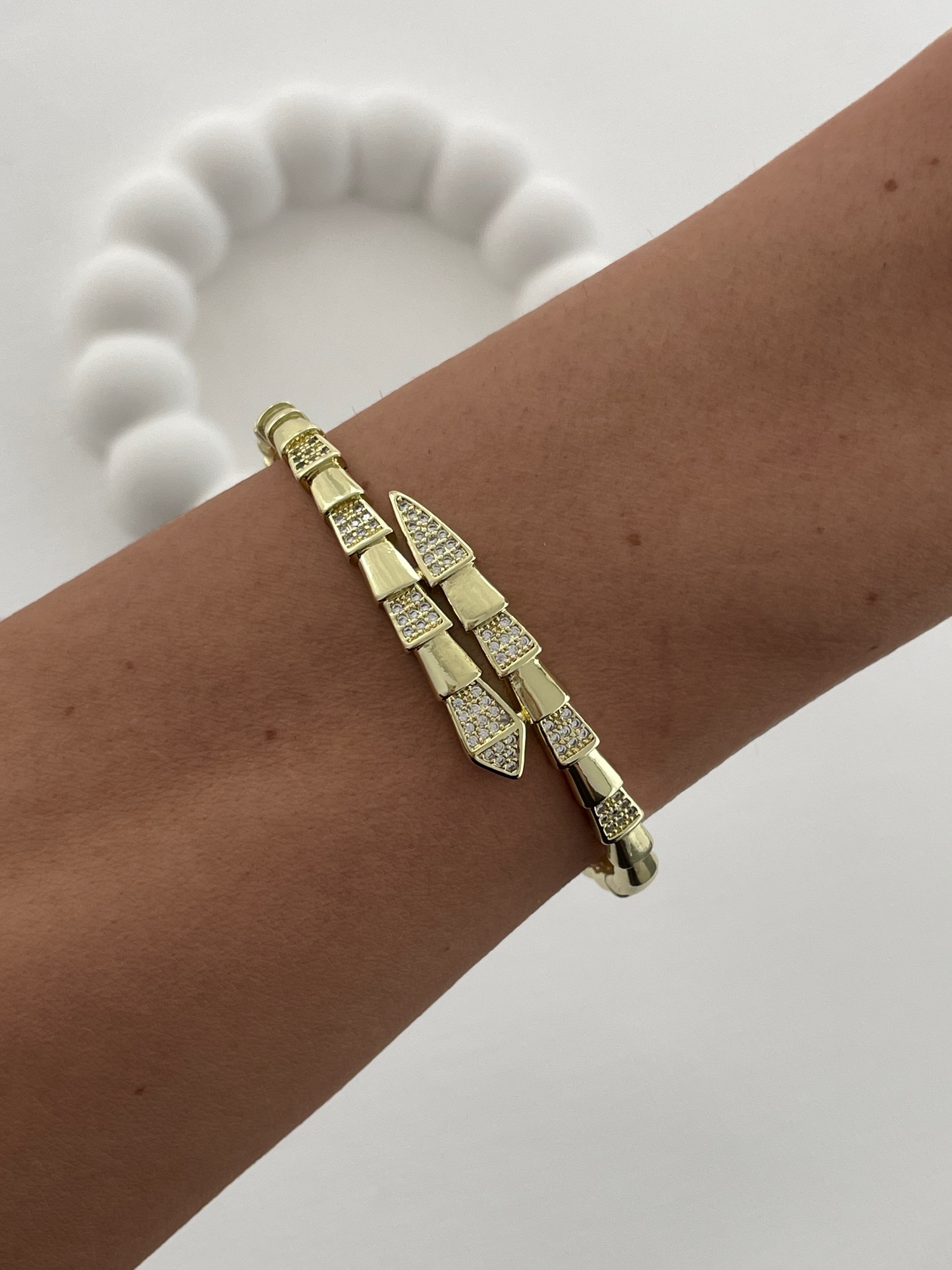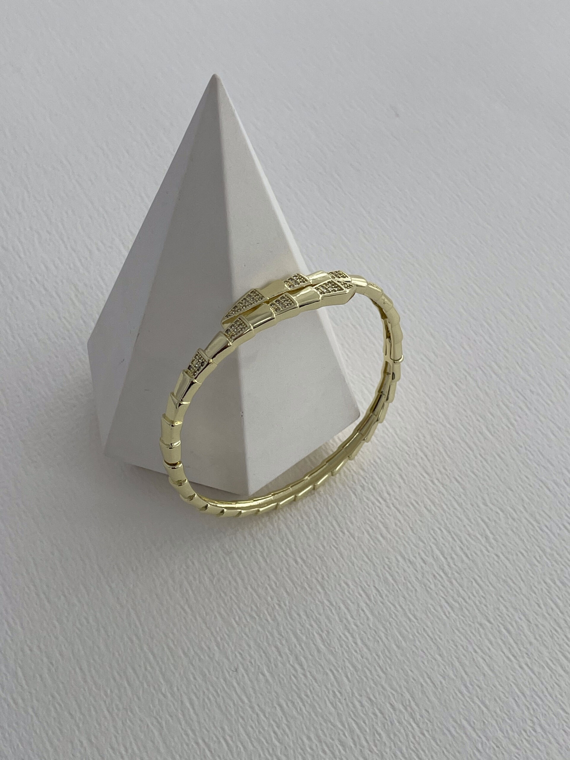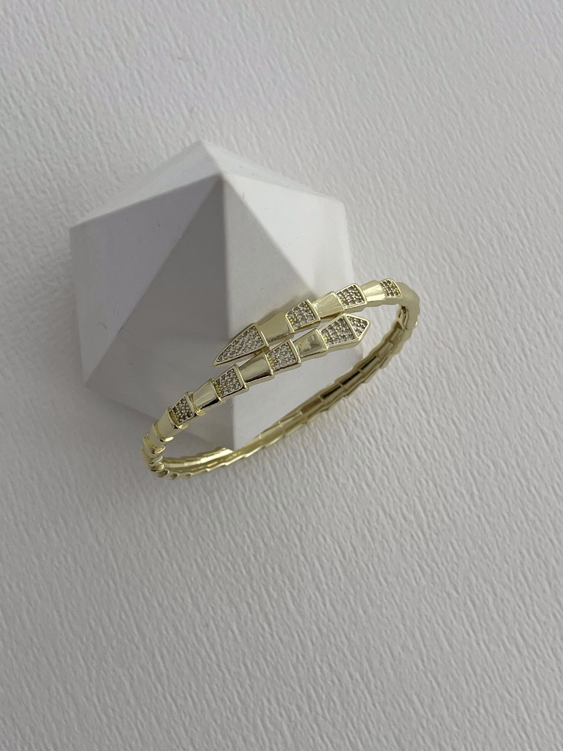Özel Seri Zirkon Taşlı Yılan Tasarım Gold Kelepçe Bileklik