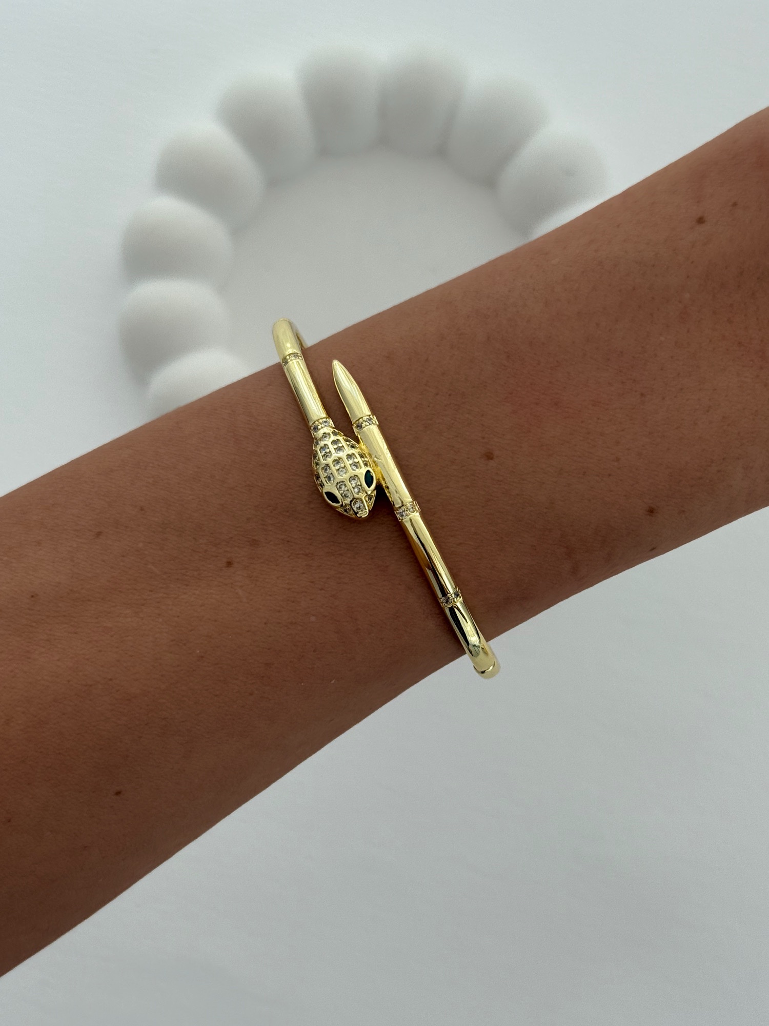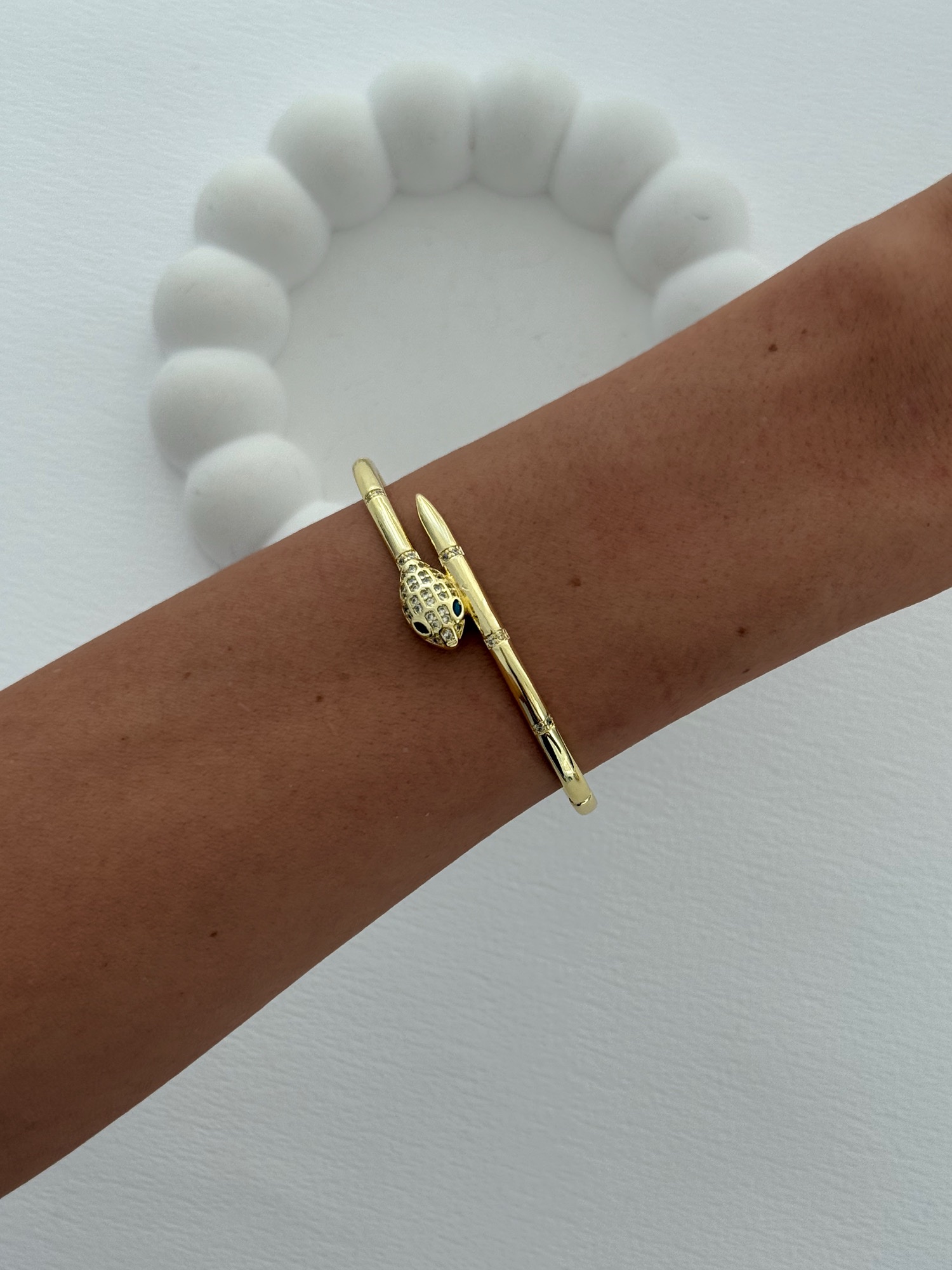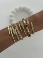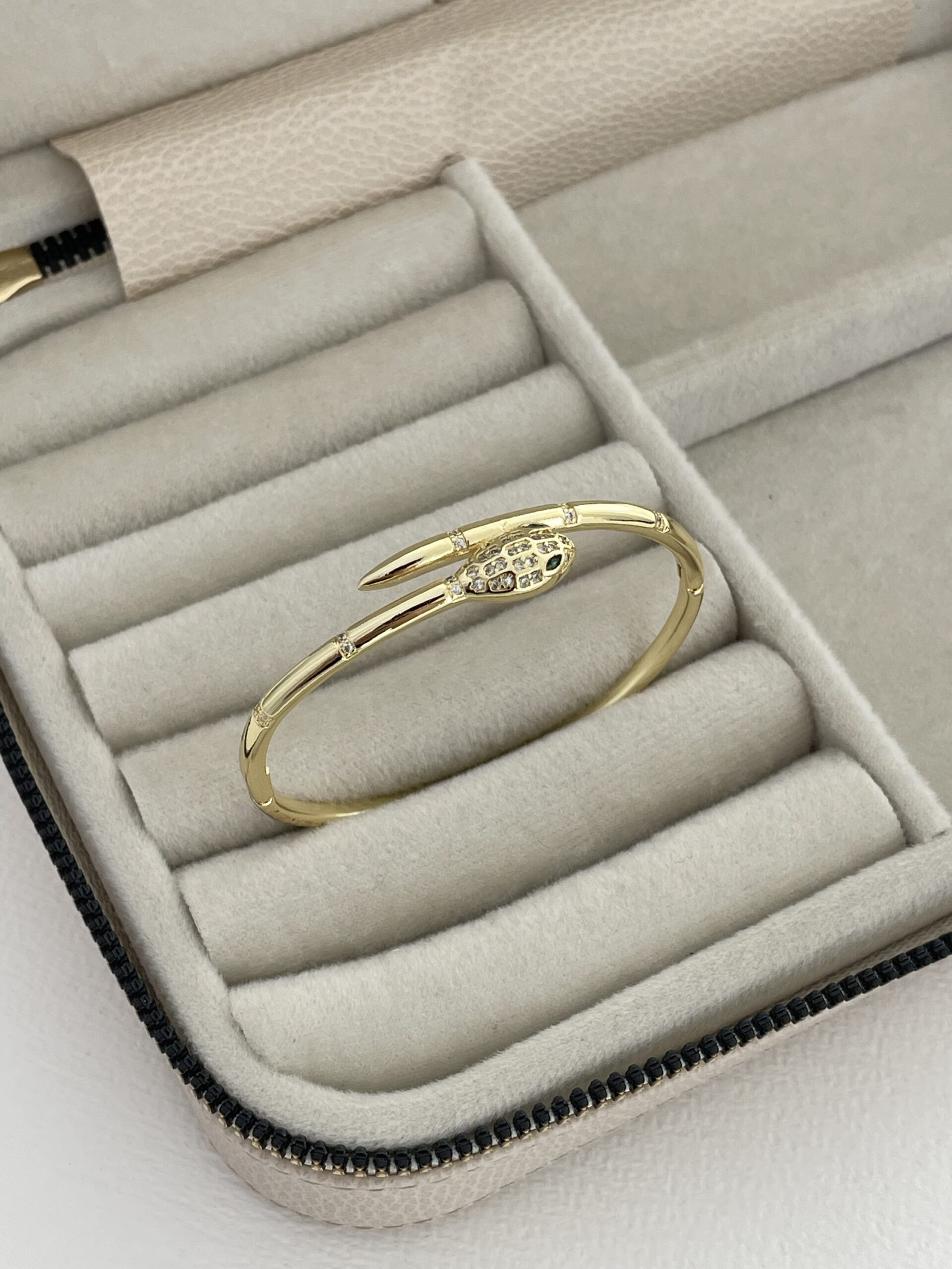Özel Seri Yeşil Zirkon Taşlı Yılan Tasarım Gold Kelepçe Bileklik