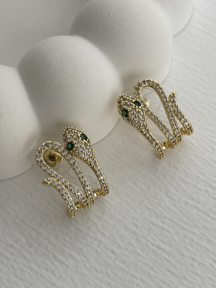 Özel Seri Zirkon Taşlı Yılan Tasarım Gold Küpe