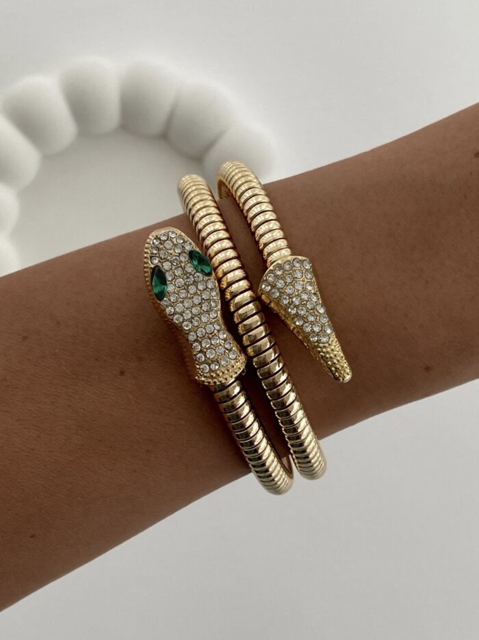 Özel Seri Zirkon Taşlı Yılan Tasarım Gold Sarmal Bileklik