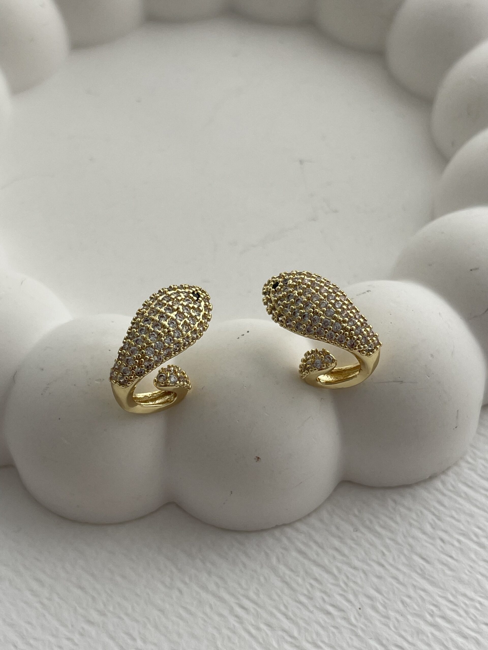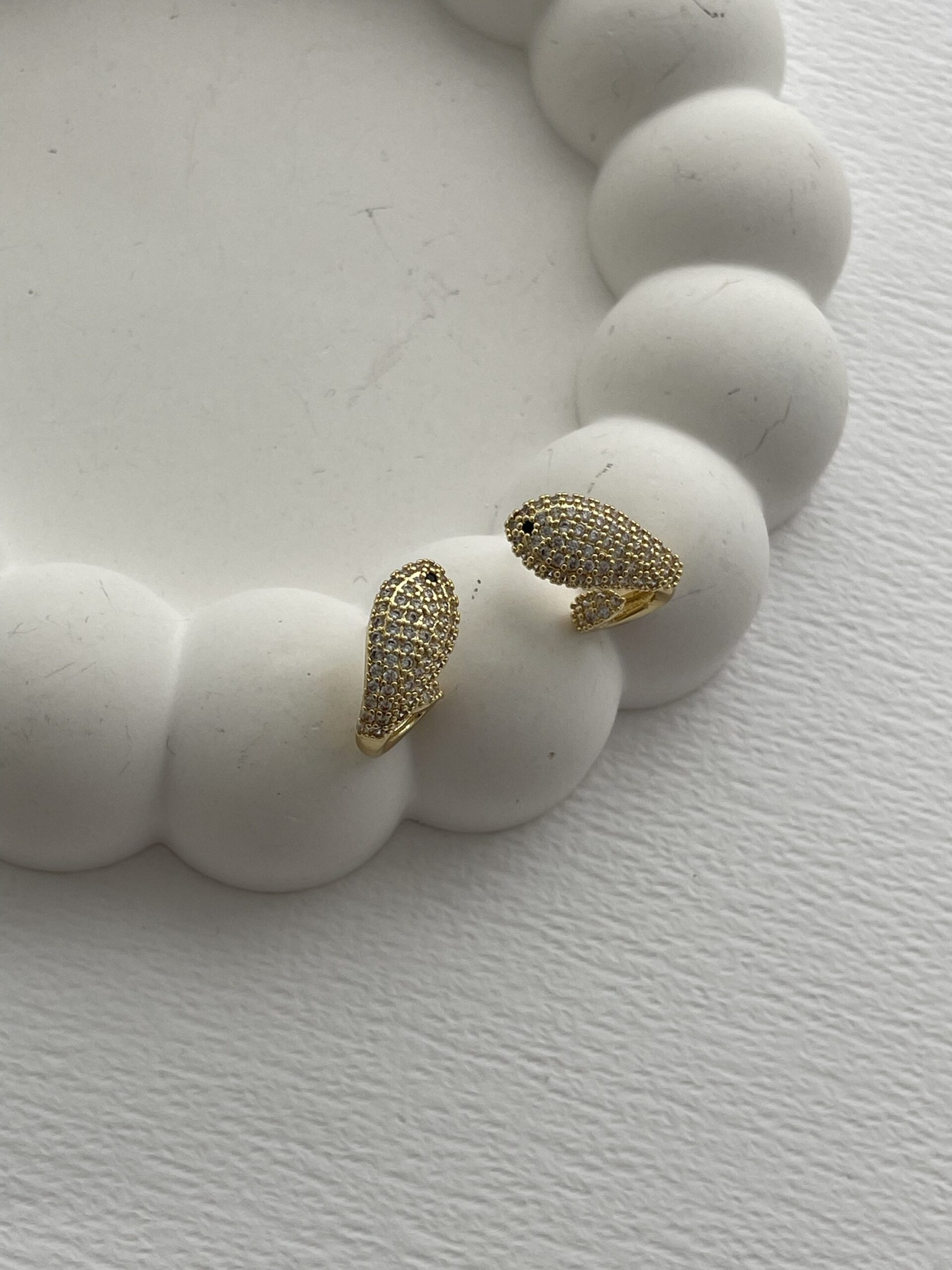 Özel Seri Zirkon Taşlı Yılan Tasarım Minik Gold Küpe