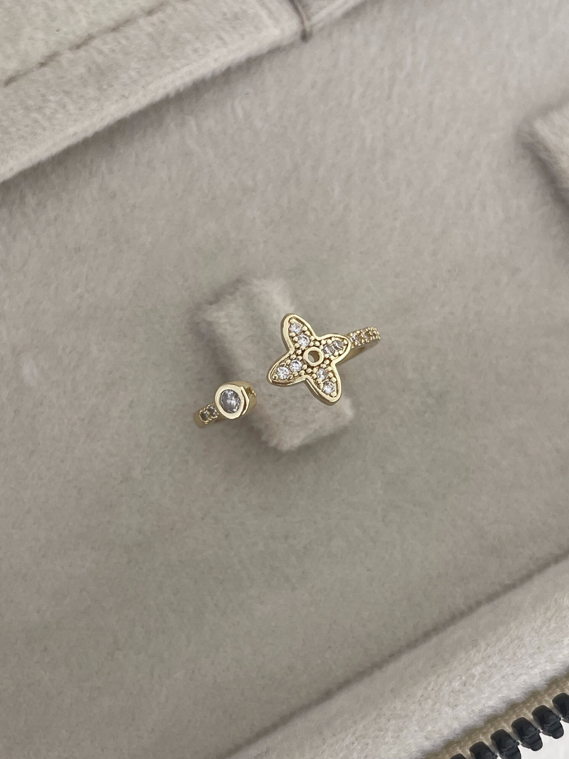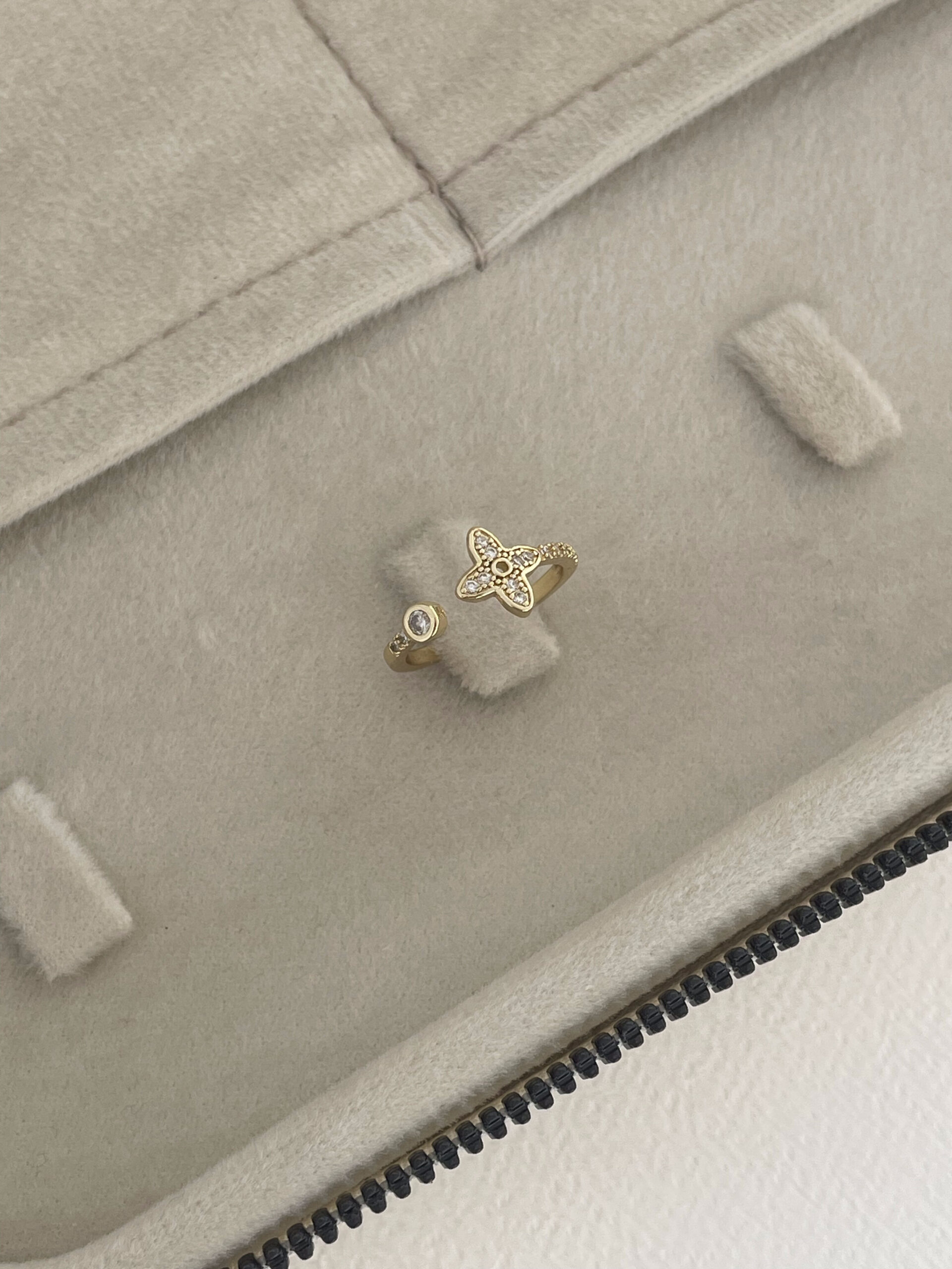 Özel Seri Zirkon Taşlı Yıldız Tasarım Ayarlanabilir Gold Yüzük
