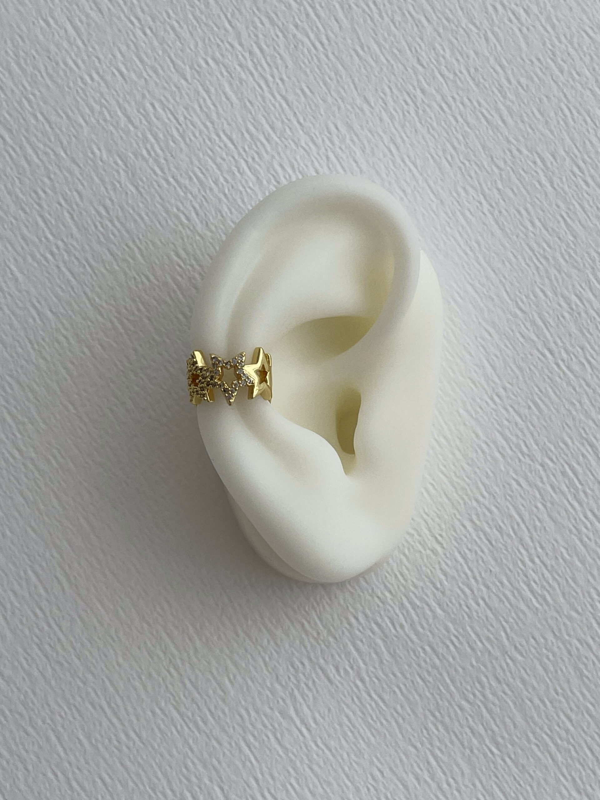 Özel Seri Zirkon Taşlı Yıldız Tasarım Gold Earcuff Küpe
