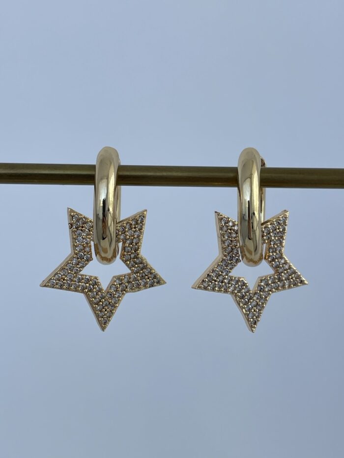 Özel Seri Zirkon Taşlı Yıldız Tasarım Gold Küpe