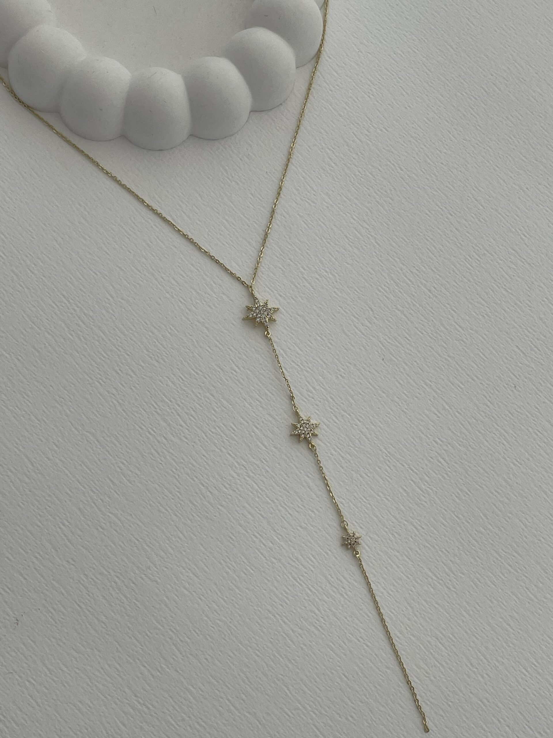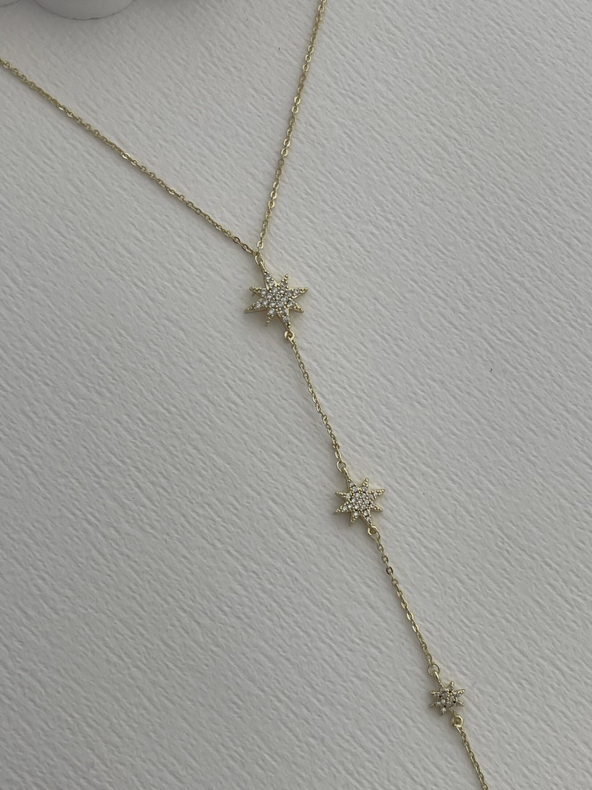 Özel Seri Zirkon Taşlı Yıldız Tasarım Gold Y Kolye