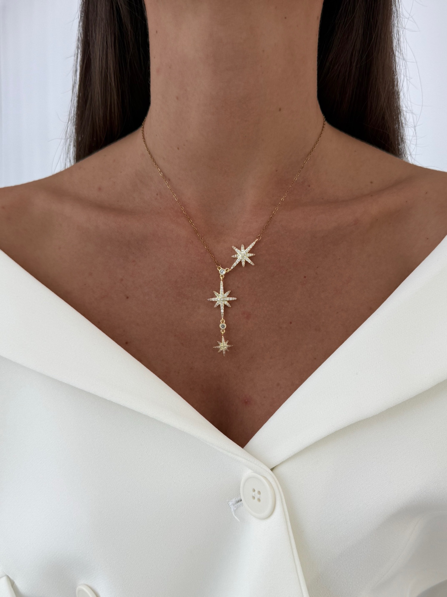 Özel Seri Zirkon Taşlı Yıldız Tasarım Gold Y Kolye