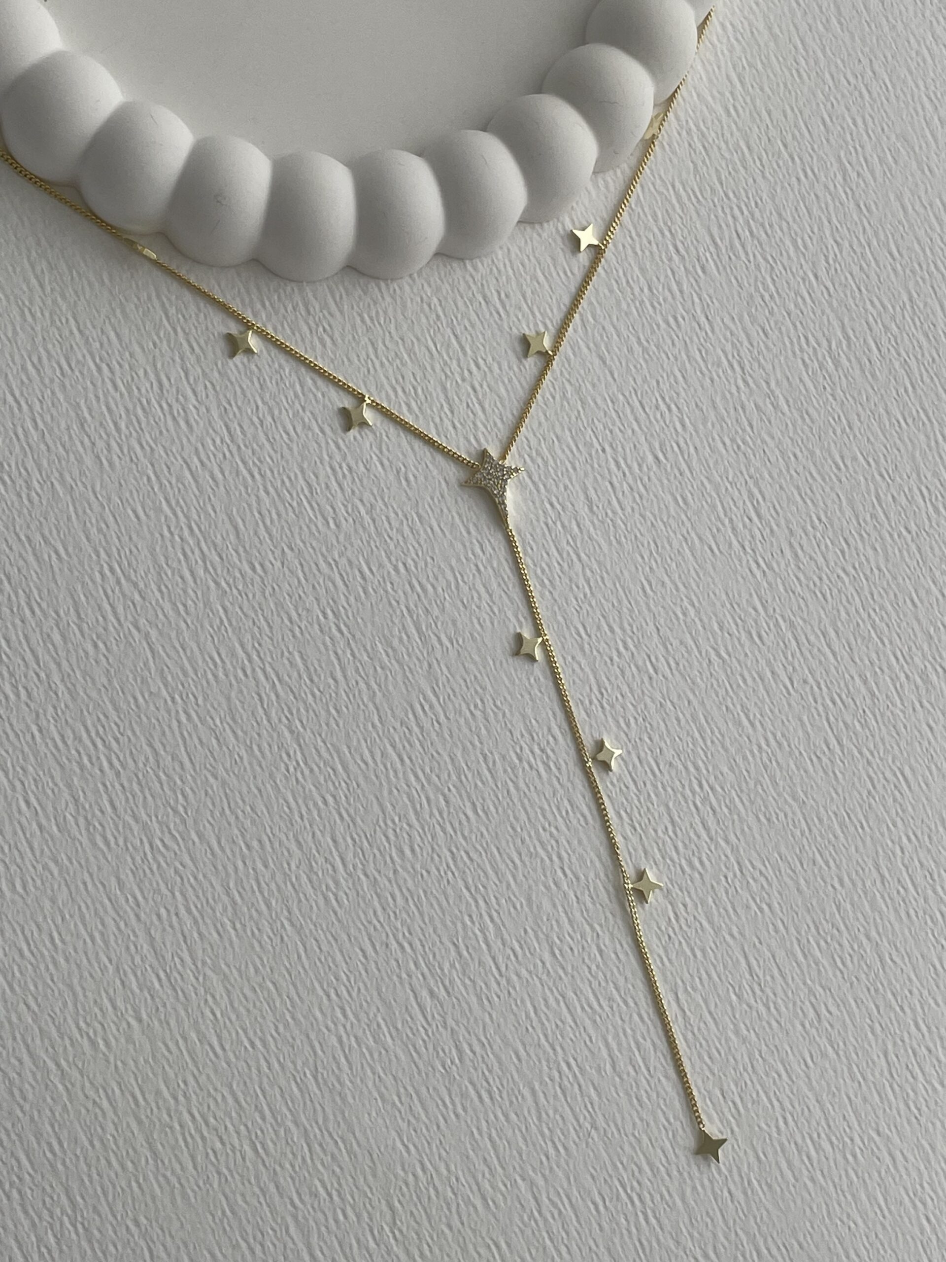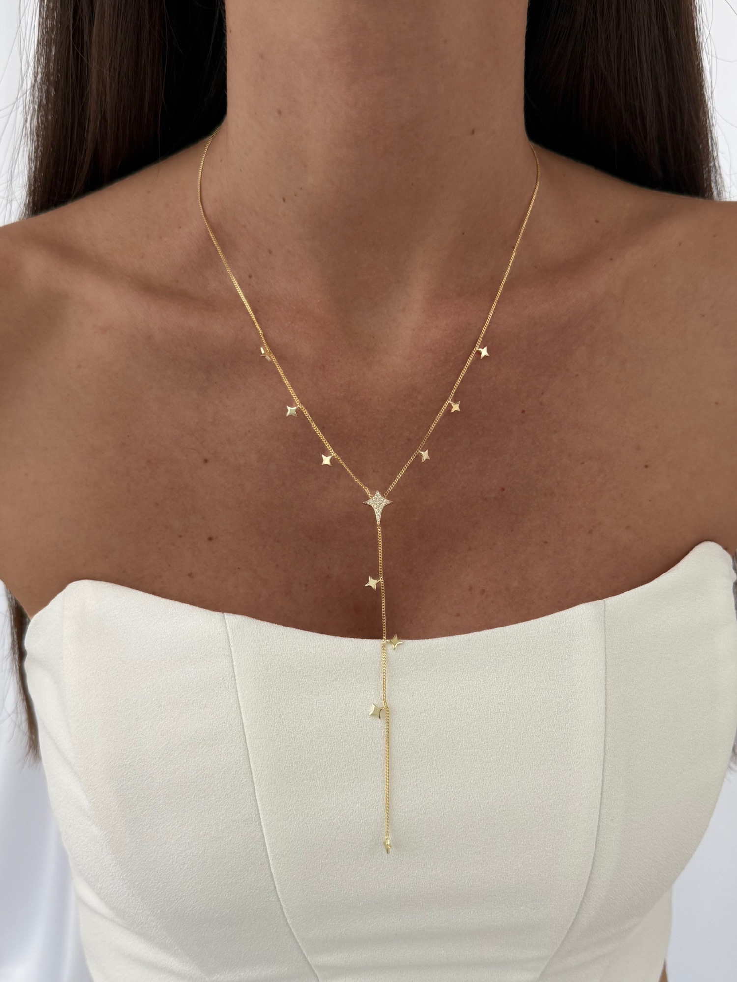 Özel Seri Zirkon Taşlı Yıldız Tasarım Gold Y Kolye