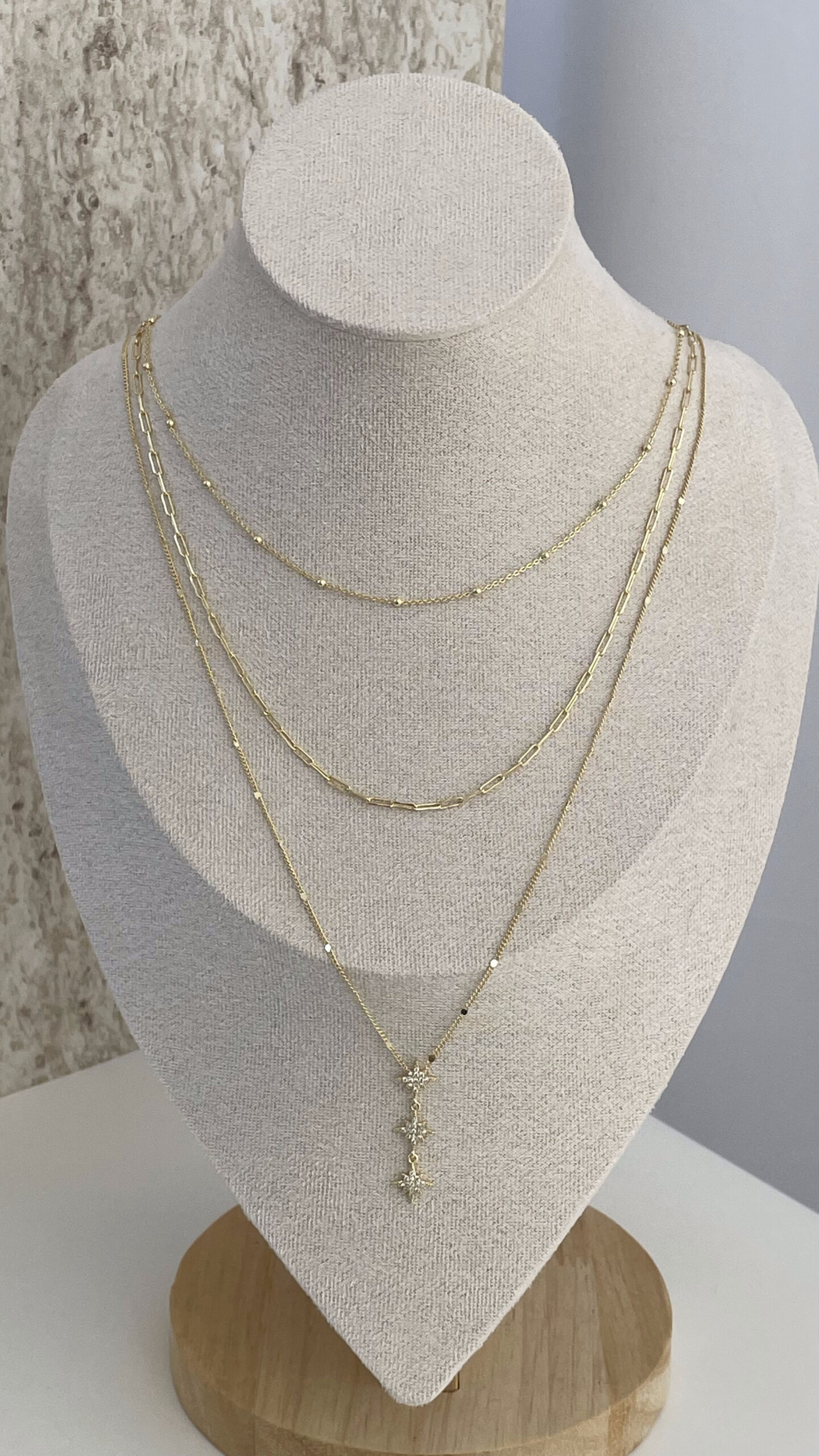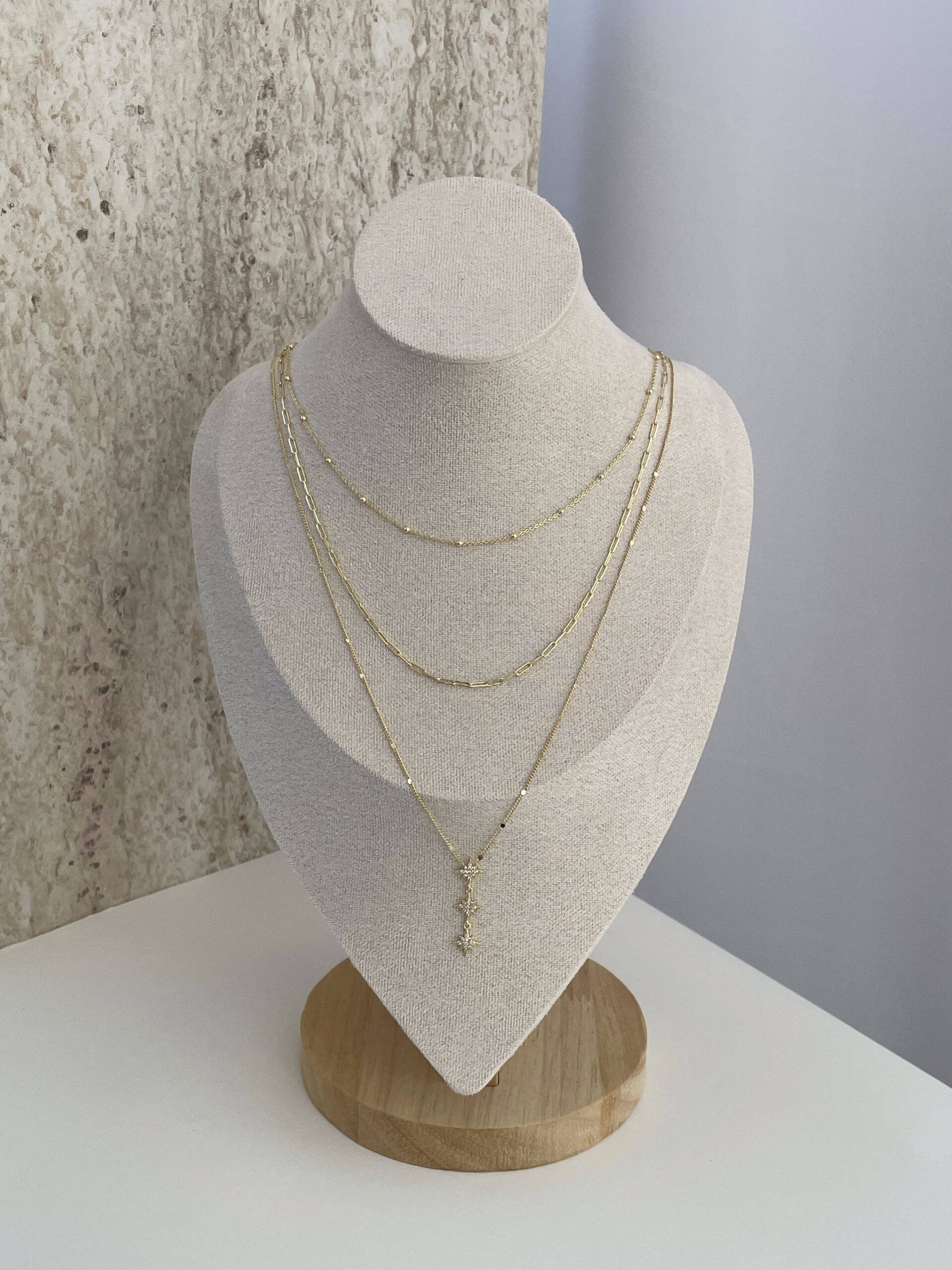 Özel Seri Zirkon Taşlı Yıldız Tasarım Minik Plaka Detay Üçlü İnce Gold Kolye