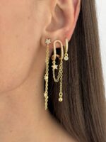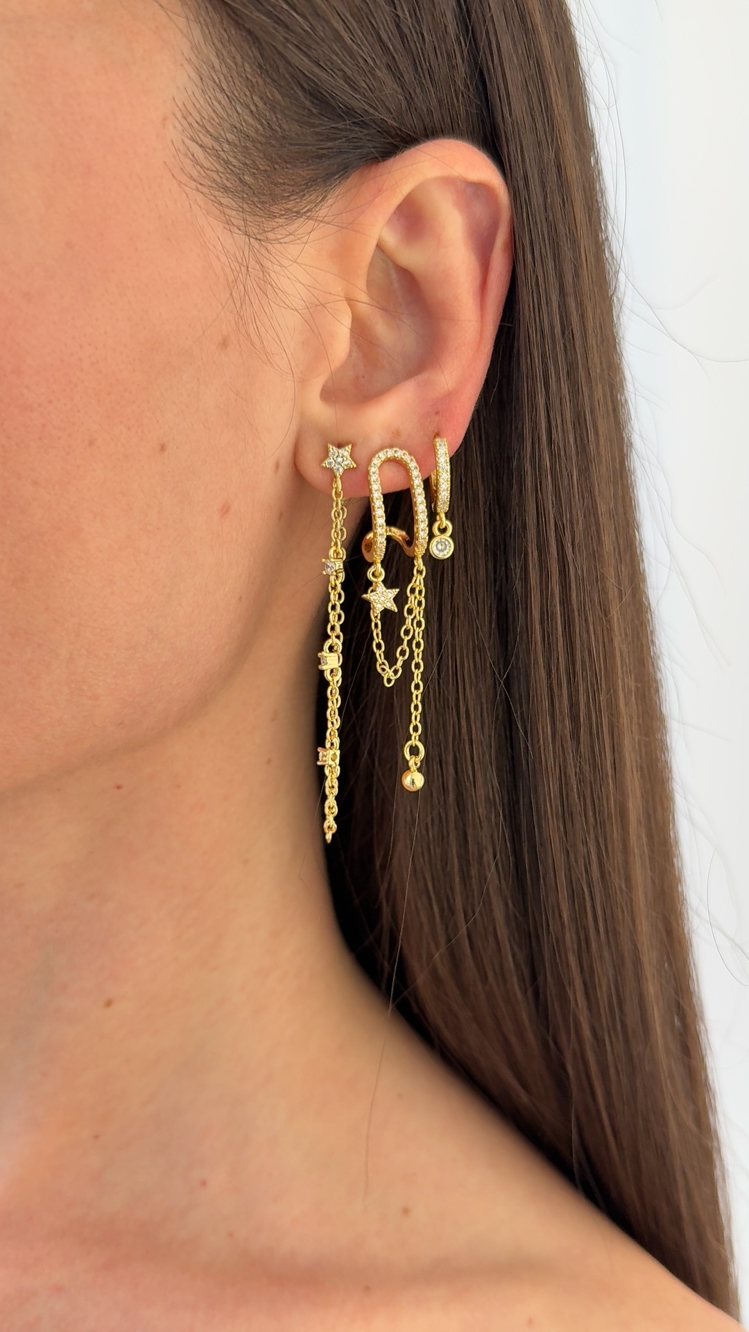 Özel Seri Zirkon Taşlı Yıldız Tasarım Sallantılı Üçlü Gold Küpe Seti