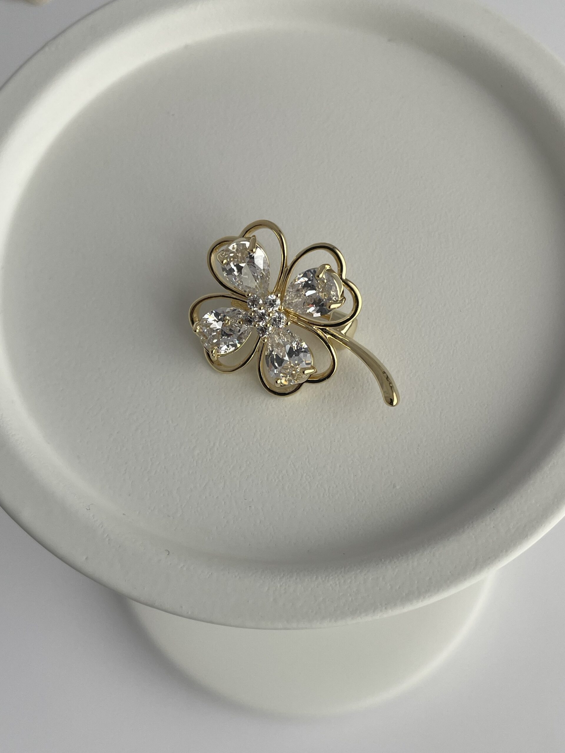 Özel Seri Zirkon Taşlı Yonca Desen Gold Broş