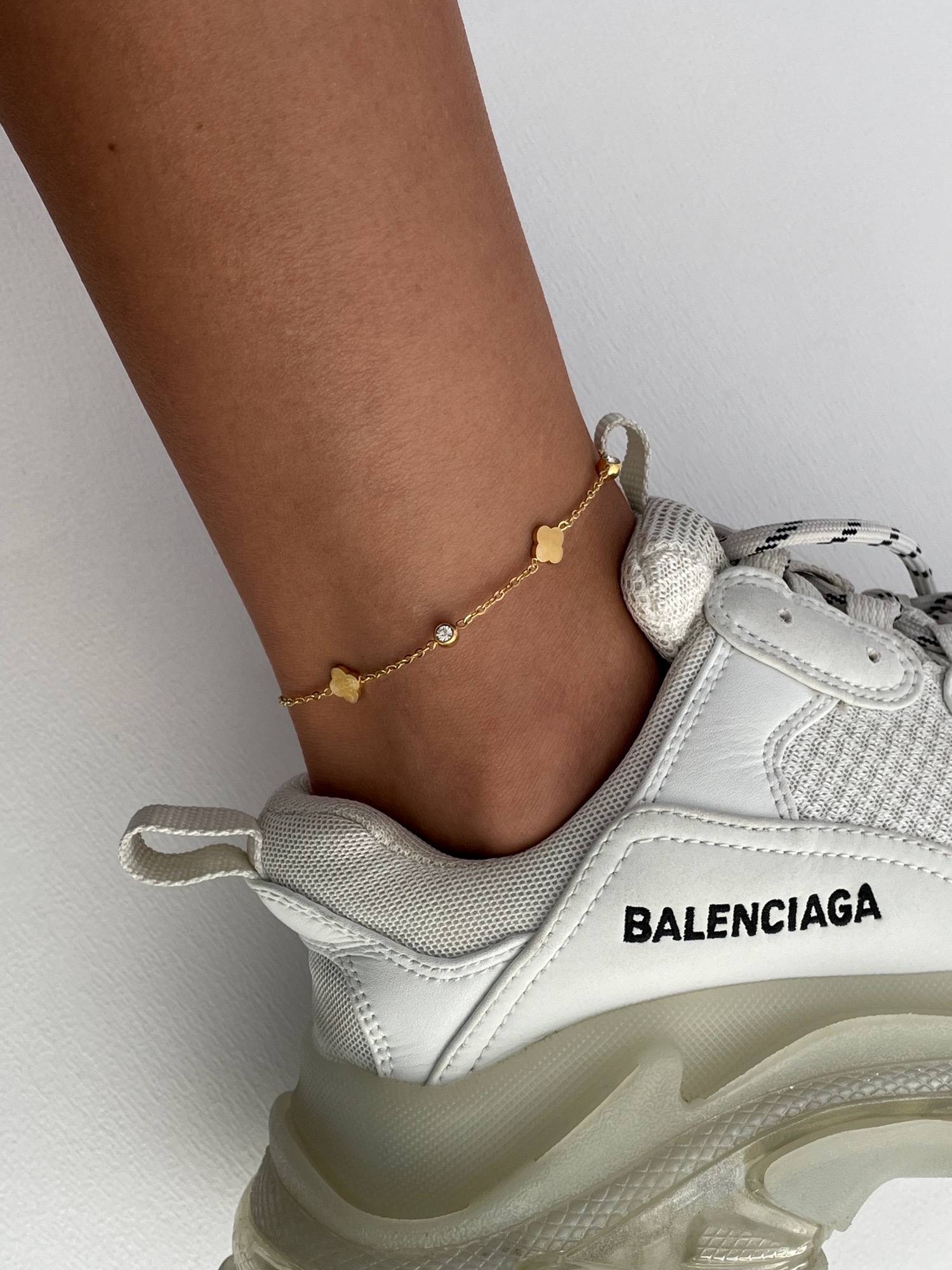 Çelik Zirkon Taşlı Yonca Tasarım Gold Halhal