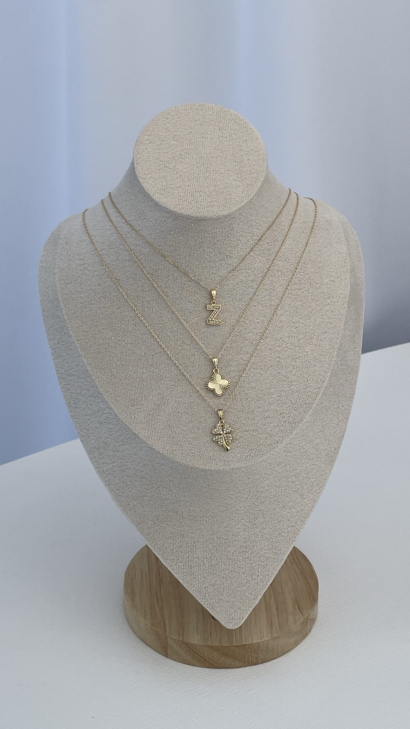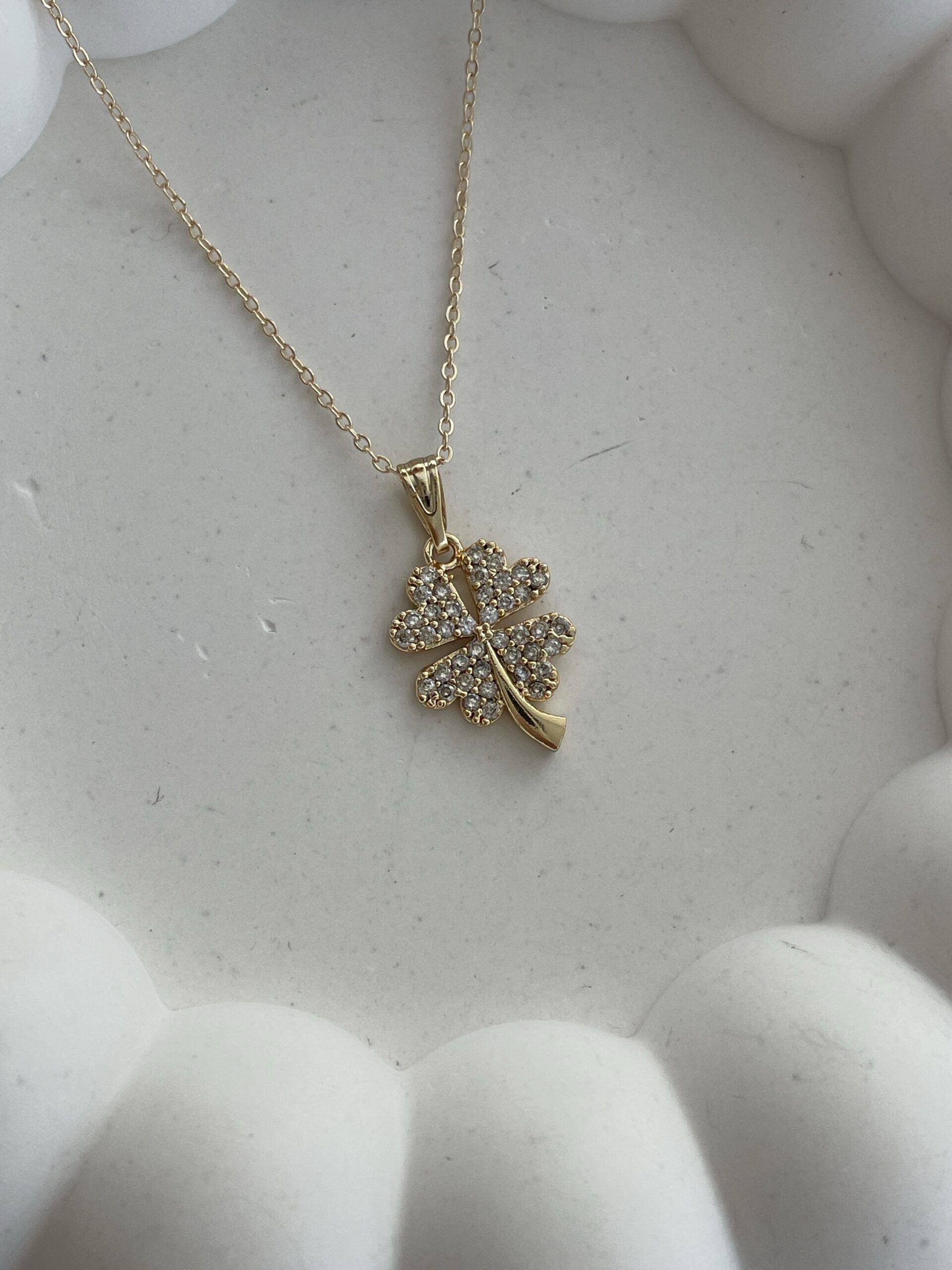 Özel Seri Zirkon Taşlı Yonca Tasarım Gold Kolye