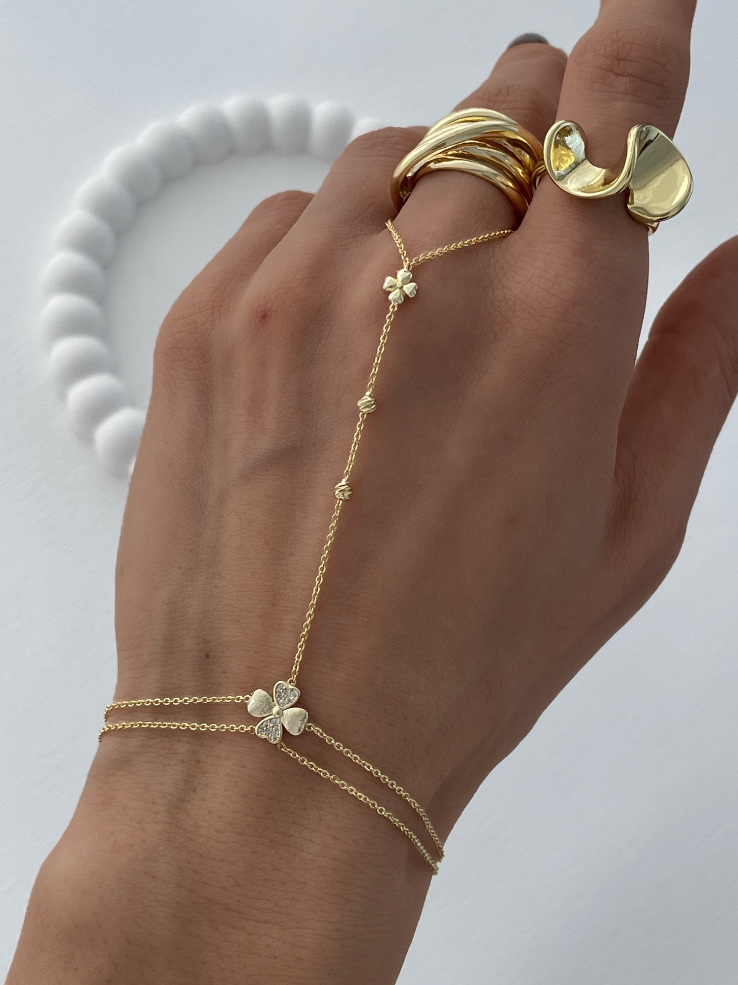 Özel Seri Zirkon Taşlı Yonca Tasarım Gold Şahmeran