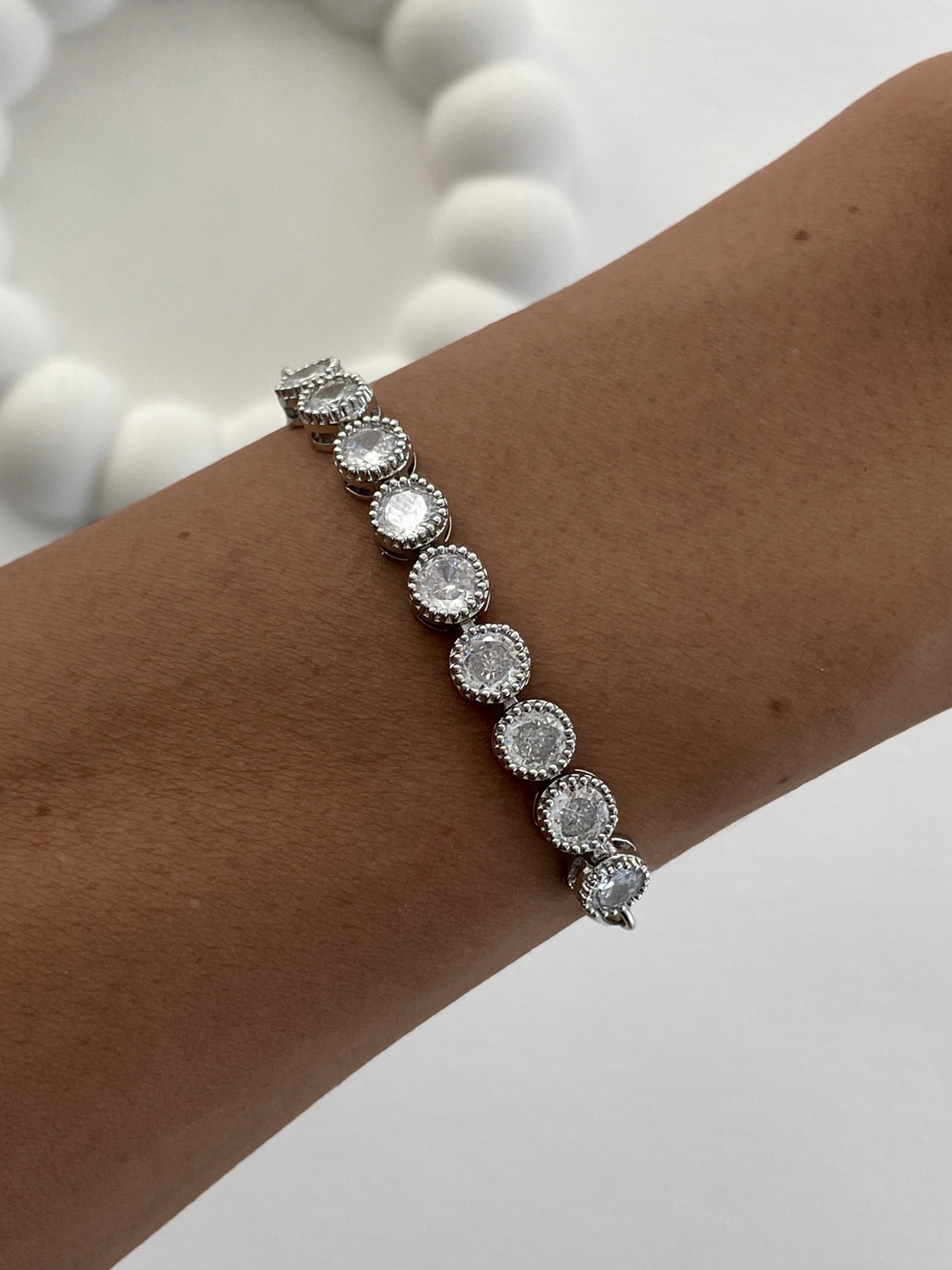 Özel Seri Zirkon Taşlı Yuvarlak Gümüş Shiny Bileklik