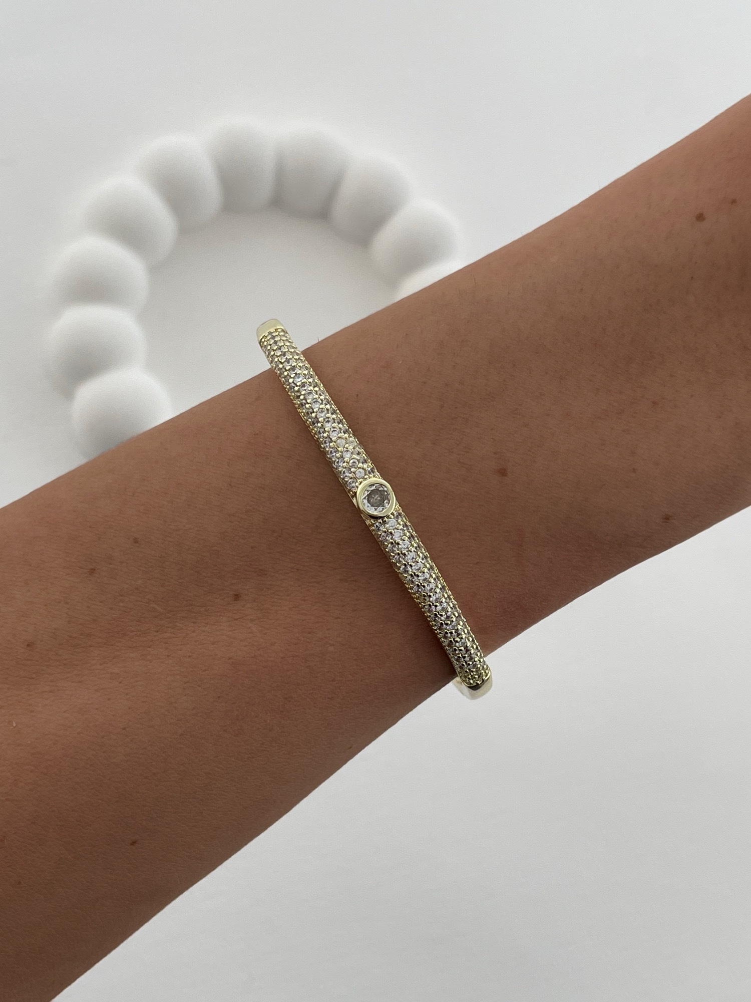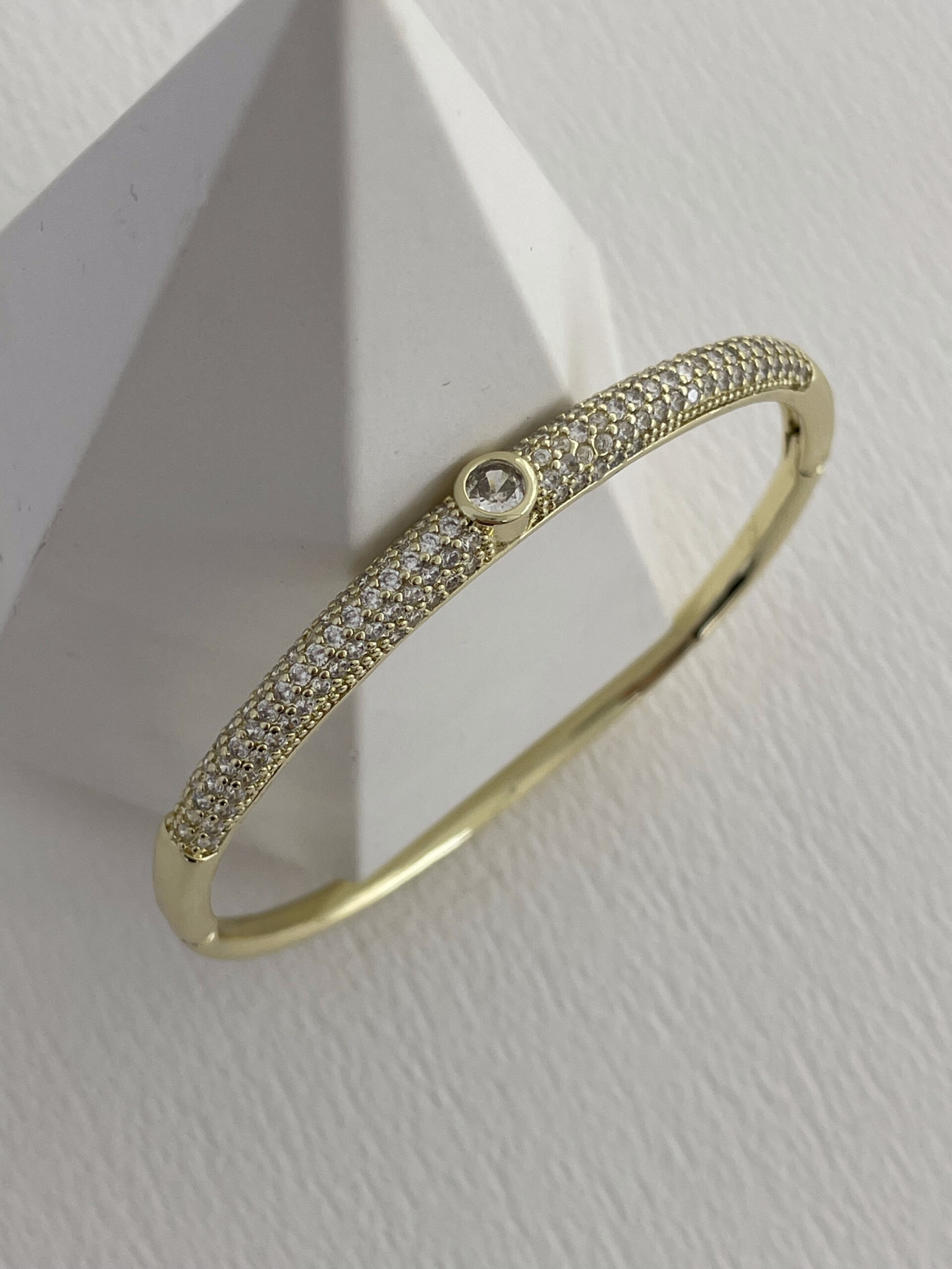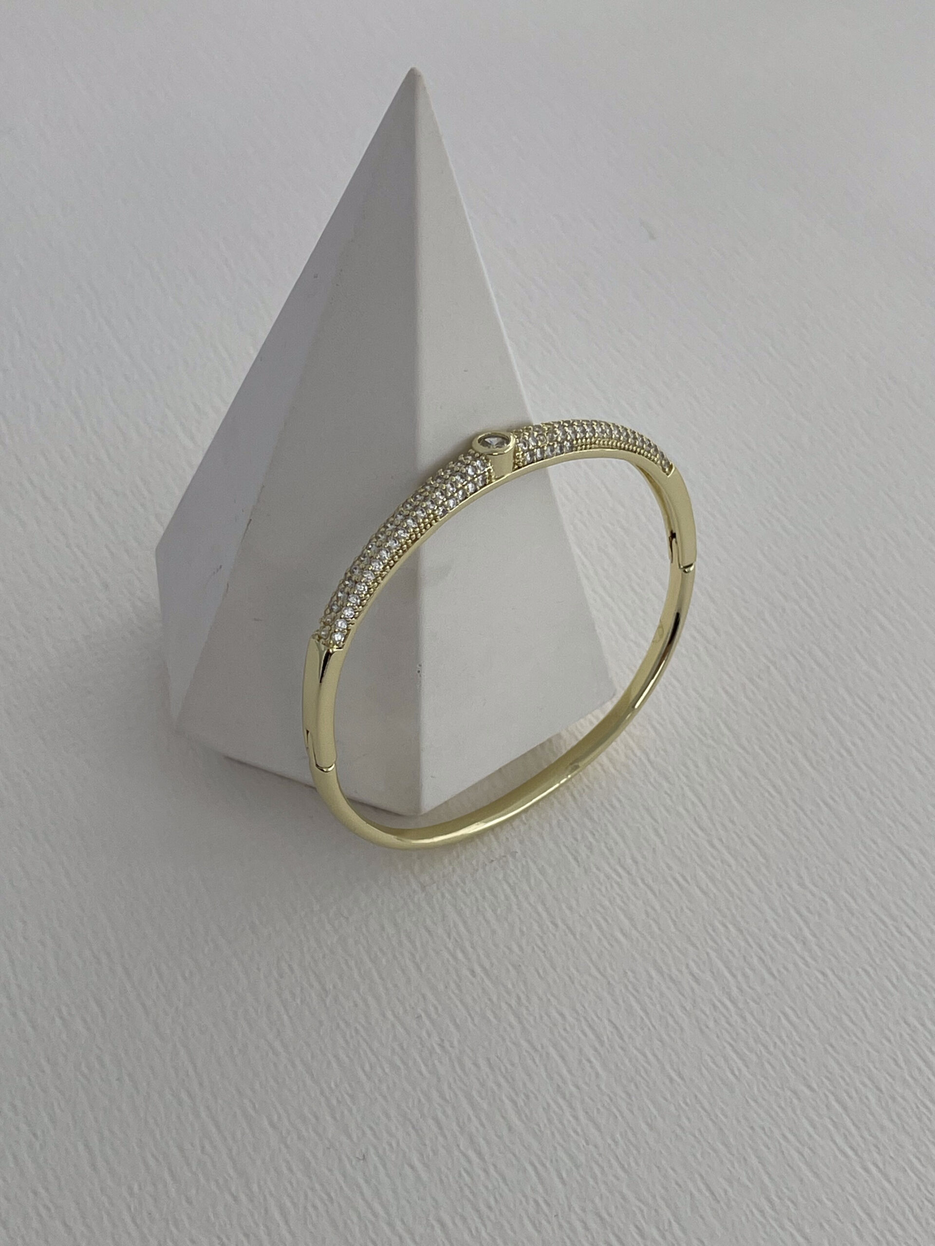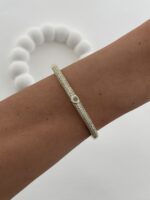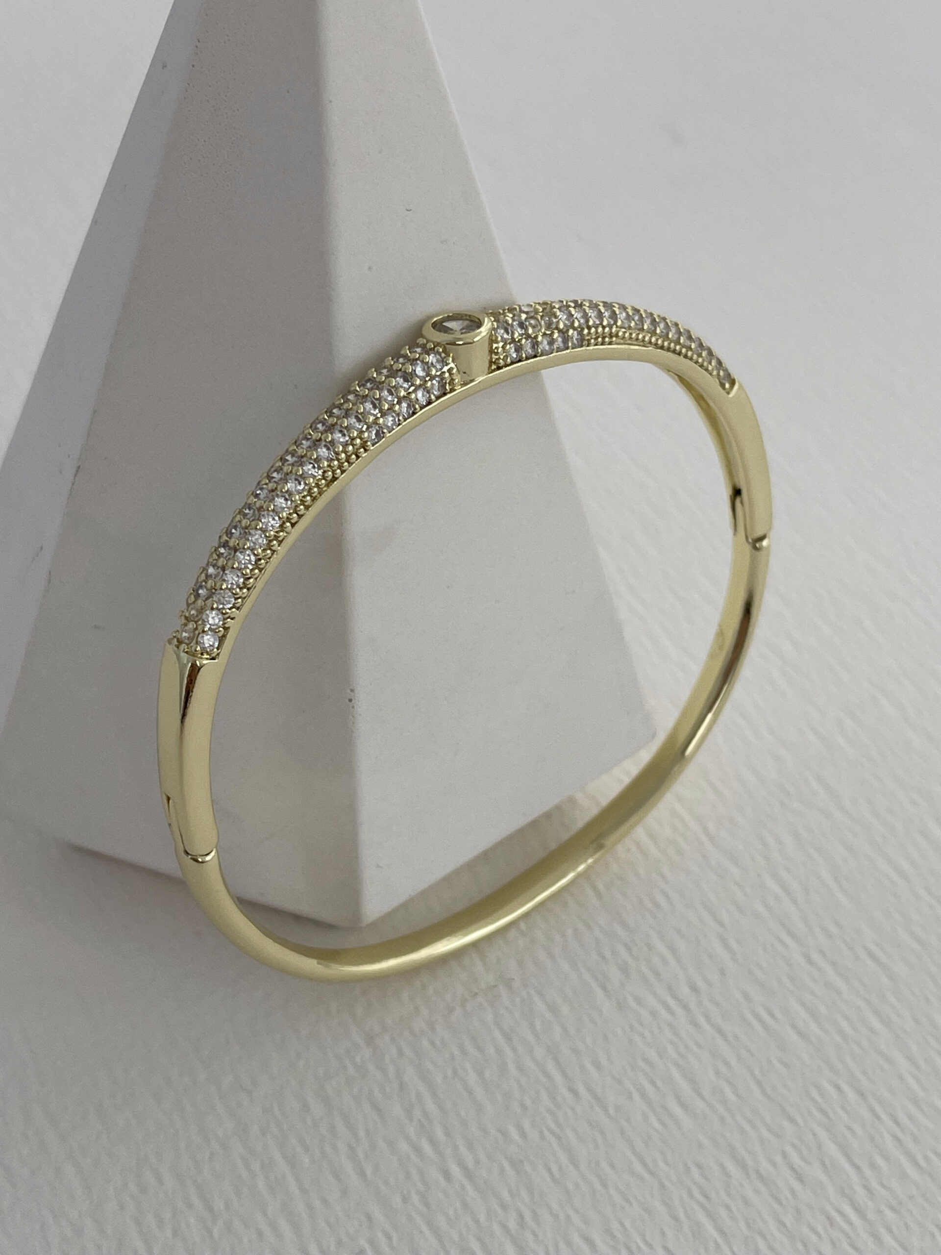 Özel Seri Zirkon Taşlı Yuvarlak Taş Detay Gold Kelepçe Bileklik