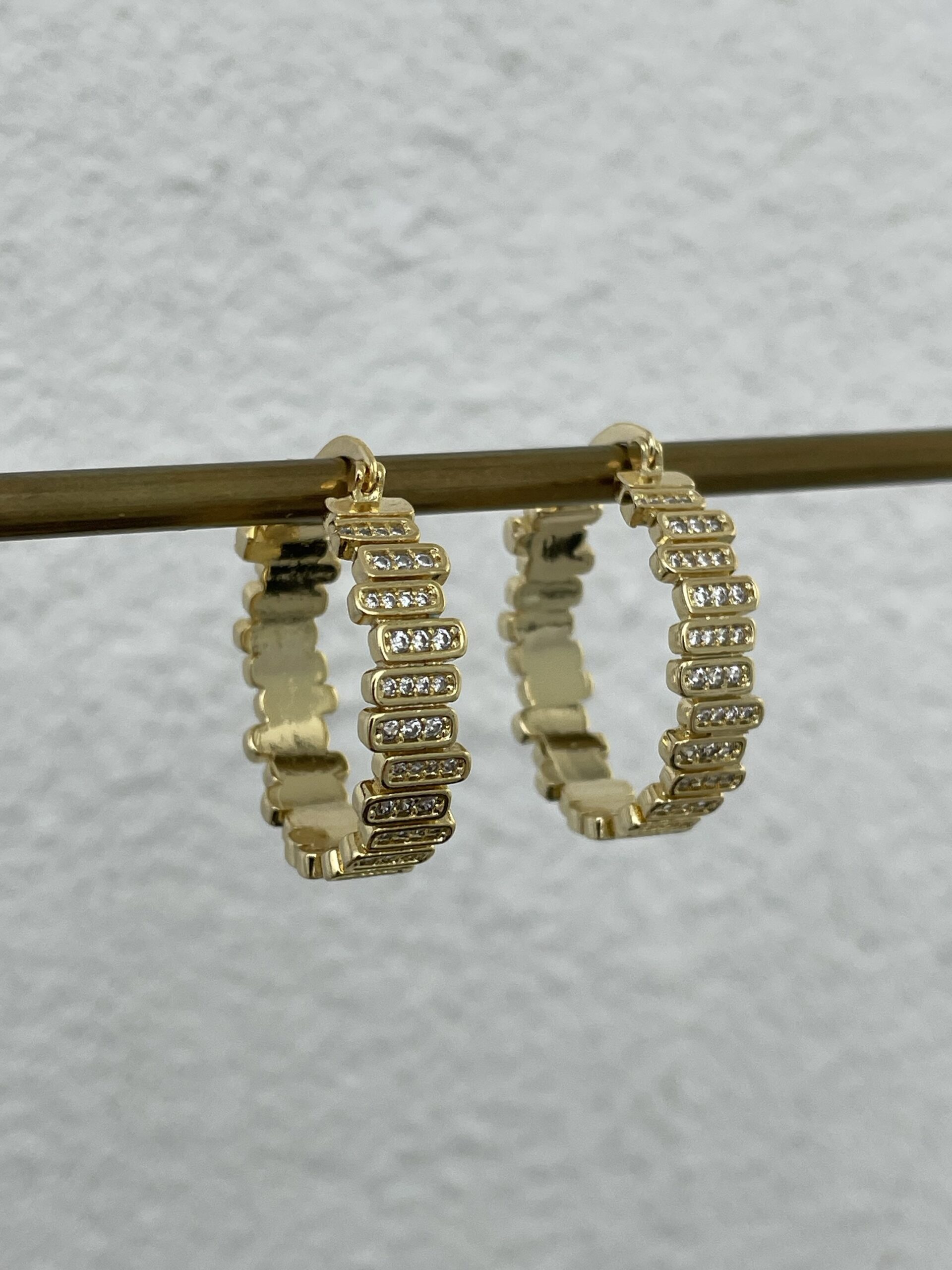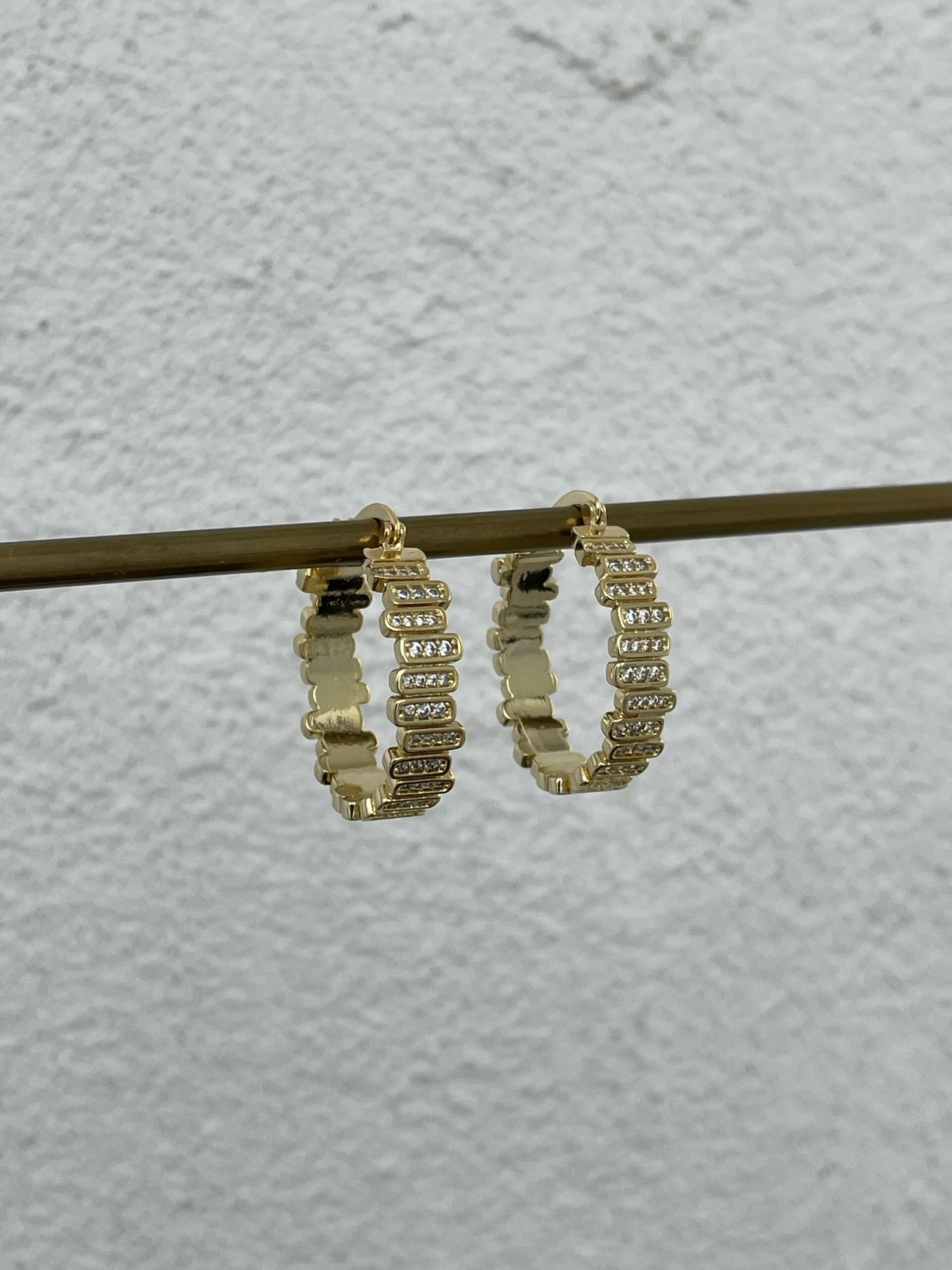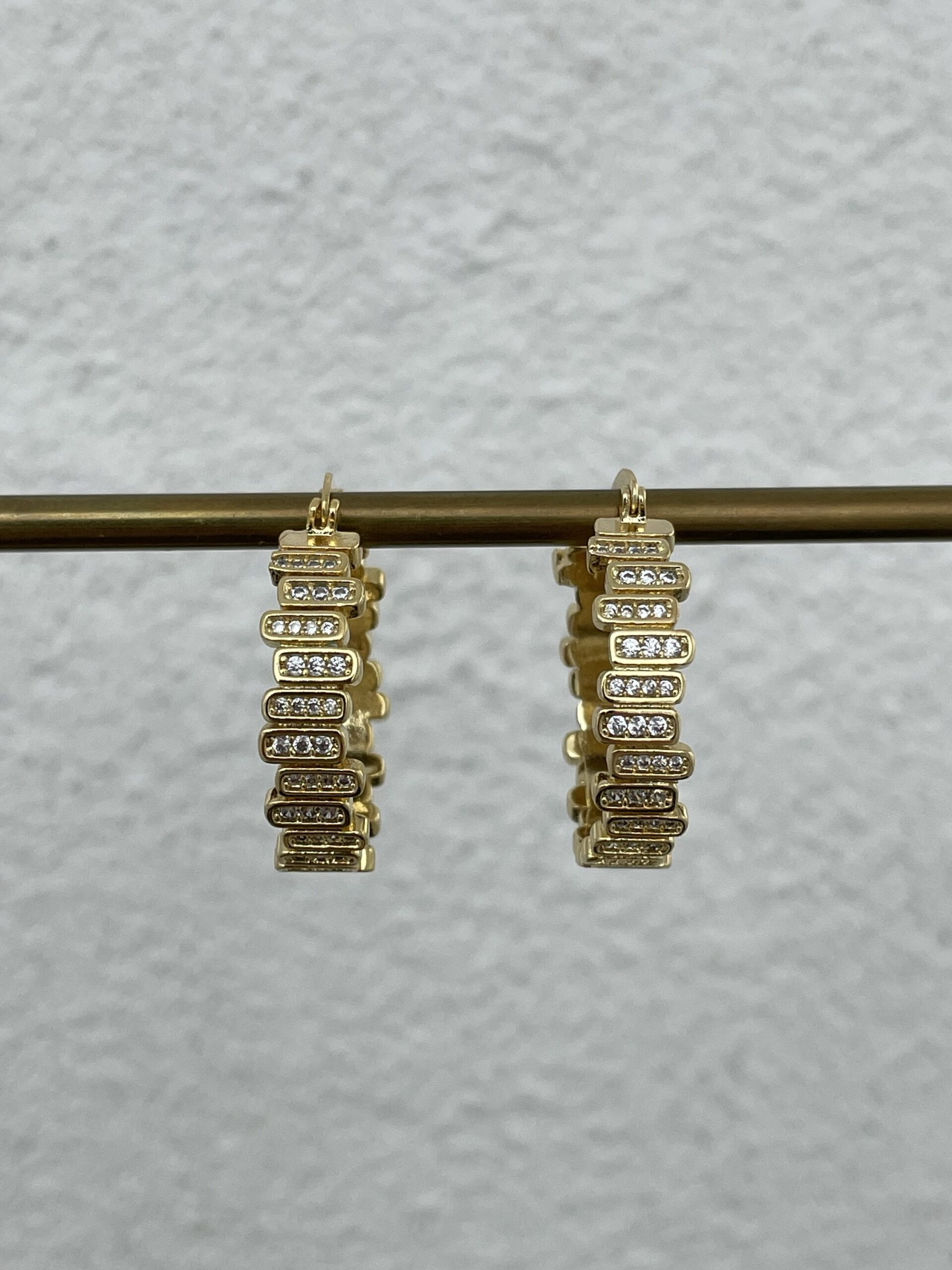 Özel Seri Zirkon Taşlı Zikzak Tasarım Gold Halka Küpe
