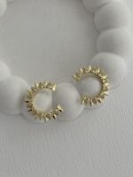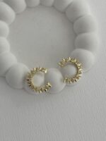 Özel Seri Zirkon Taşlı Zikzak Tasarım Yuvarlak Gold Küpe