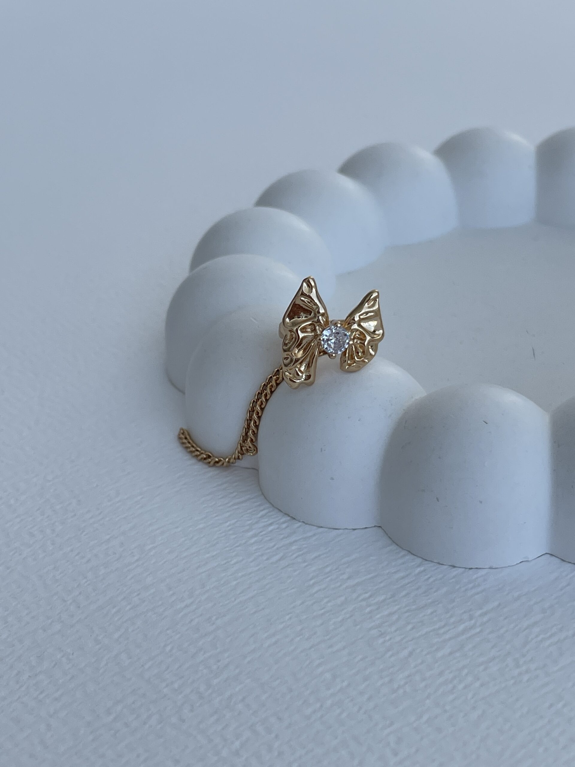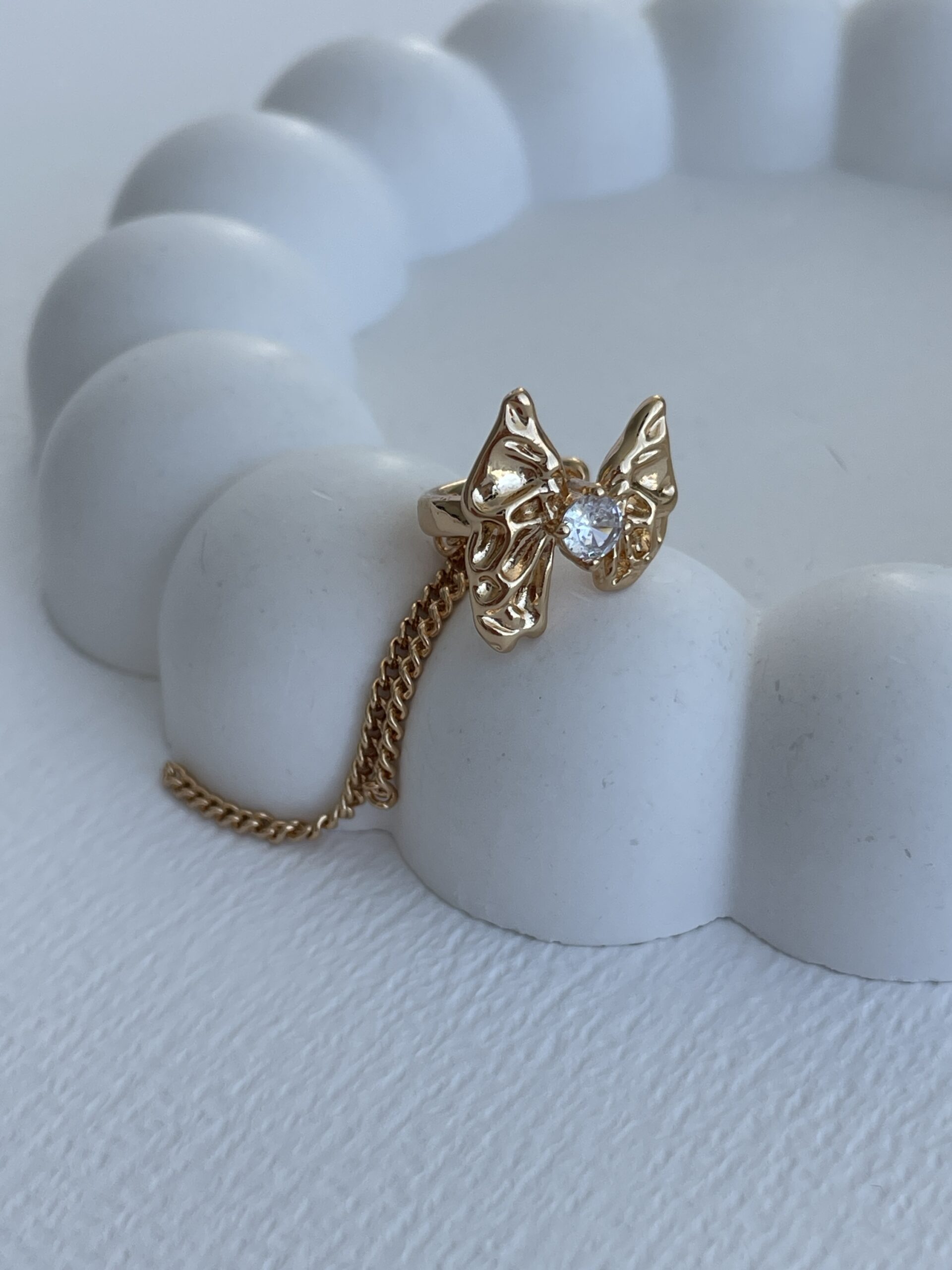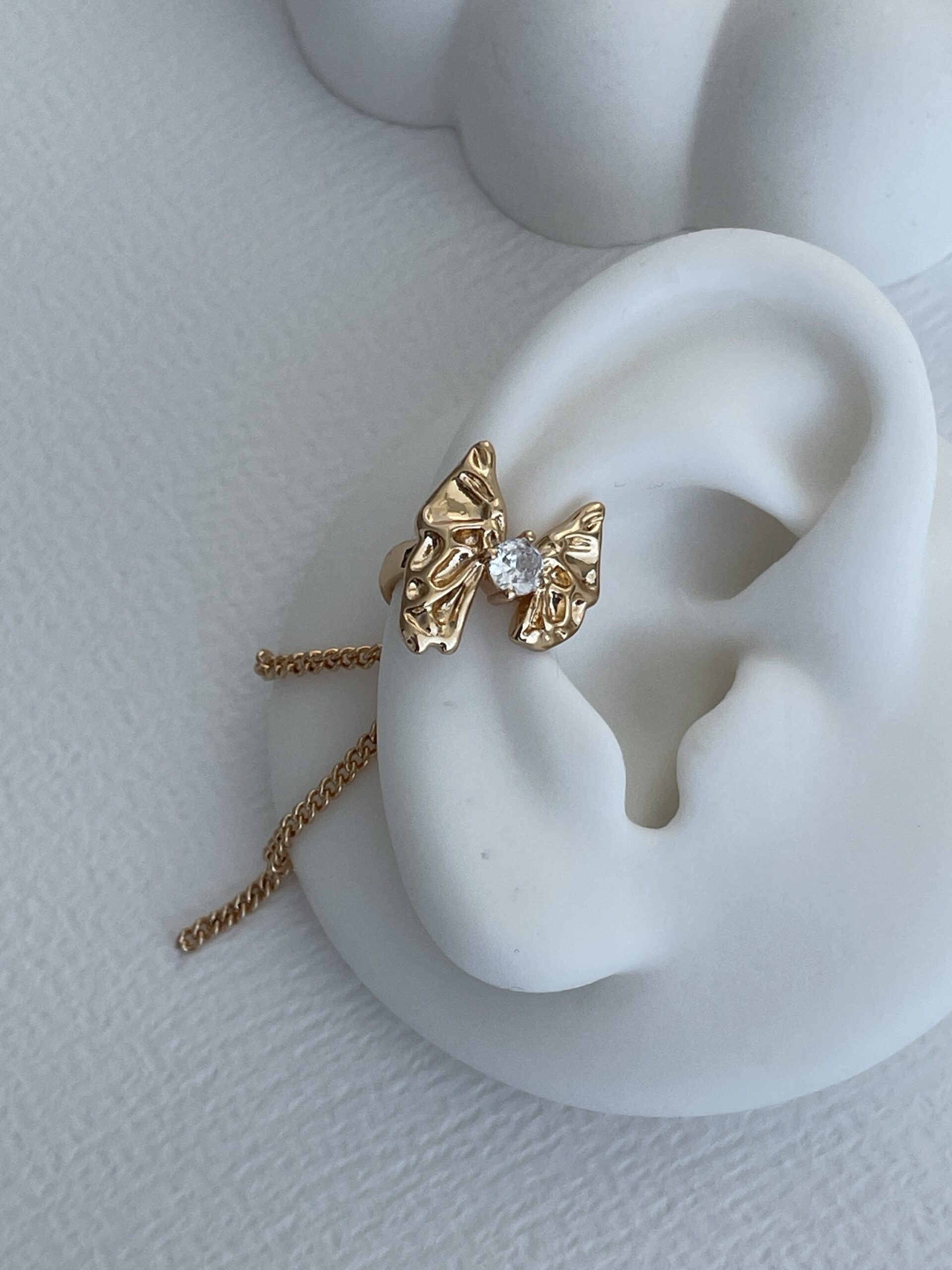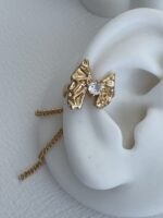 Özel Seri Zirkon Taşlı Zincir Detay Gold Kurdele Earcuff