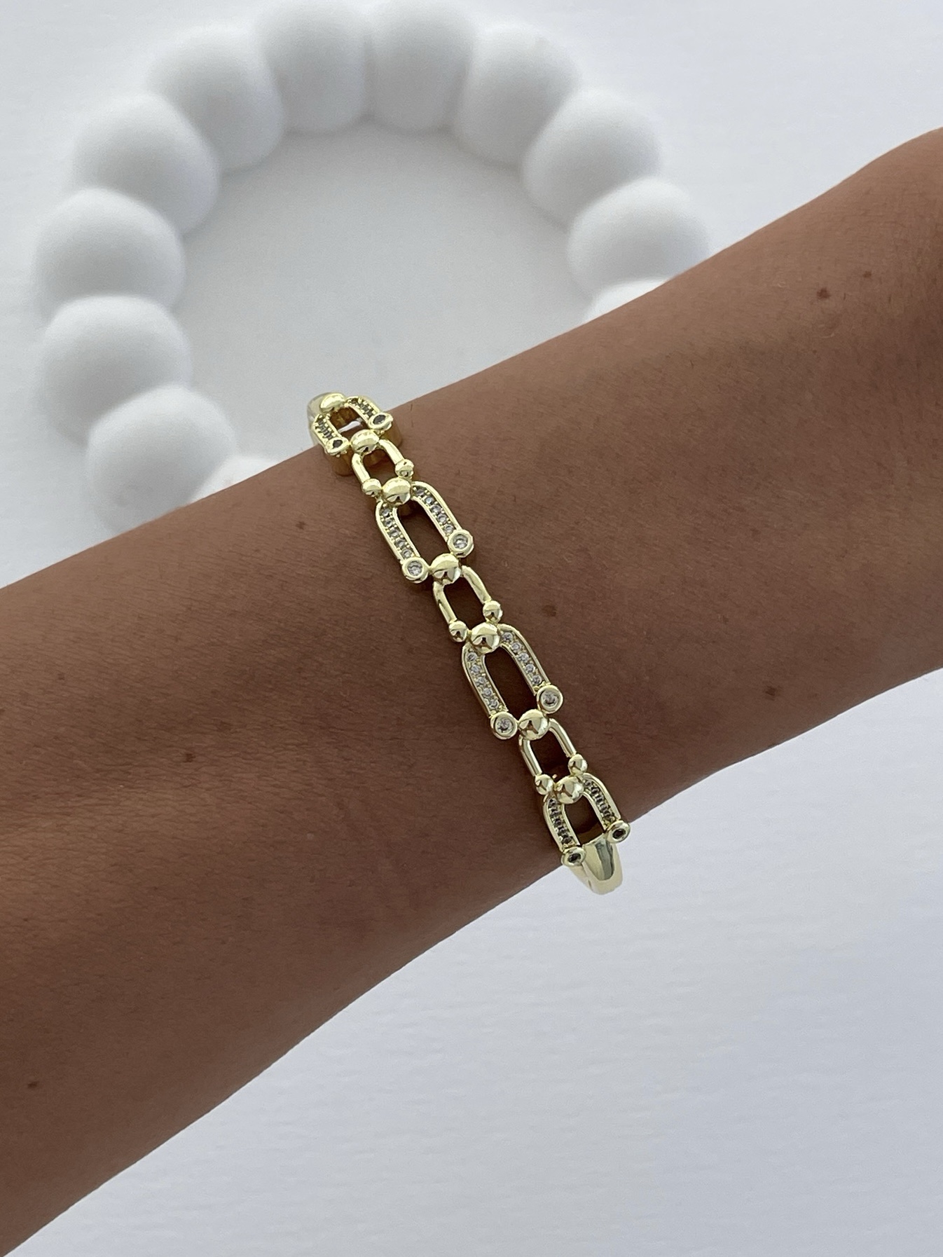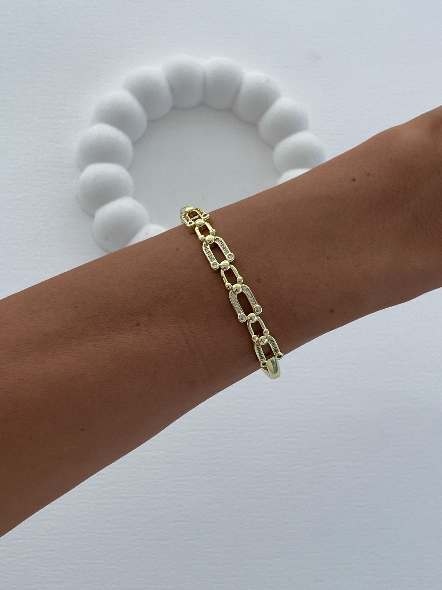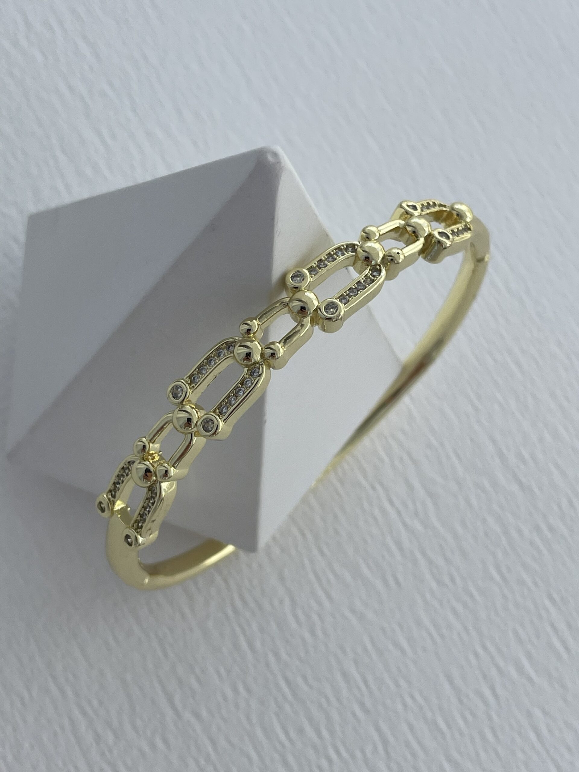 Özel Seri Zirkon Taşlı Zincir Marka Model Gold Kelepçe Bileklik
