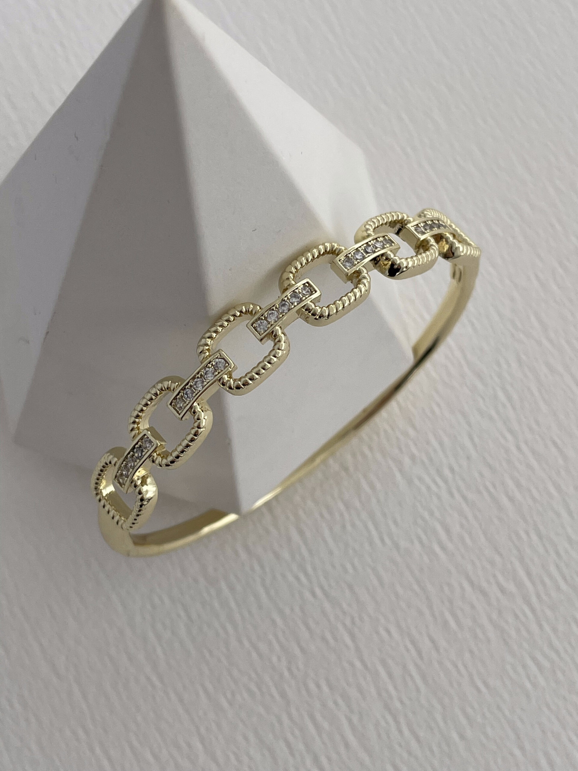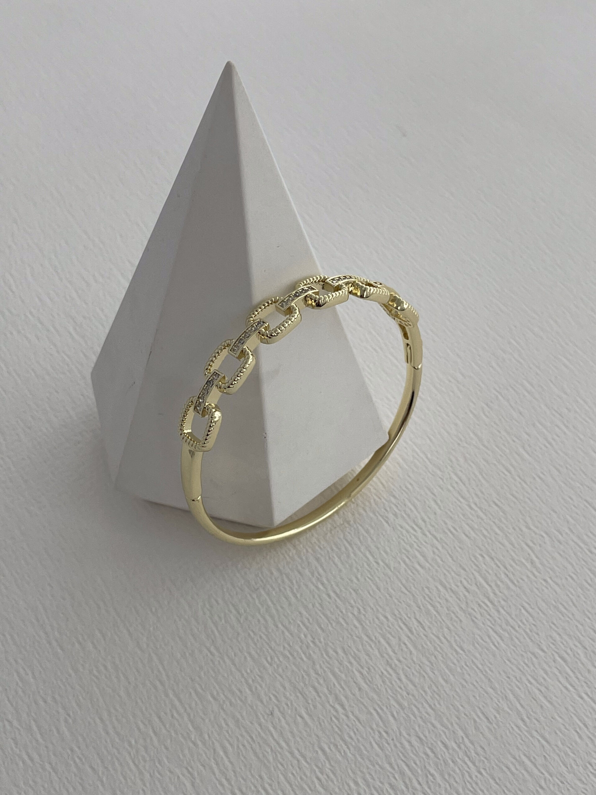 Özel Seri Zirkon Taşlı Zincir Model Gold Kelepçe Bileklik
