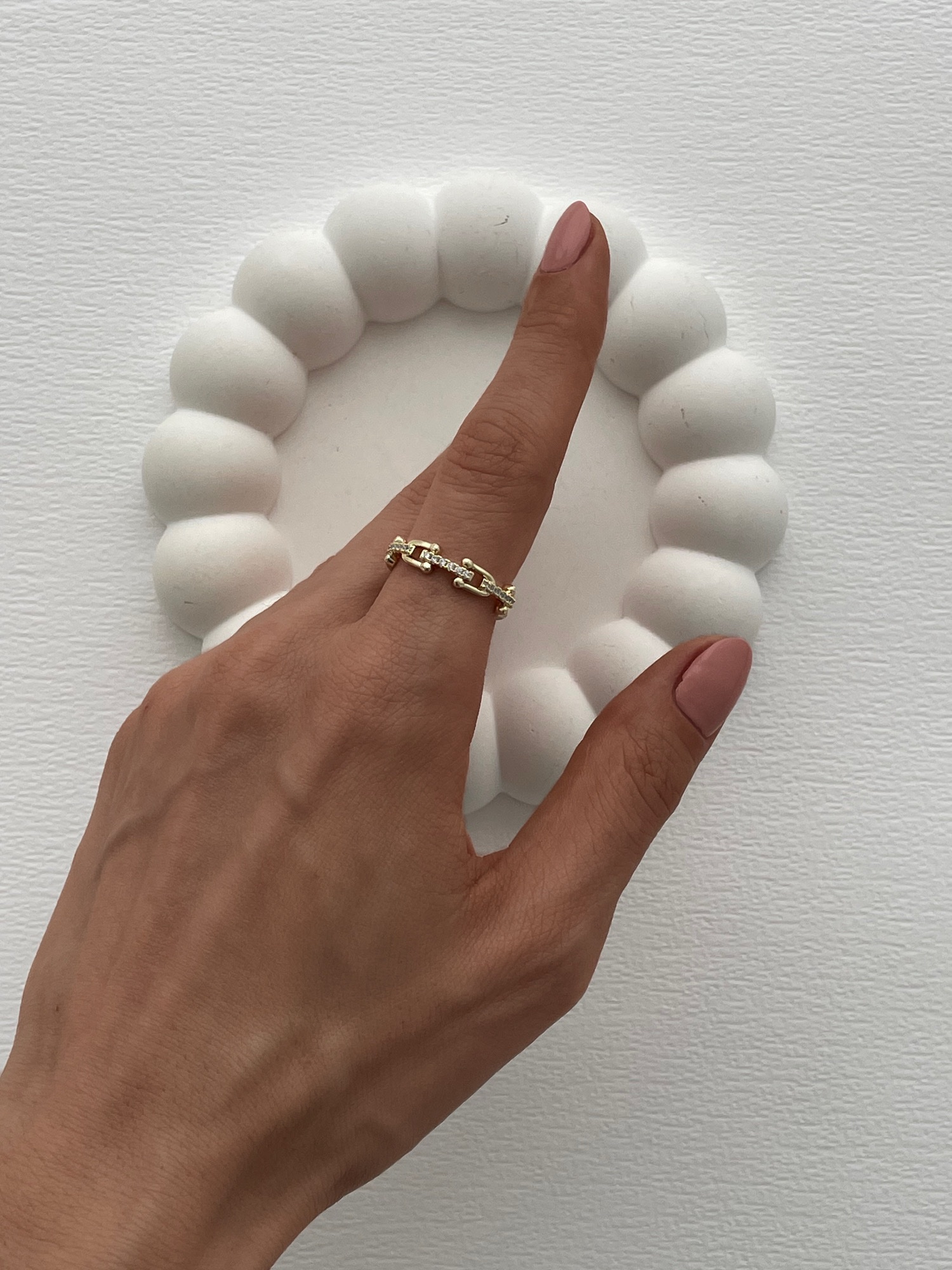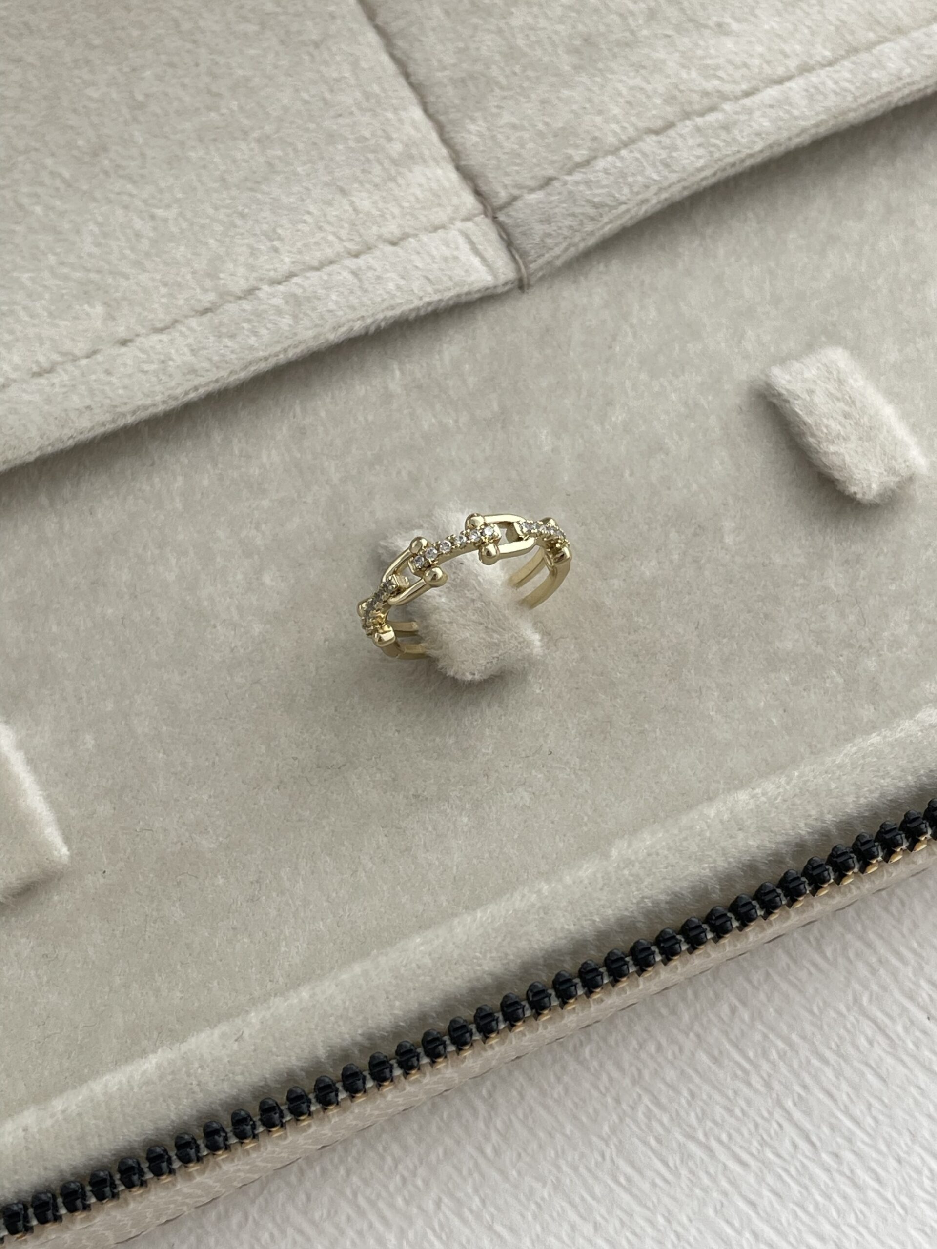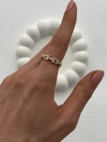 Özel Seri Zirkon Taşlı Zincir Tasarım Ayarlanabilir Gold Yüzük