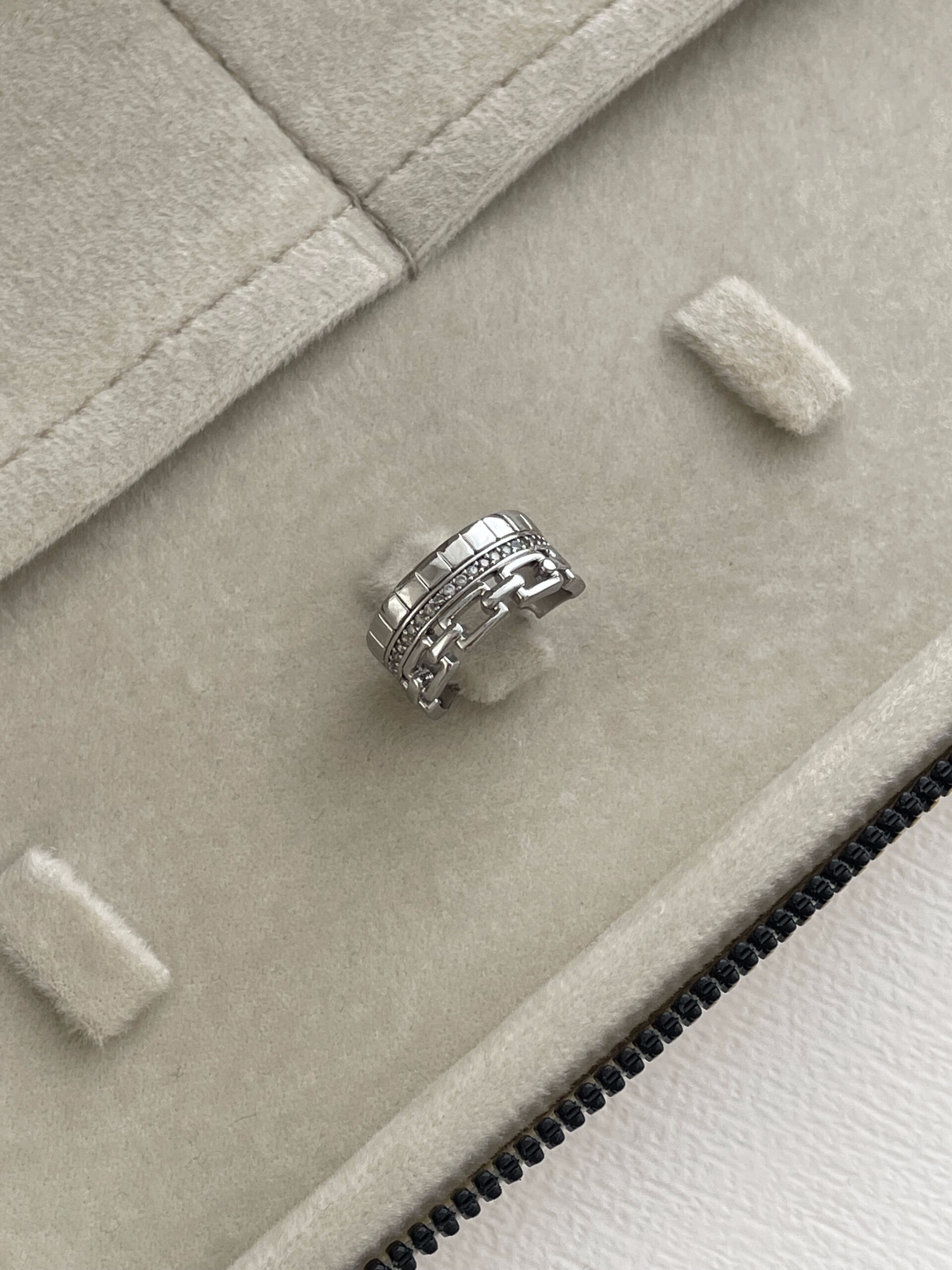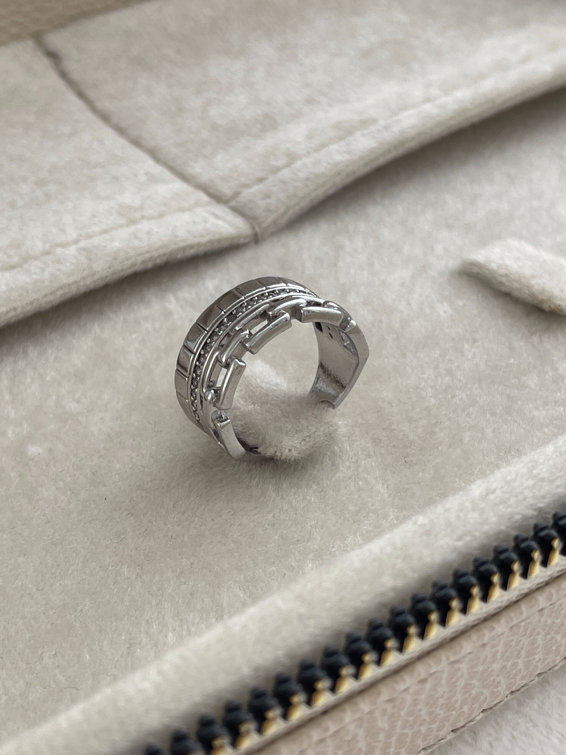 Özel Seri Zirkon Taşlı Zincir Tasarım Ayarlanabilir Gümüş Yüzük