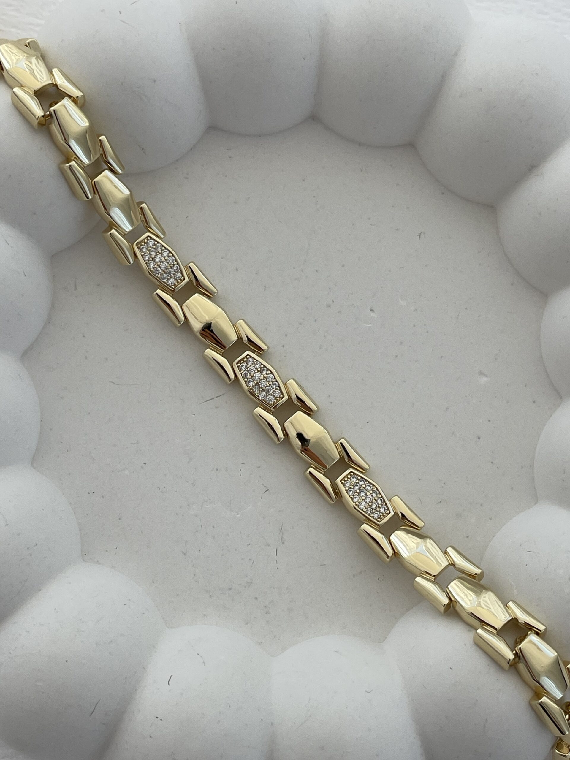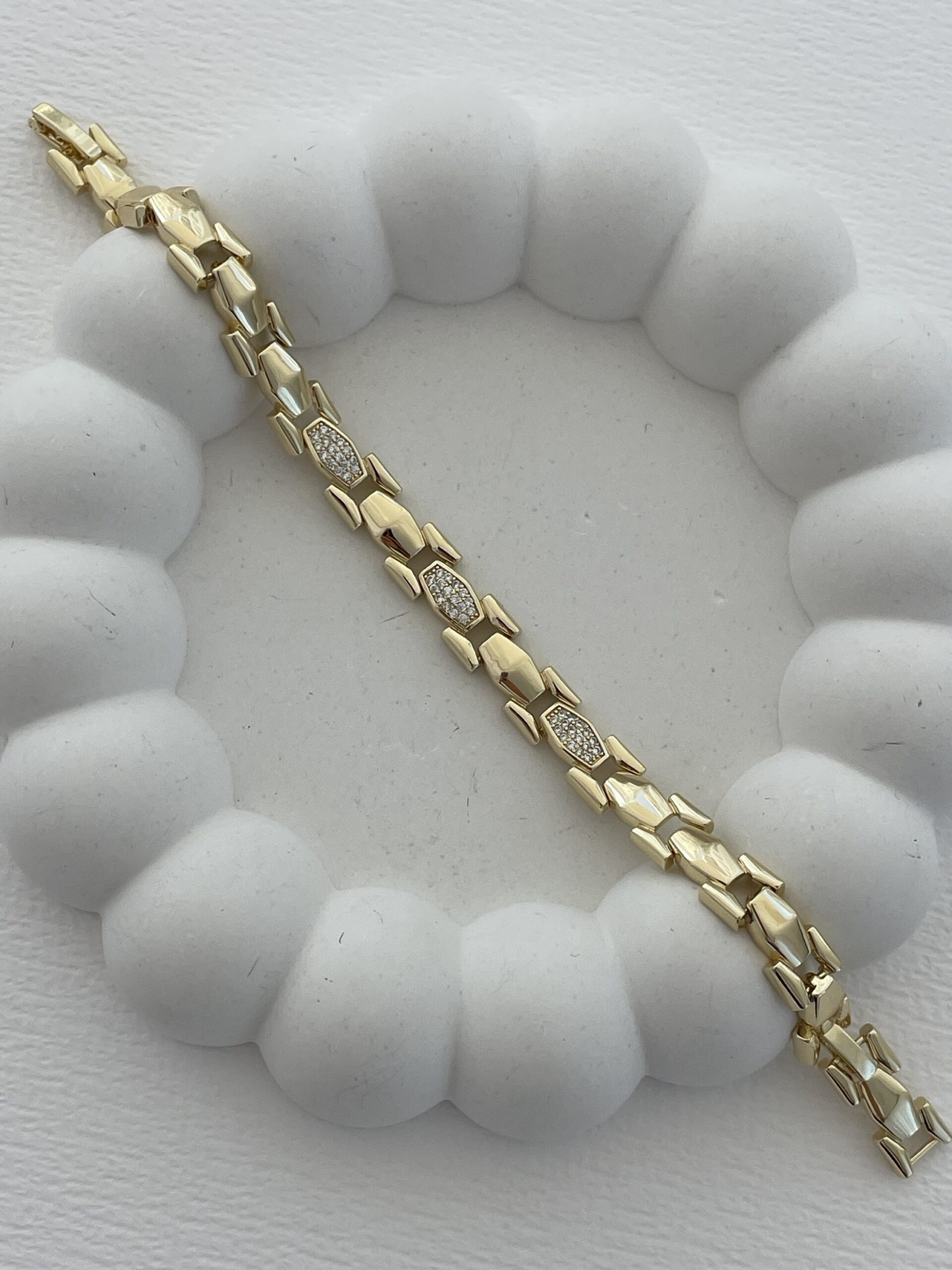Özel Seri Zirkon Taşlı Zincir Tasarım Gold Bileklik