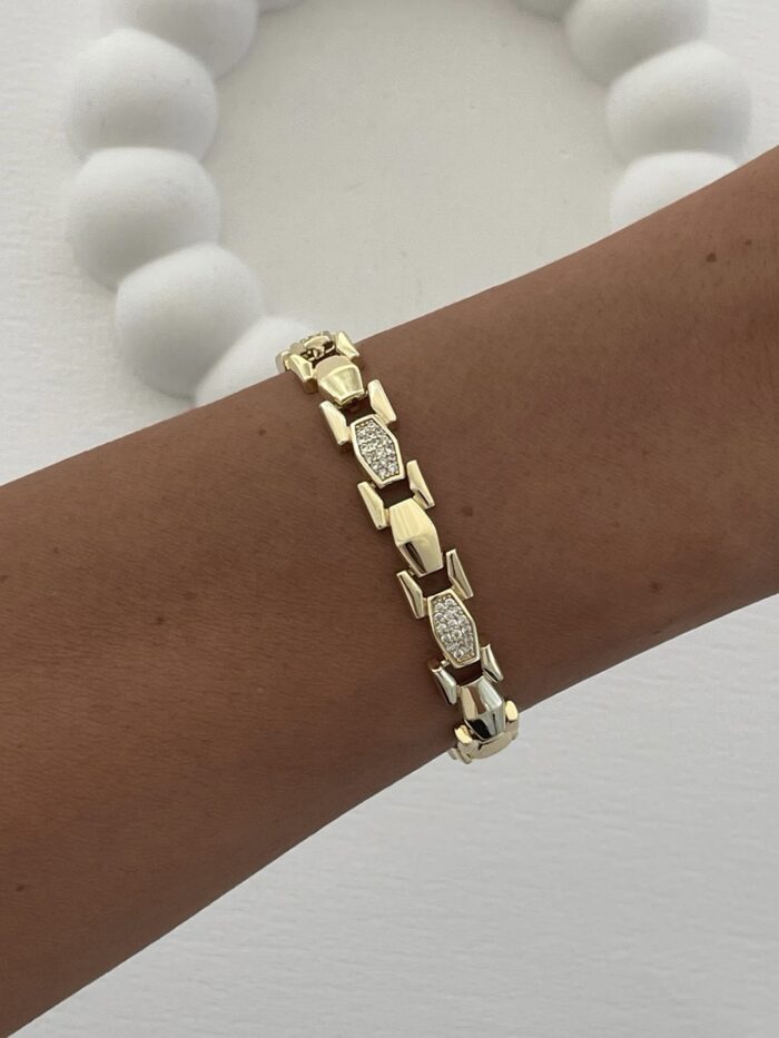 Özel Seri Zirkon Taşlı Zincir Tasarım Gold Bileklik