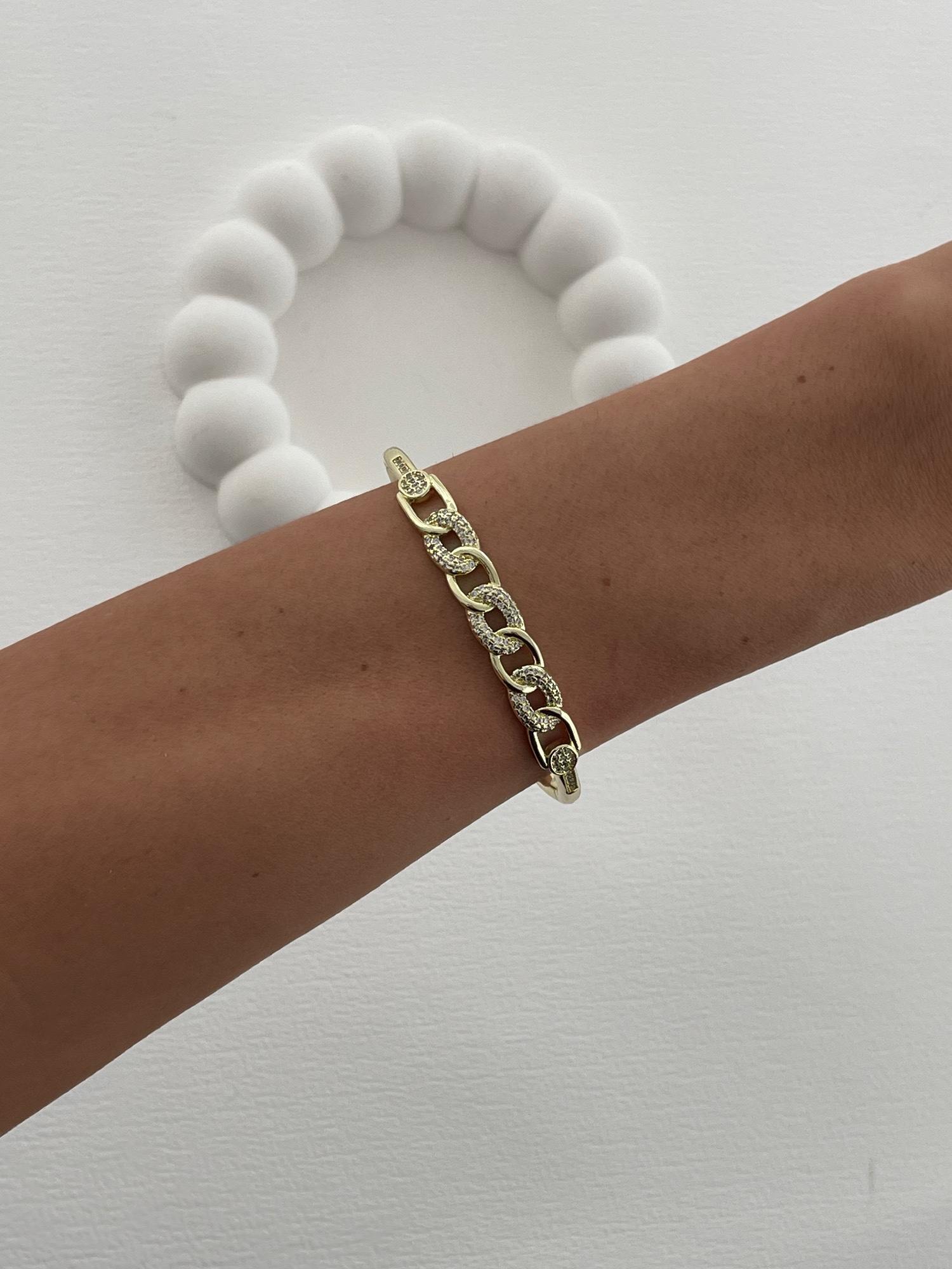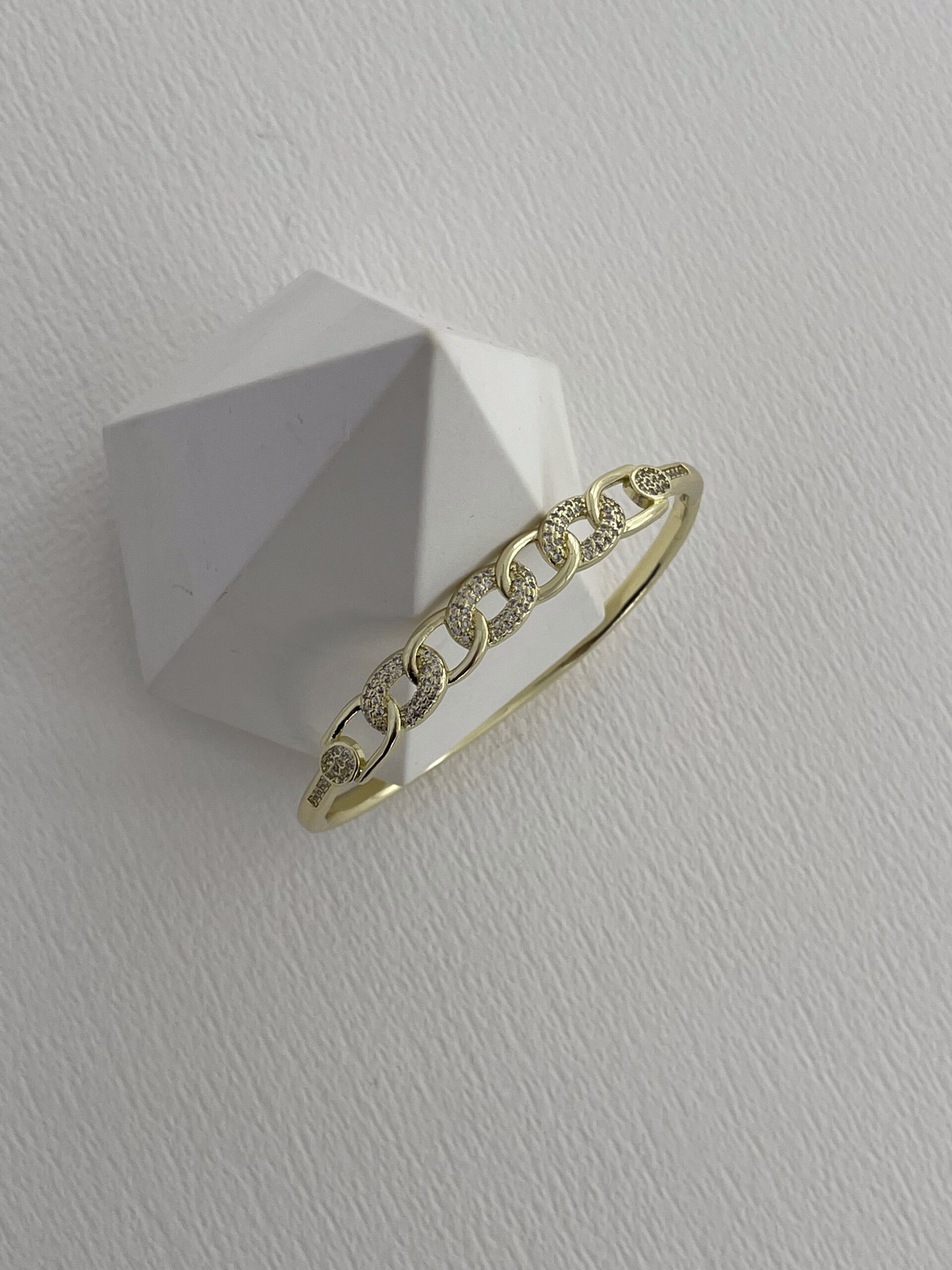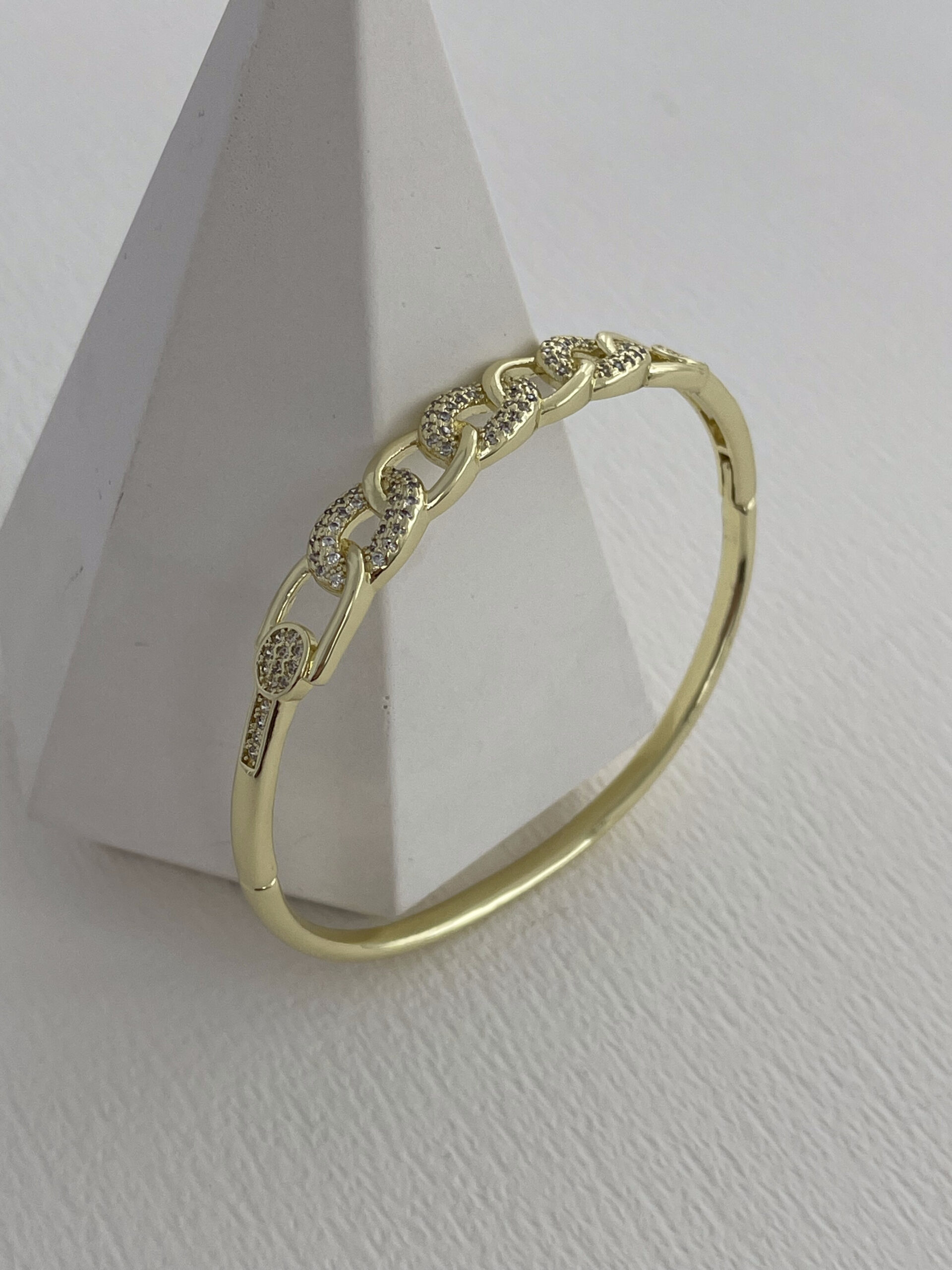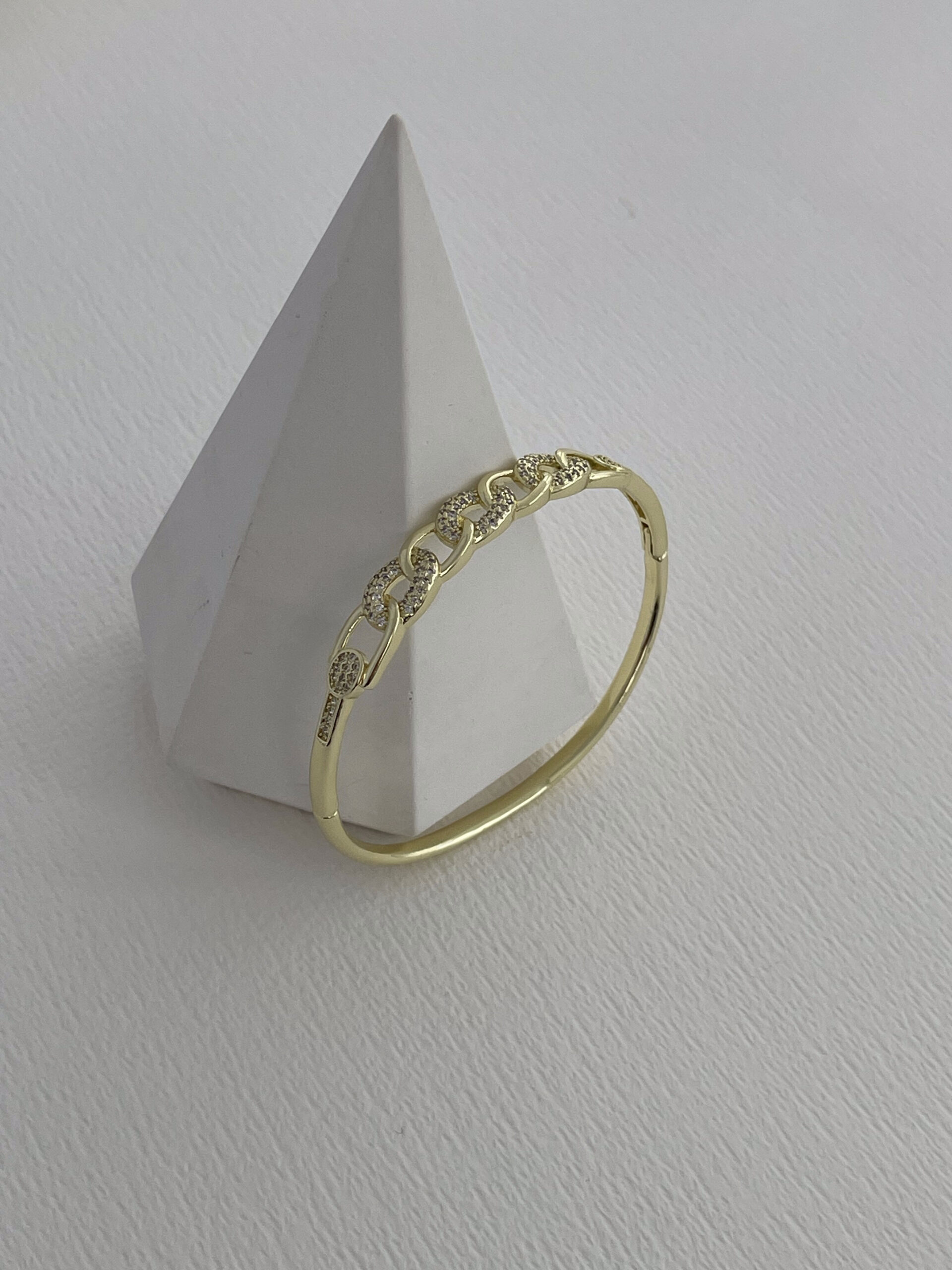 Özel Seri Zirkon Taşlı Zincir Tasarım Gold Kelepçe Bileklik