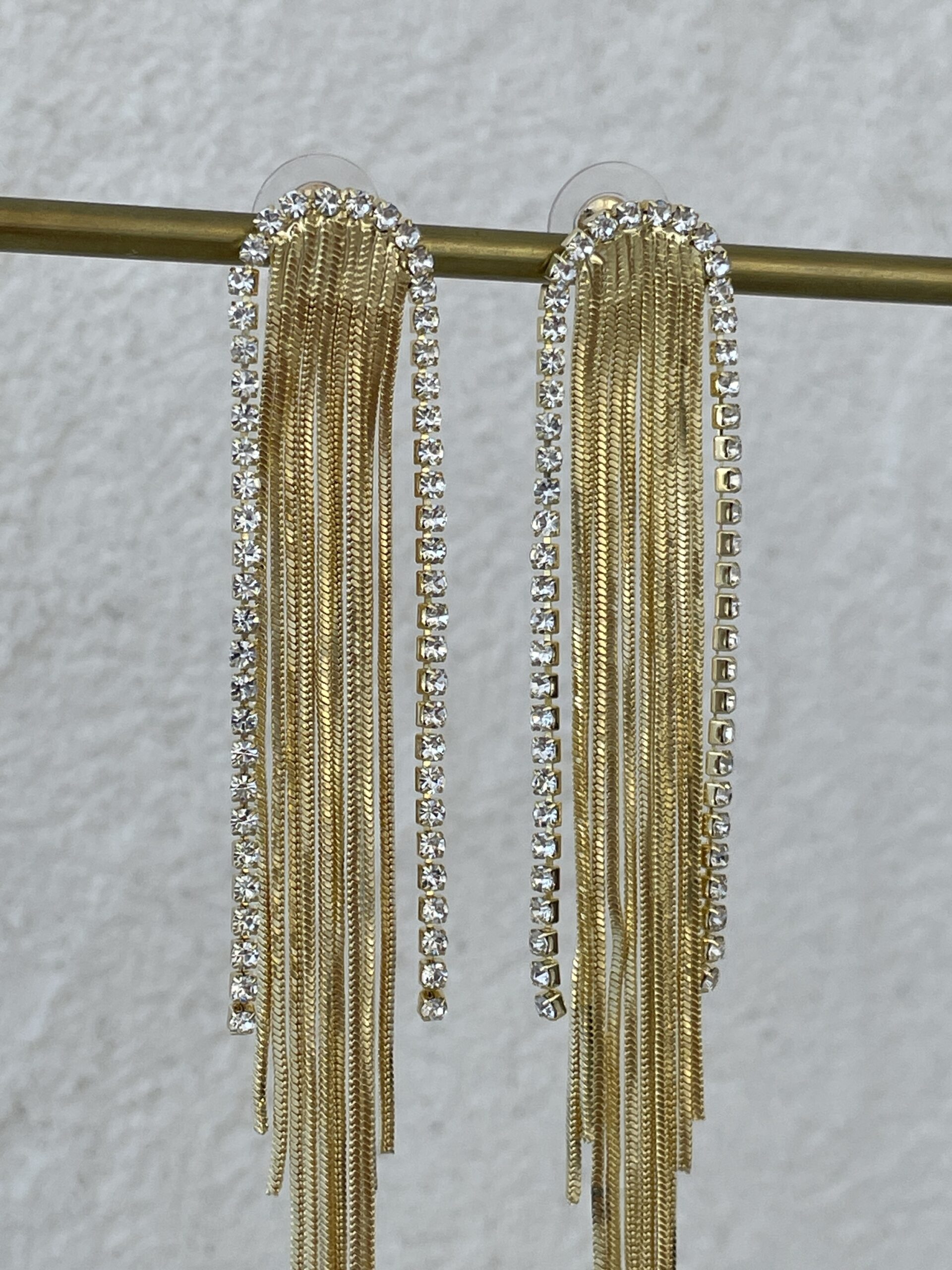 Özel Seri Zirkon Taşlı Gold Sallantılı Küpe