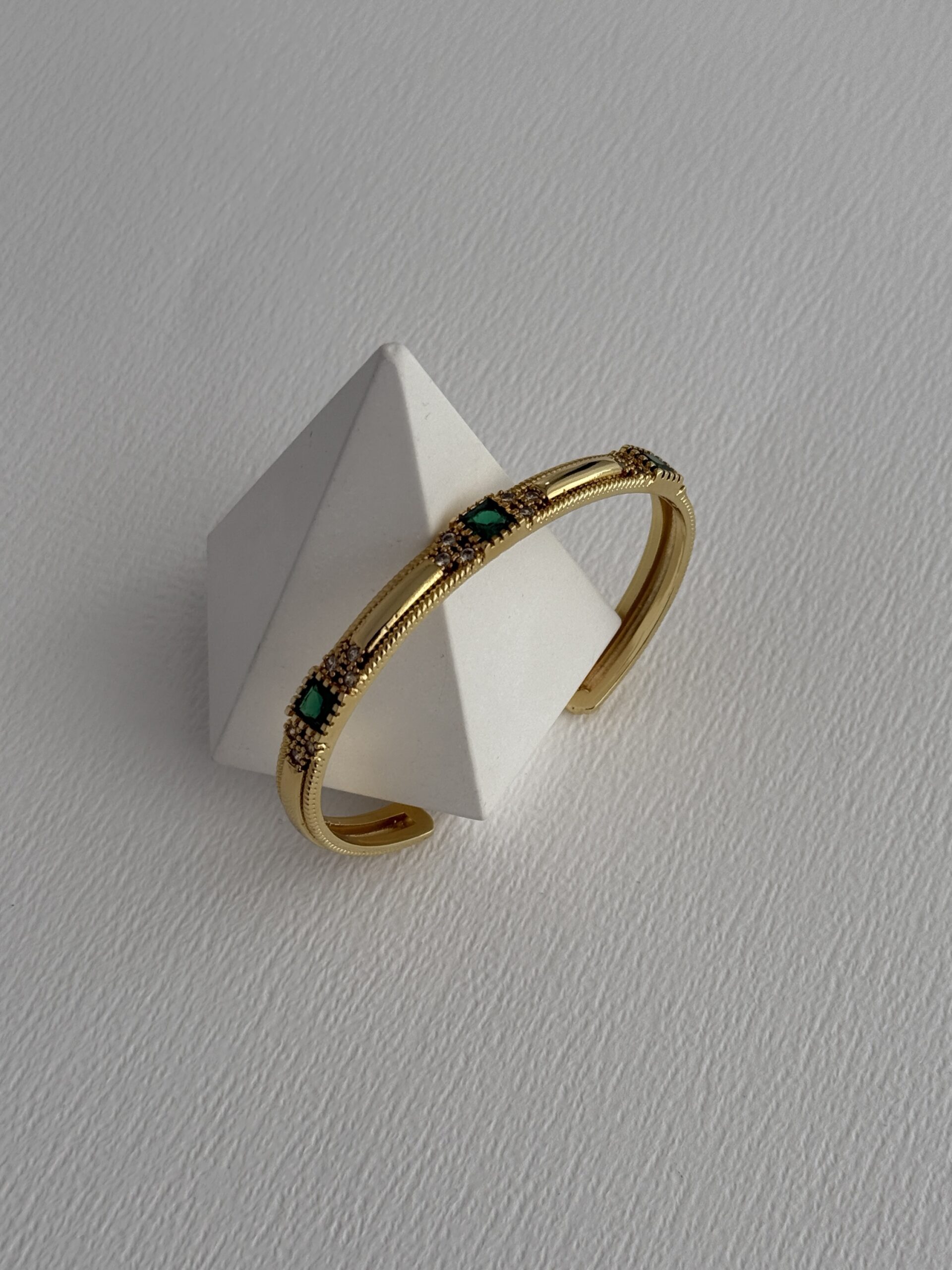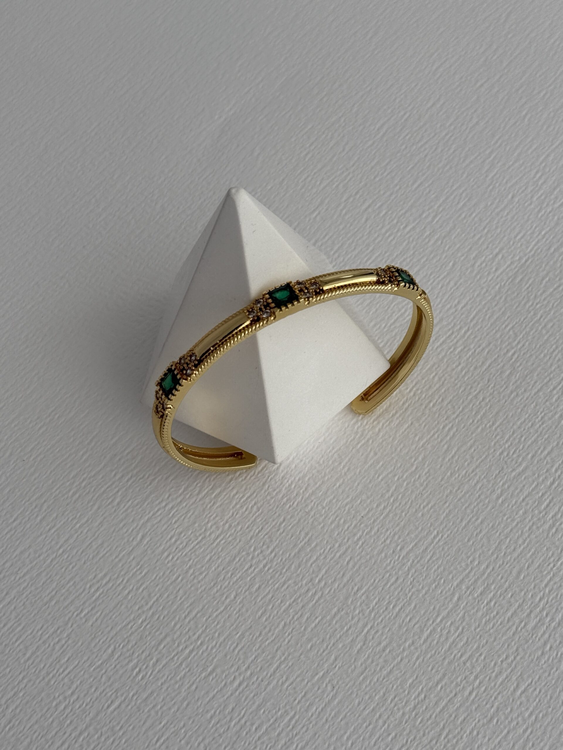 Özel Seri Zirkon & Yeşil Taş Detay Ayarlanabilir Gold Bileklik