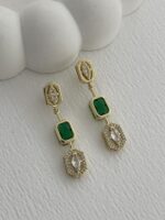 Özel Seri Zirkon & Yeşil Taşlı Geometrik Tasarım Gold Küpe